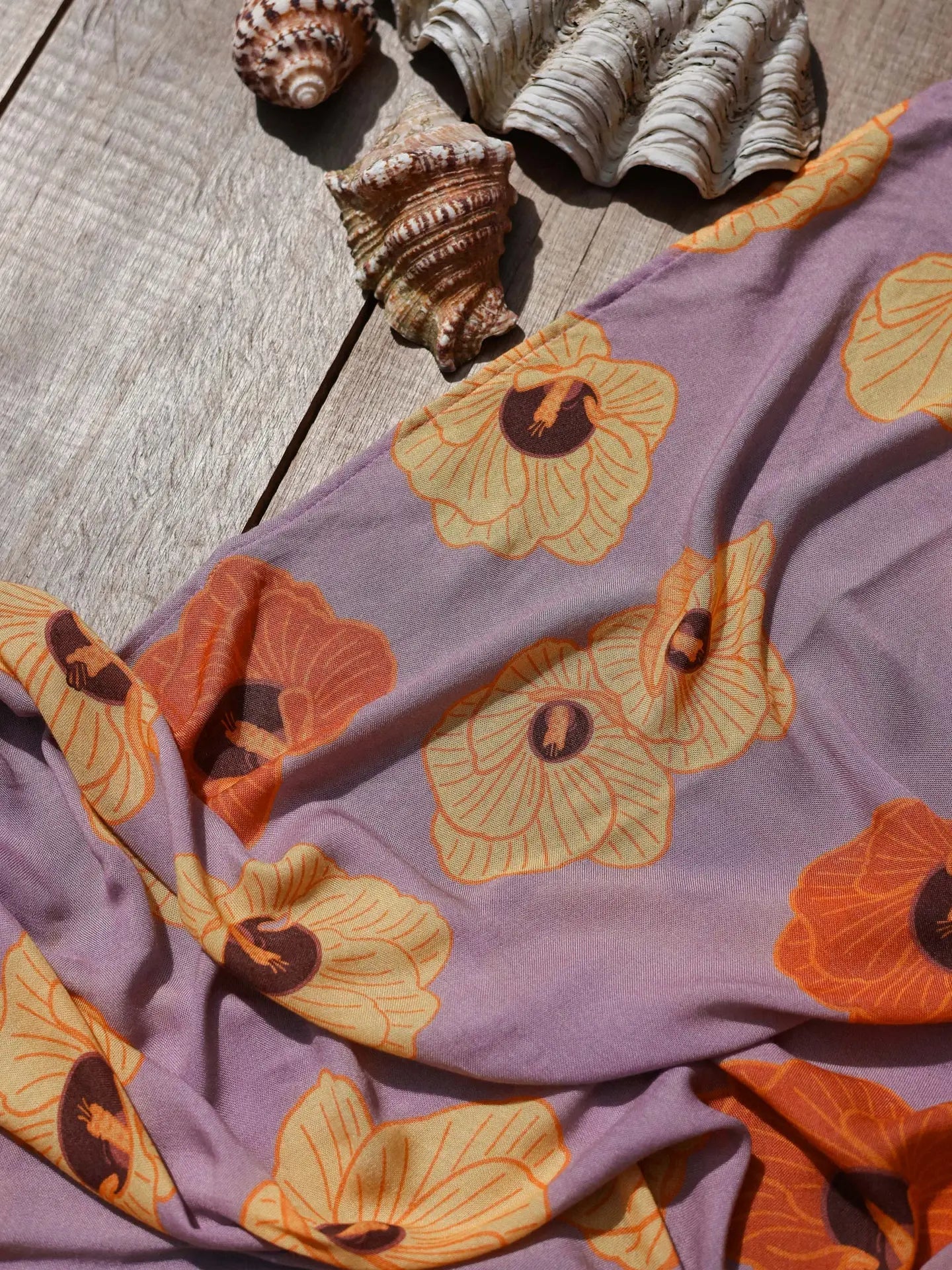 Wrap yourself in the magic of a tropical dawn with this stunning pareo inspired by the hau flower's daily transformation from golden yellow to crimson red. Effortlessly chic whether you're heading from the beach to dinner, this versatile sarong is your go-to piece for sun-soaked adventures and breezy evenings.