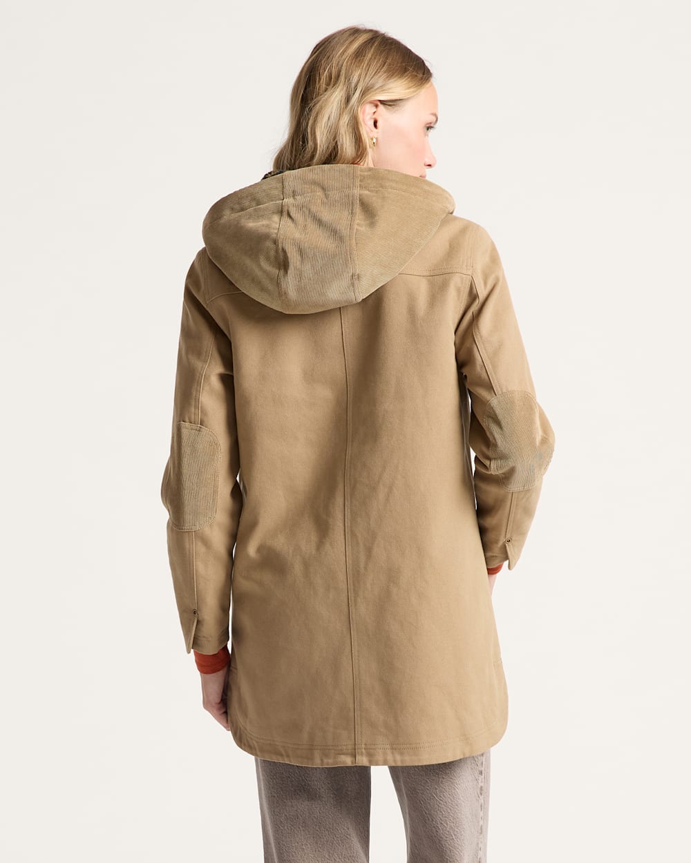 - Corduroy trim on hood and elbow patches for classic detailing
