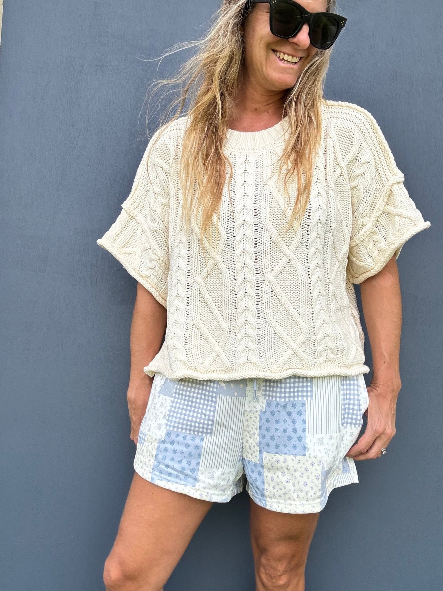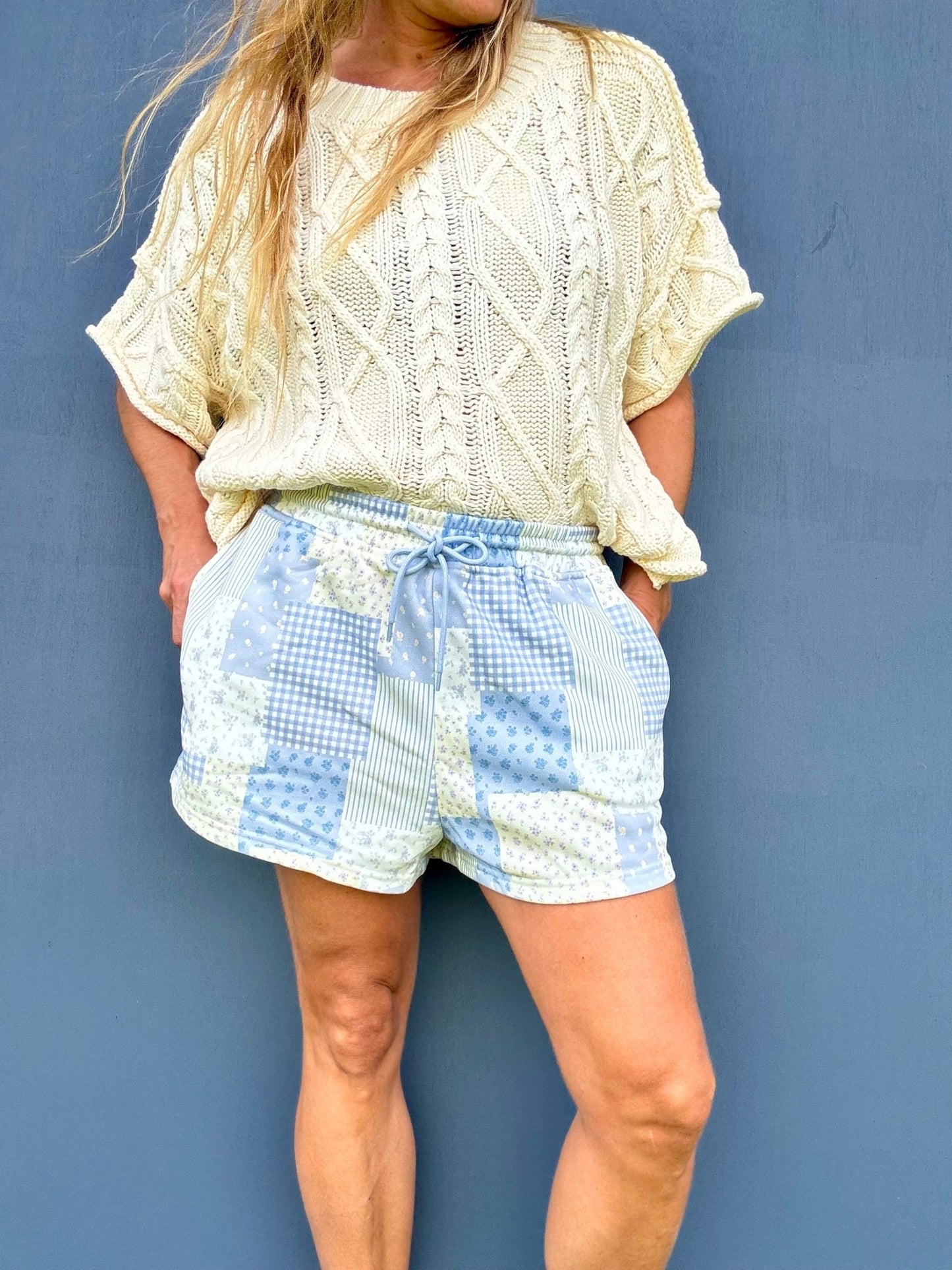 Slip into comfort with our Patch Me Pretty Sweatshorts, featuring a fun patchwork print that brings personality to your loungewear rotation. Perfect for lazy days or casual outings, these shorts are your new go-to for effortless style.