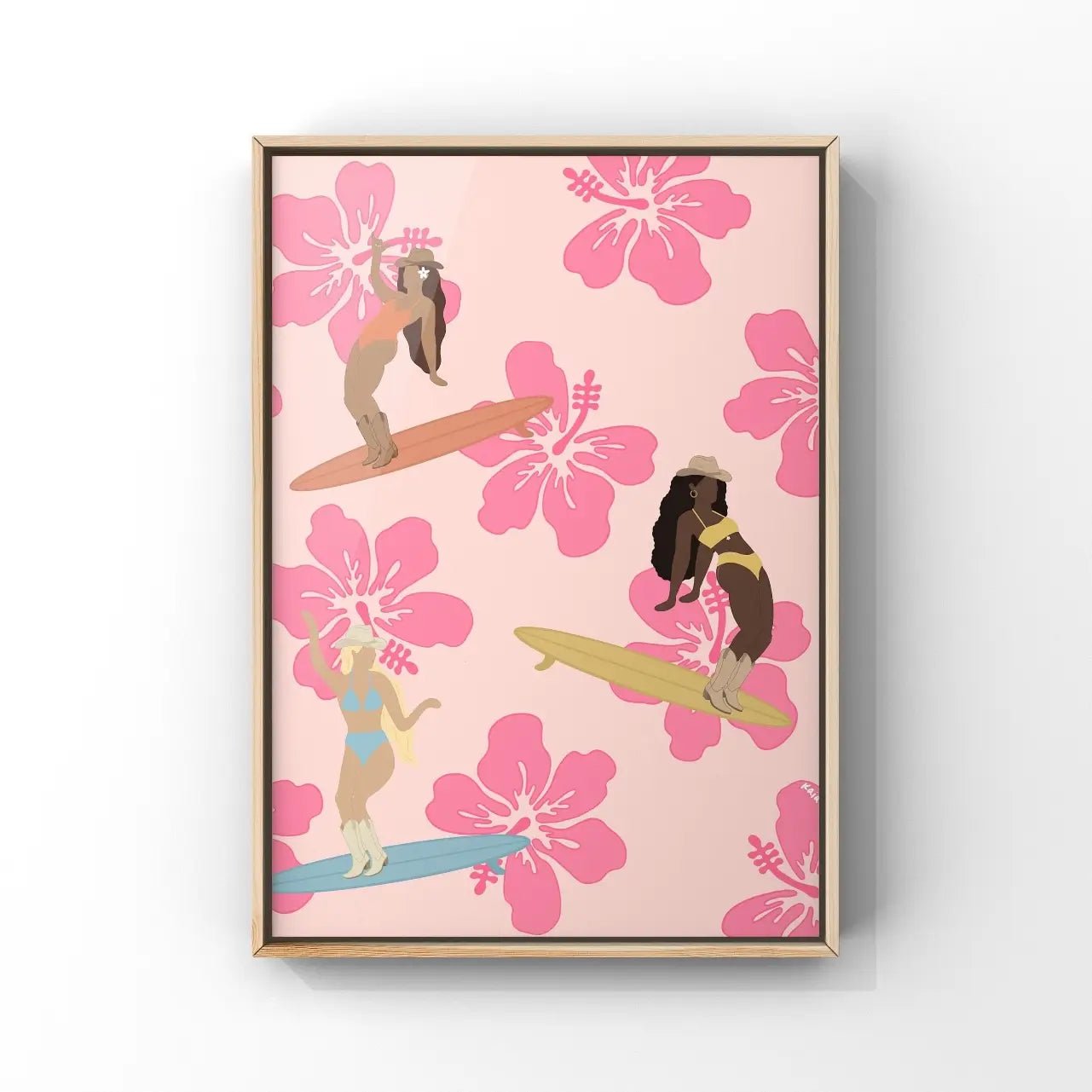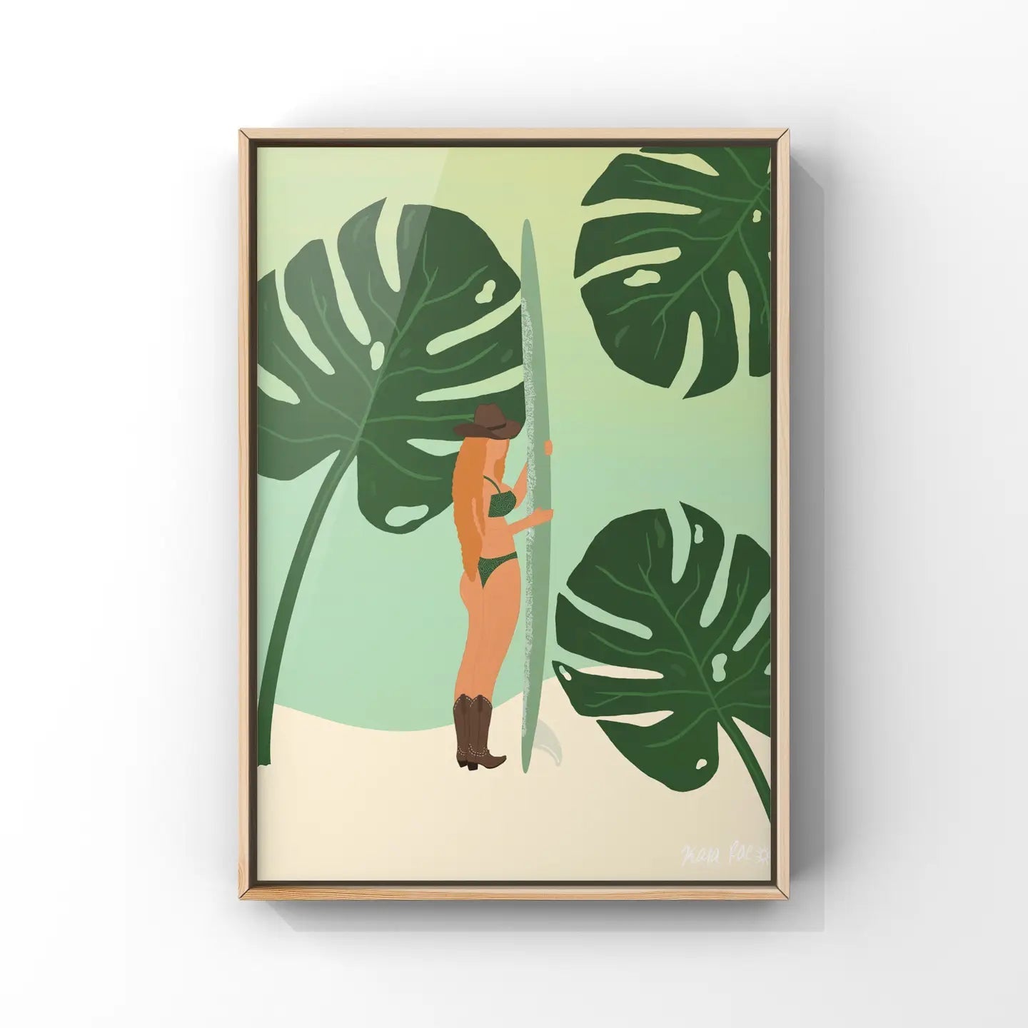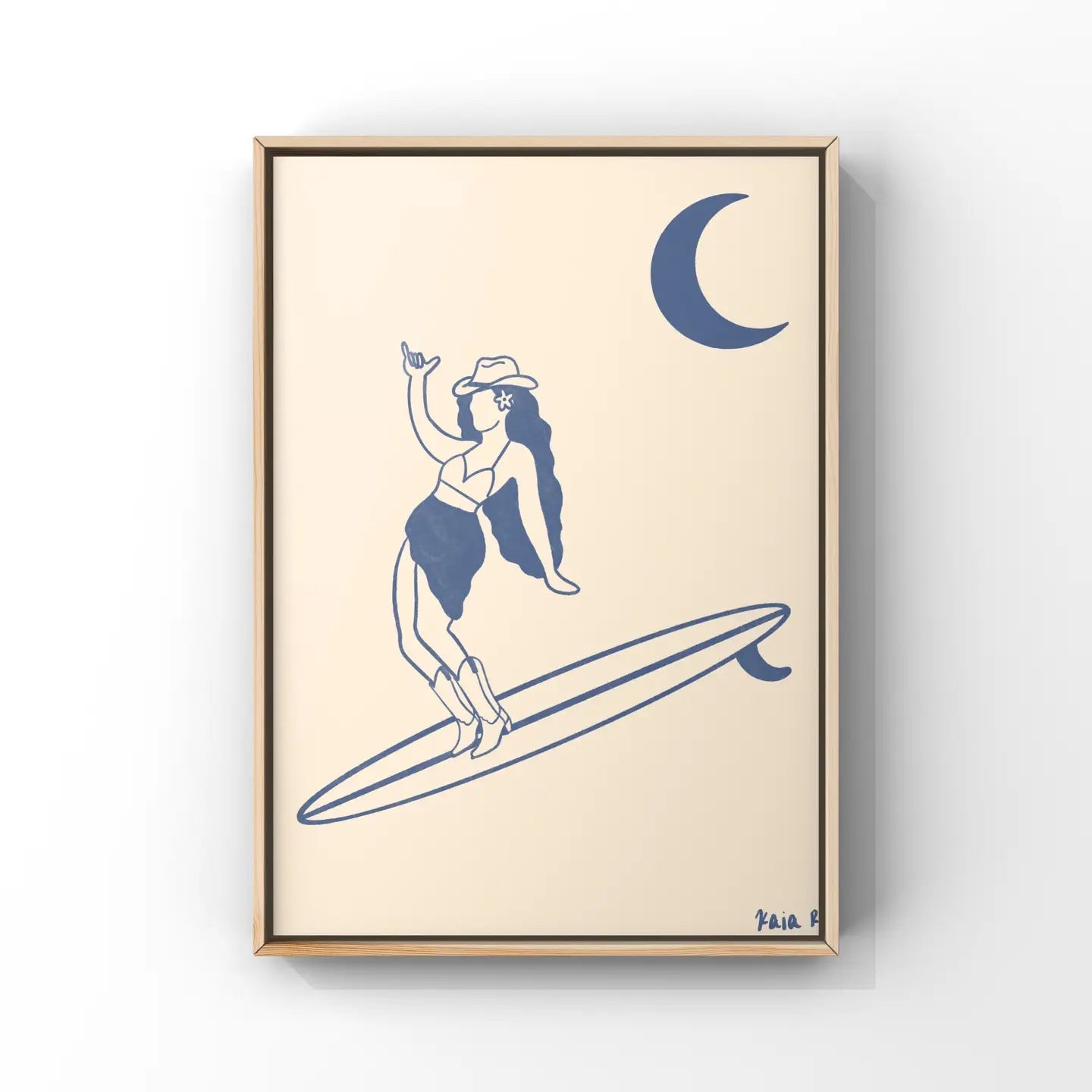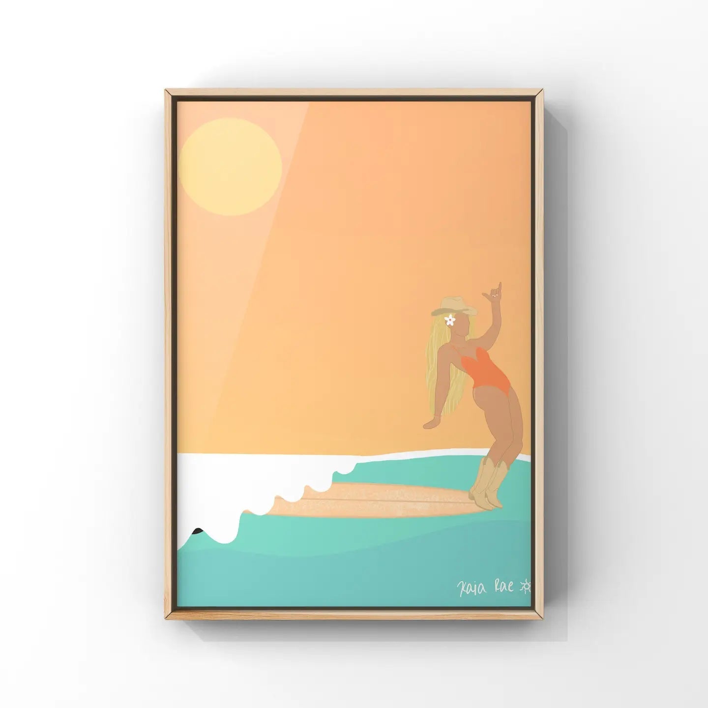 Ride the waves of style with Surf Cowboy Art Prints! Created by Kaia Rae, these prints seamlessly blend the beauty of Hawaii and the wild spirit of Texas. Embrace your inner surfer and cowboy with these unique and playful art pieces!