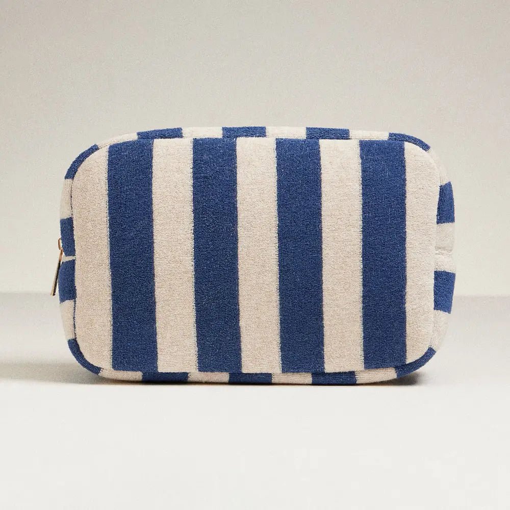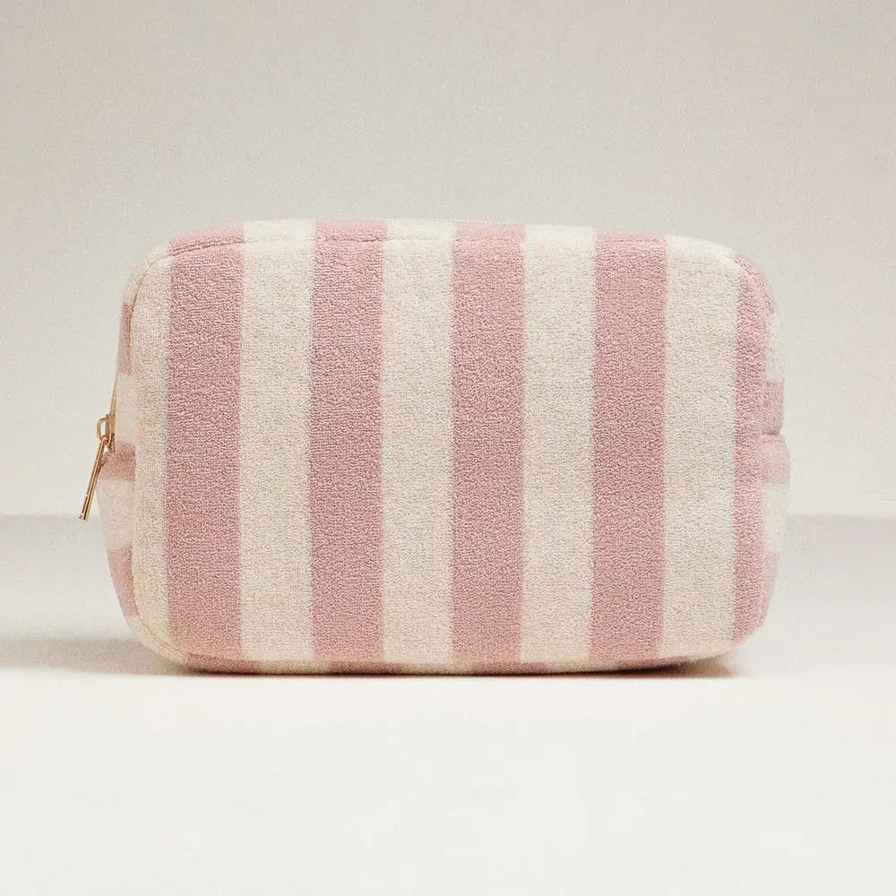 Keep your essentials close and your style on point with this playful striped cosmetic pouch. Its soft, durable fabric and secure zipper make it the perfect travel companion for your daily adventures.