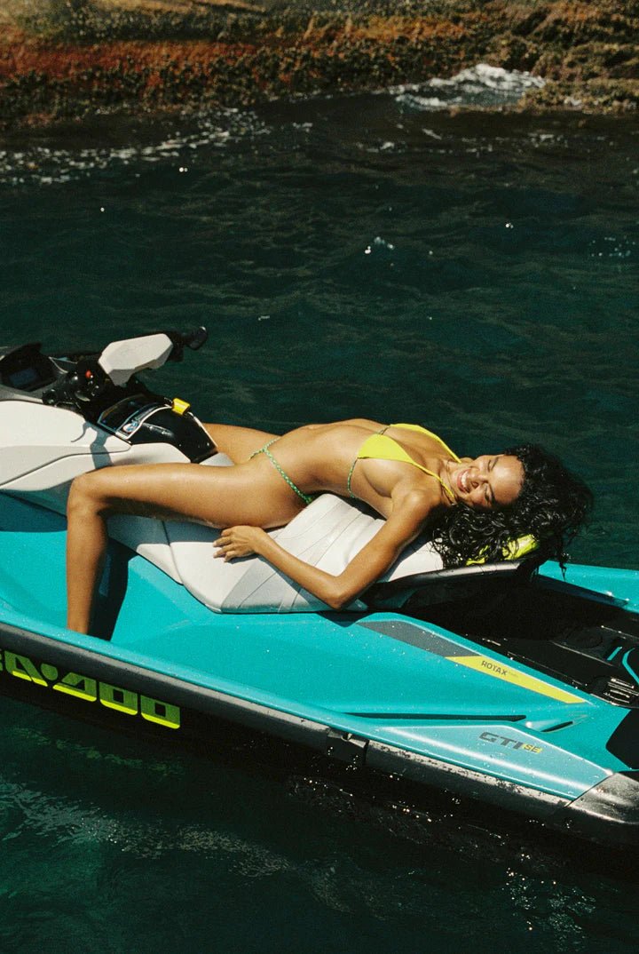 Regular price $58.00 USDMeet the INDAH Lima Bikini Top in Pina Colada! This unique two-tone mesh top features neon yellow and blue braiding for a bold and refined look. Luxurious and airy, it's fully lined for complete coverage. Pairs perfectly with the Amani Bottoms. Fit runs small, so size up for a flawless fit!