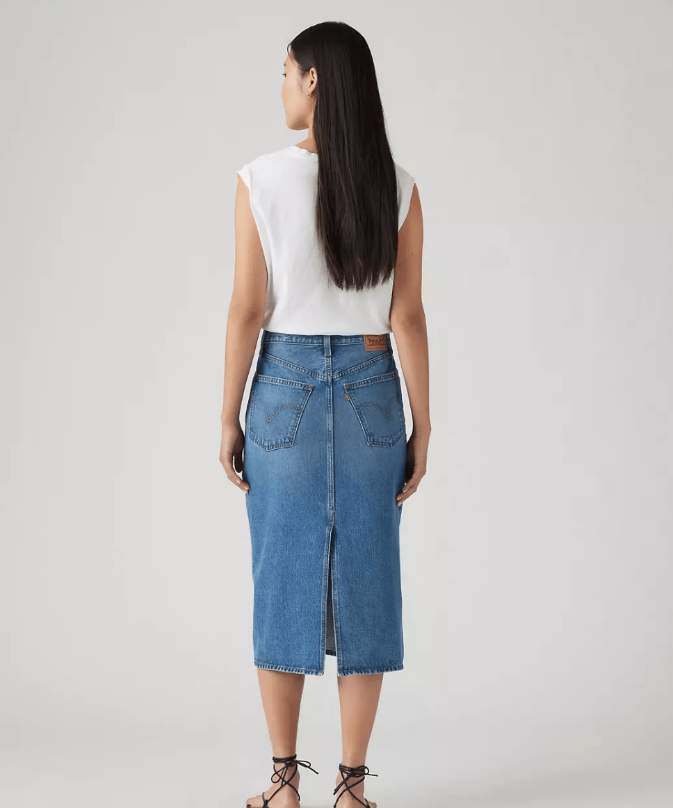 Bring a retro vibe to your wardrobe with the LEVI'S High-Rise Back Slit Skirt, designed to hug your waist and show off your style with a cheeky back slit. This denim beauty combines classic charm with a modern, slim fit that’s ready for any adventure.