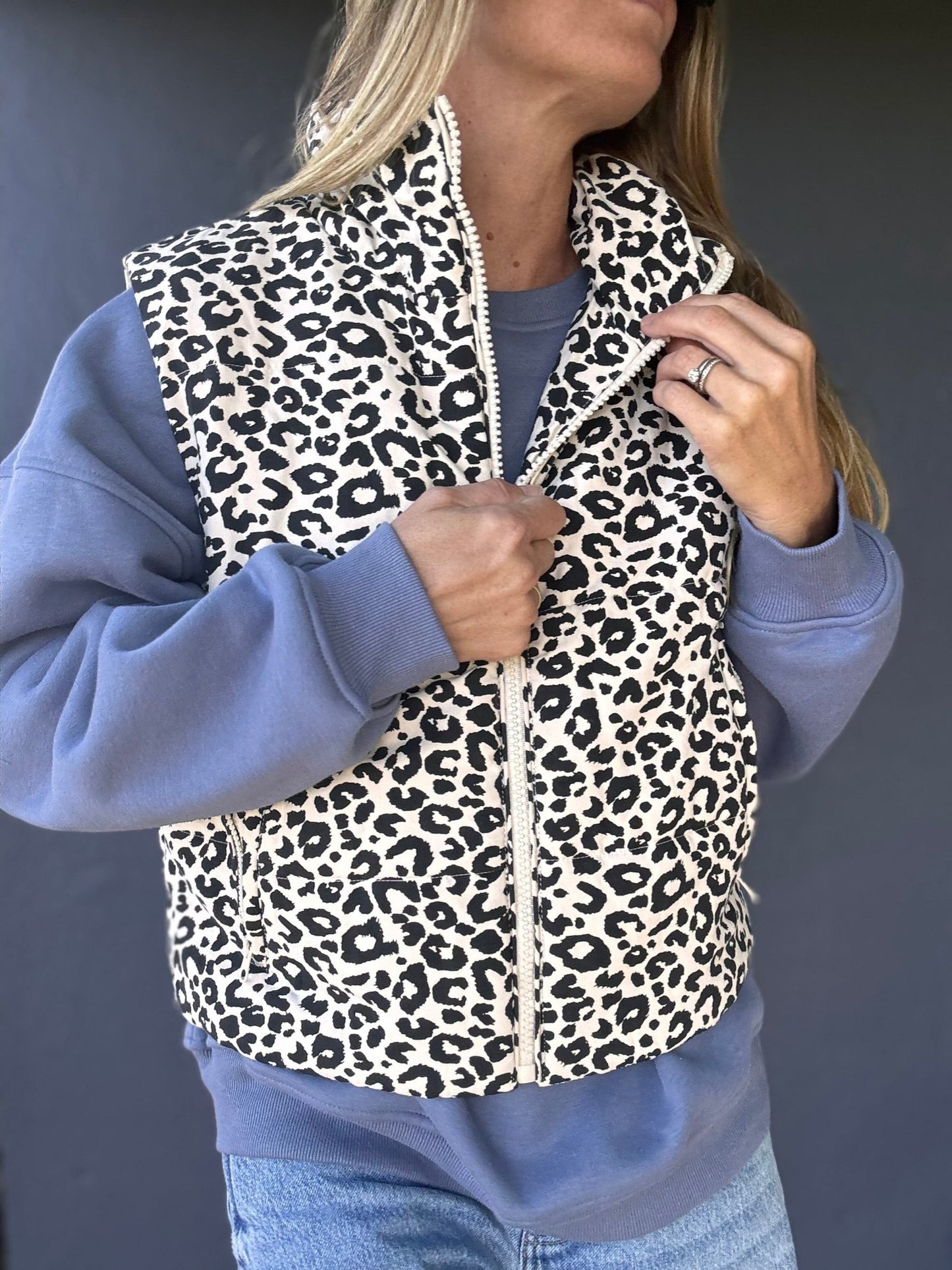 Turn heads and stay cozy in the Puffer Me Wild Vest, where bold leopard print meets ultimate comfort. Perfect for layering, this vest adds a fierce edge and structured shape to any look.