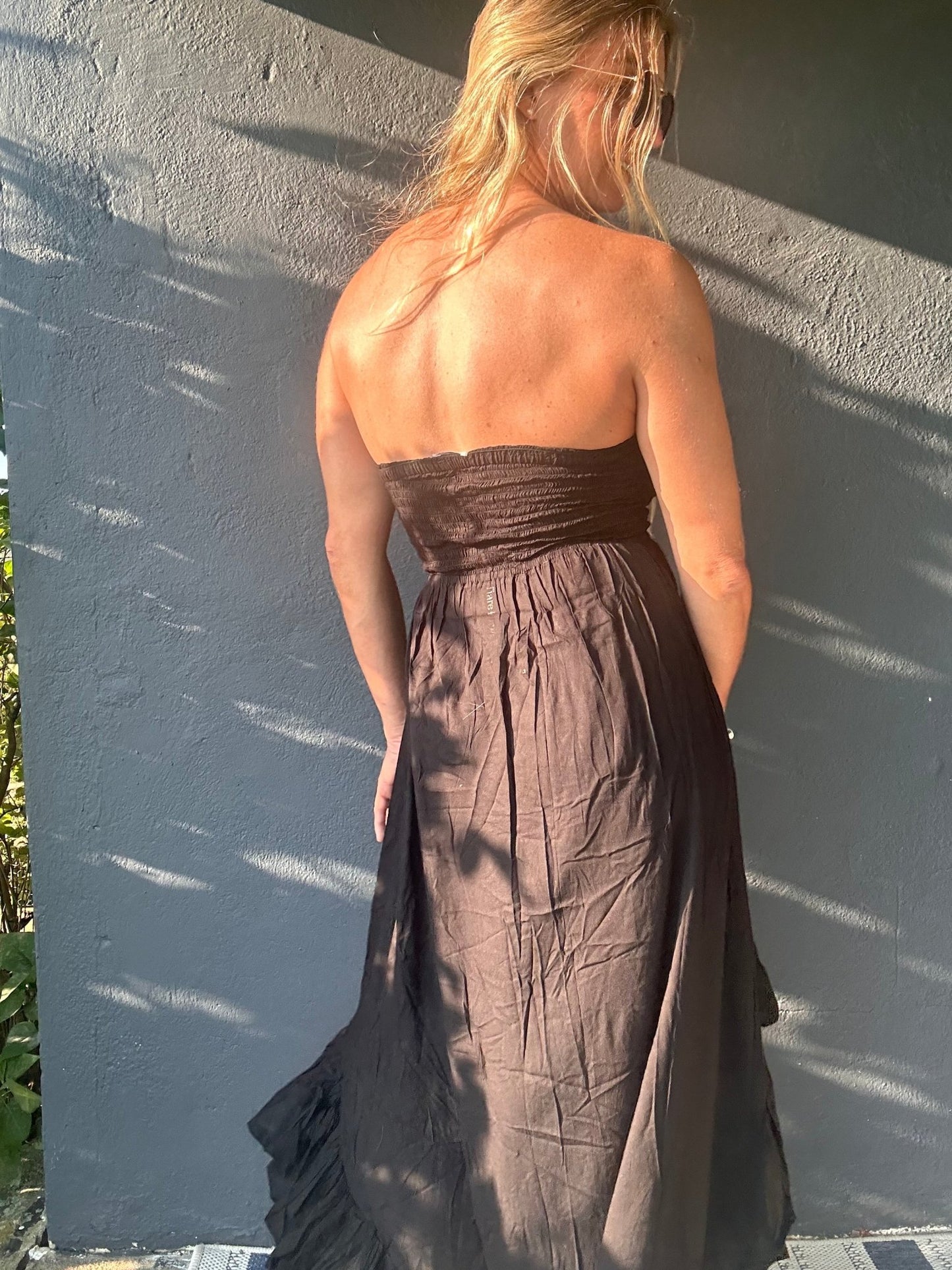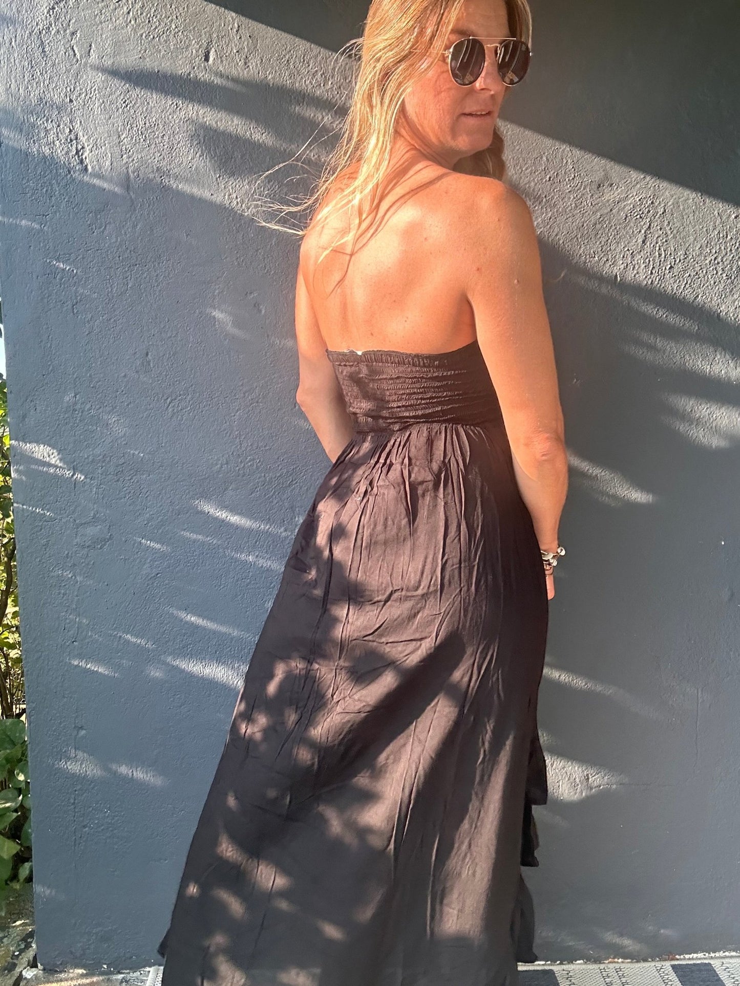 Embrace every moment in carefree style with lace up strings that can be tied in the front for a classic strapless fit or used to create a halter look. Featuring soft-fit comfort and draping fabric, the Aila Maxi Dress is a customizable piece designed to captivate.
