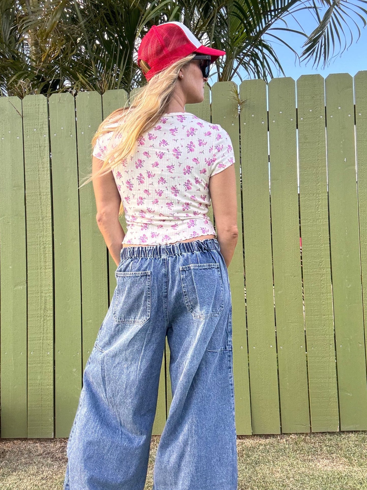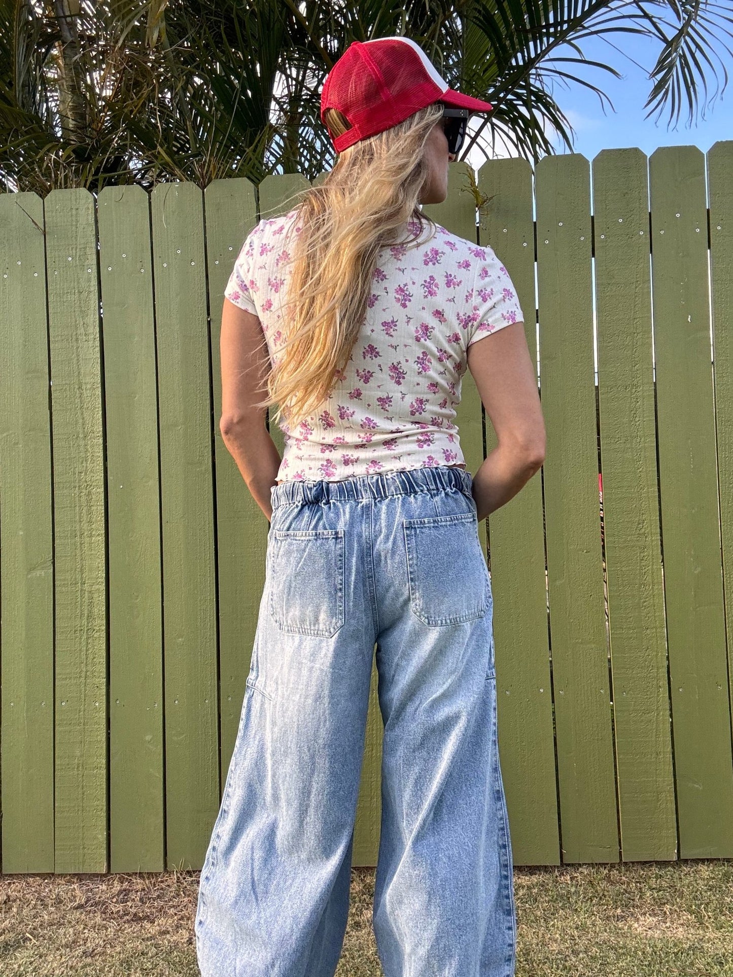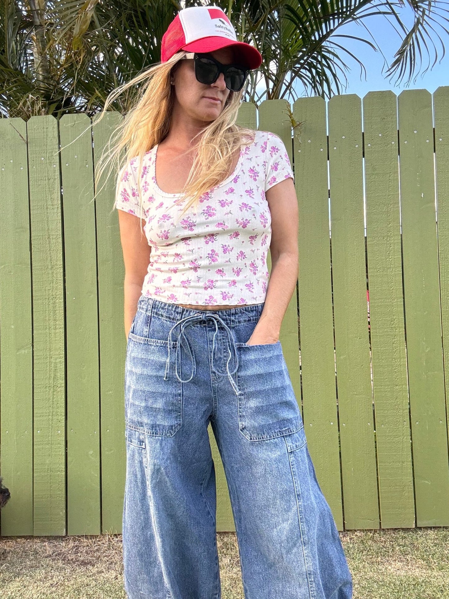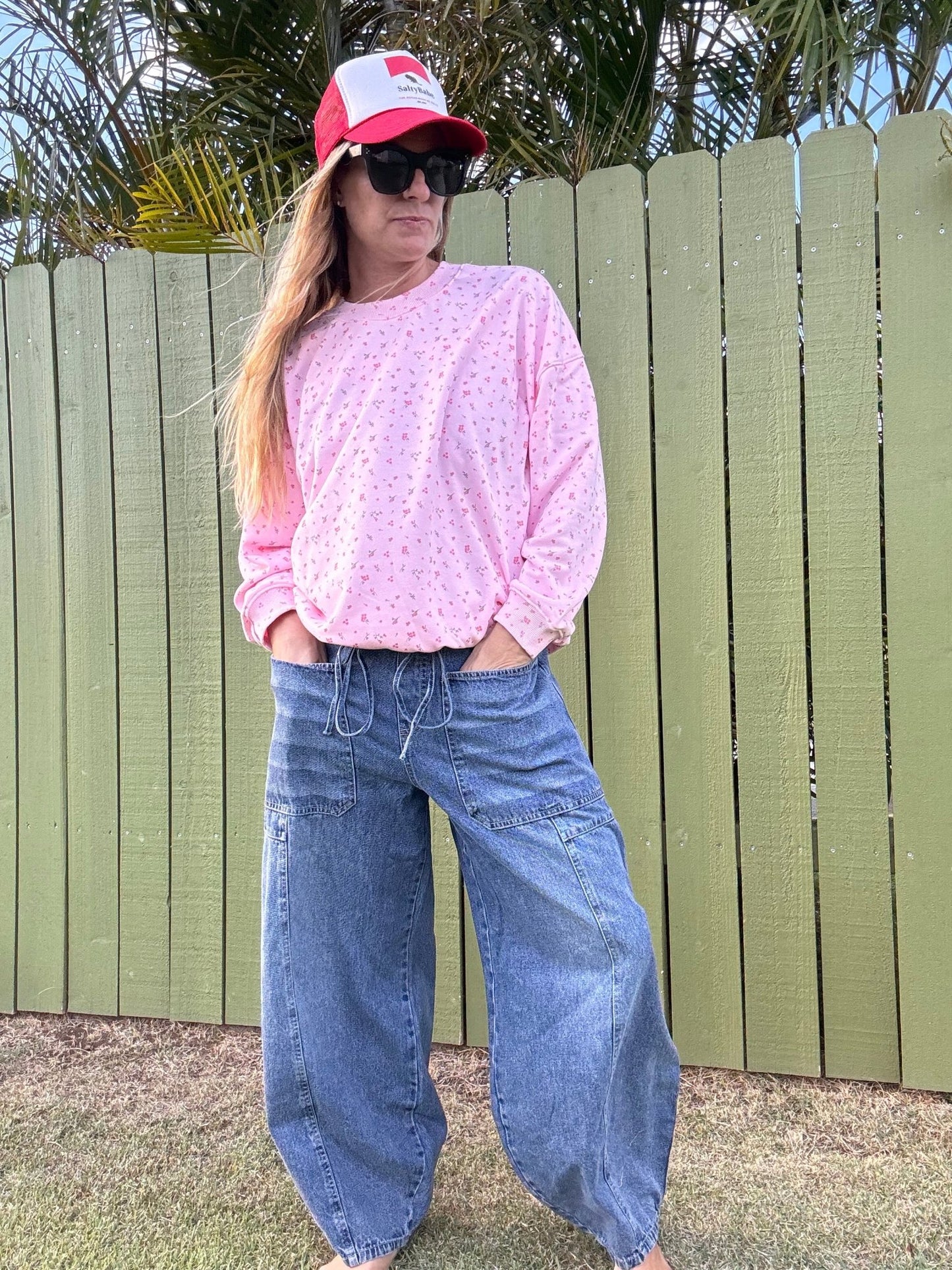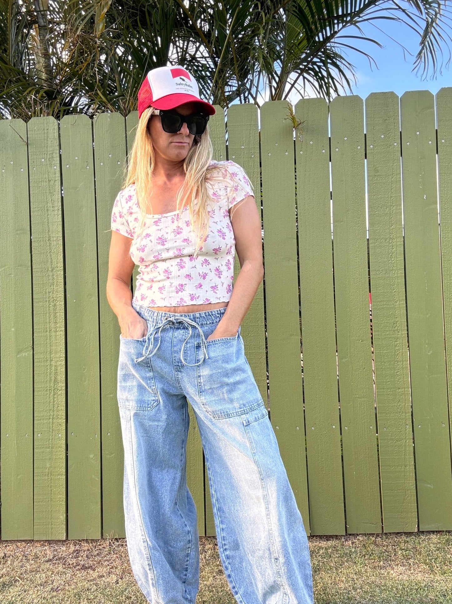 Embrace laid-back style with our 100% cotton mid-waist drawstring barrel jeans. The adjustable drawstring provides a comfortable fit, while the barrel-leg silhouette adds a modern touch. Perfect for daily wear, these jeans offer a relaxed yet stylish look that can be dressed up or down.