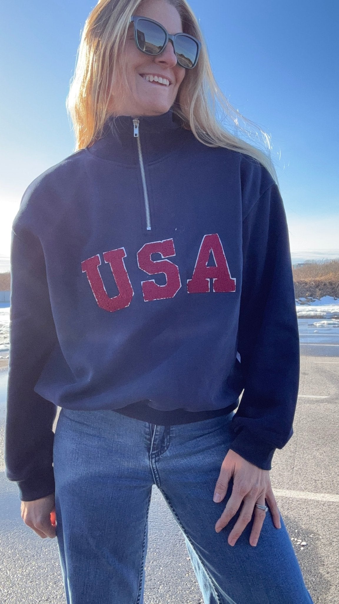 True Blue USA Quarter Zip Sweatshirt