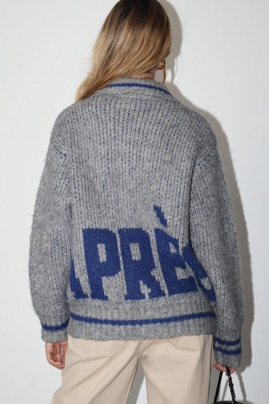Stay cozy and stylish with our Apres Zip Cardigan. Perfect for chilly days, this cardigan features a convenient zip-up design. So go ahead, zip up and stay warm in style. (Zip it good!)