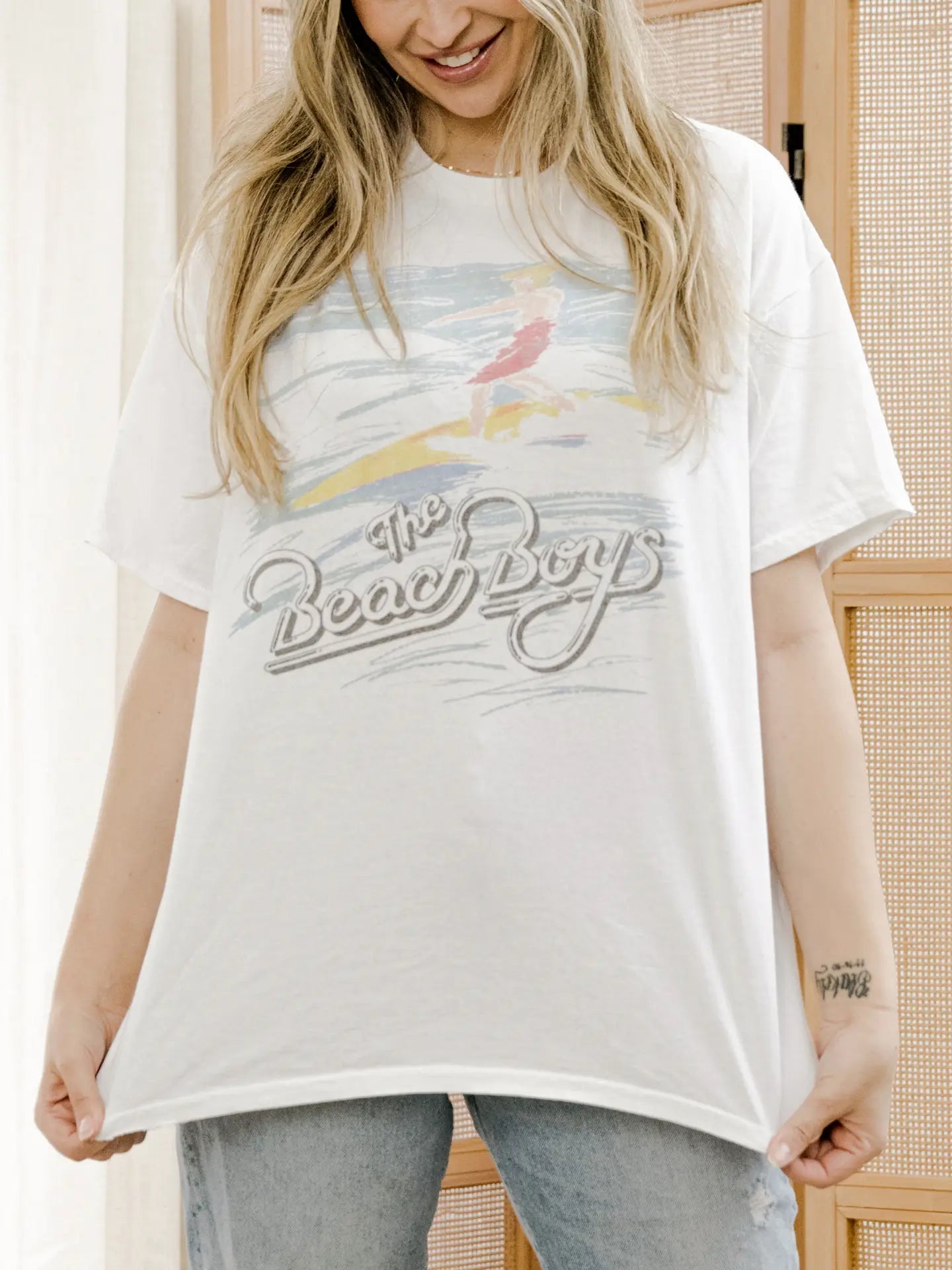 Join the vintage surf revival in the Beach Boys 80s Surf Tee, a retro graphic tee lightly distressed to perfection and inspired by the height of 60s beach style. Pair with vintage denim and sneakers.