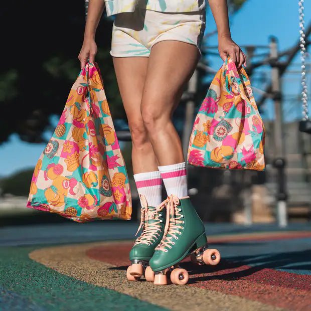 This is the holy mammoth version of the Classic Reusable Baggu. This bag is ginormously awesome. It can hold your entire Yoga or Barre ensemble. Why carry a silly mesh laundry bag? Tote this around town, and if you find a stray that needs a home, just stick it in here. It’s perfect for a day at the beach with your entire family, and there’s no need to worry about wet swimsuits and towels, chuck them right in. Just don’t carry over 50 lbs. or you might fall over.