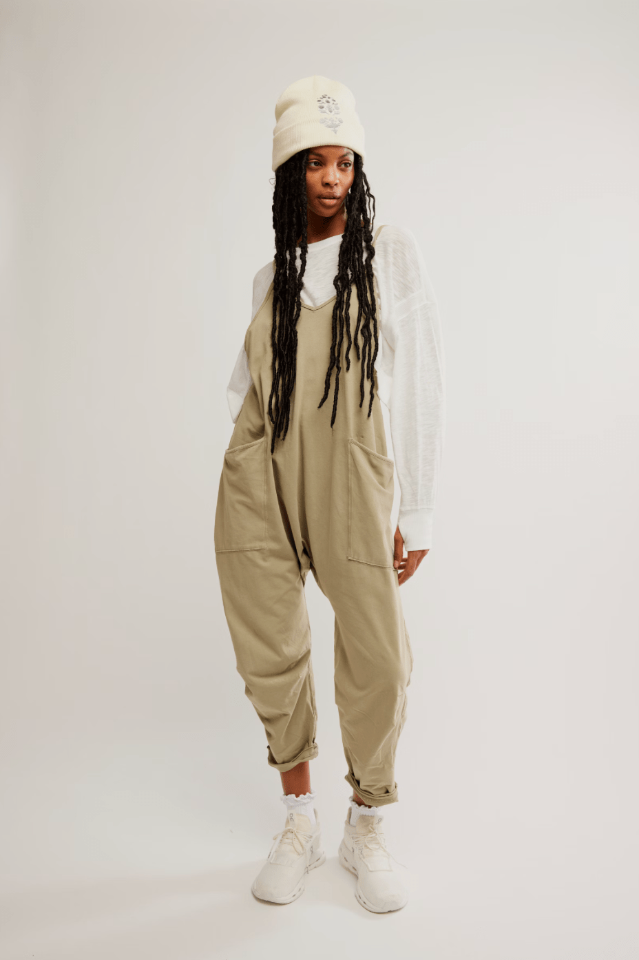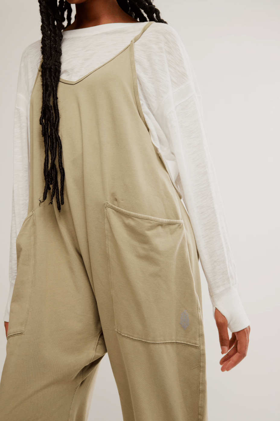 Lounge around in style with our FREE PEOPLE Hot Shot Onesie. Made from soft material, this onesie offers a slouchy, relaxed fit with a dropped crotch and handy side pockets for all your necessities. Perfect for a cozy night in or a casual day out. You won't want to take it off!