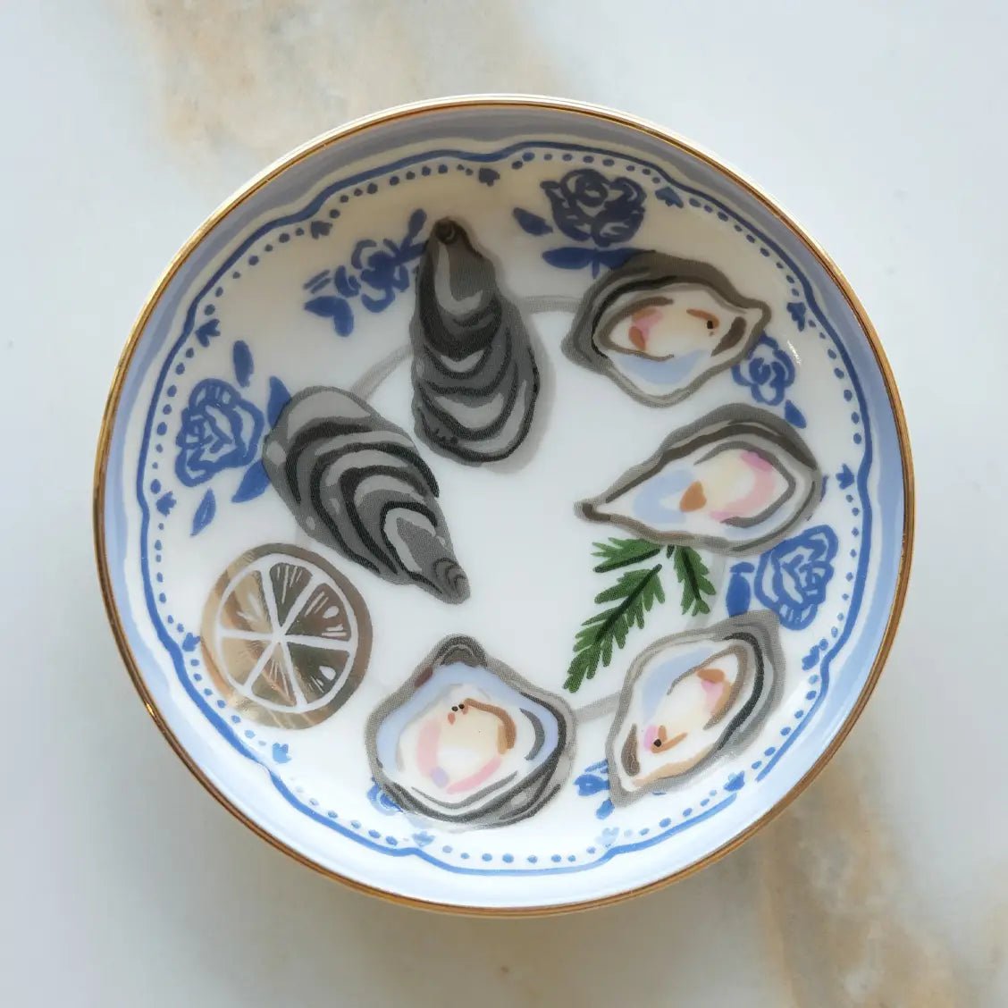 Catch all your tiny treasures in style with the Oyster Trinket Dish—a ceramic beauty that's as functional as it is fabulous. Hand-painted with colorful designs and trimmed in 10k gold, this little gem arrives in a plastic-free gift box that's practically begging to be given as-is.