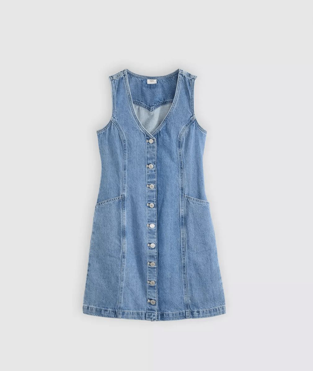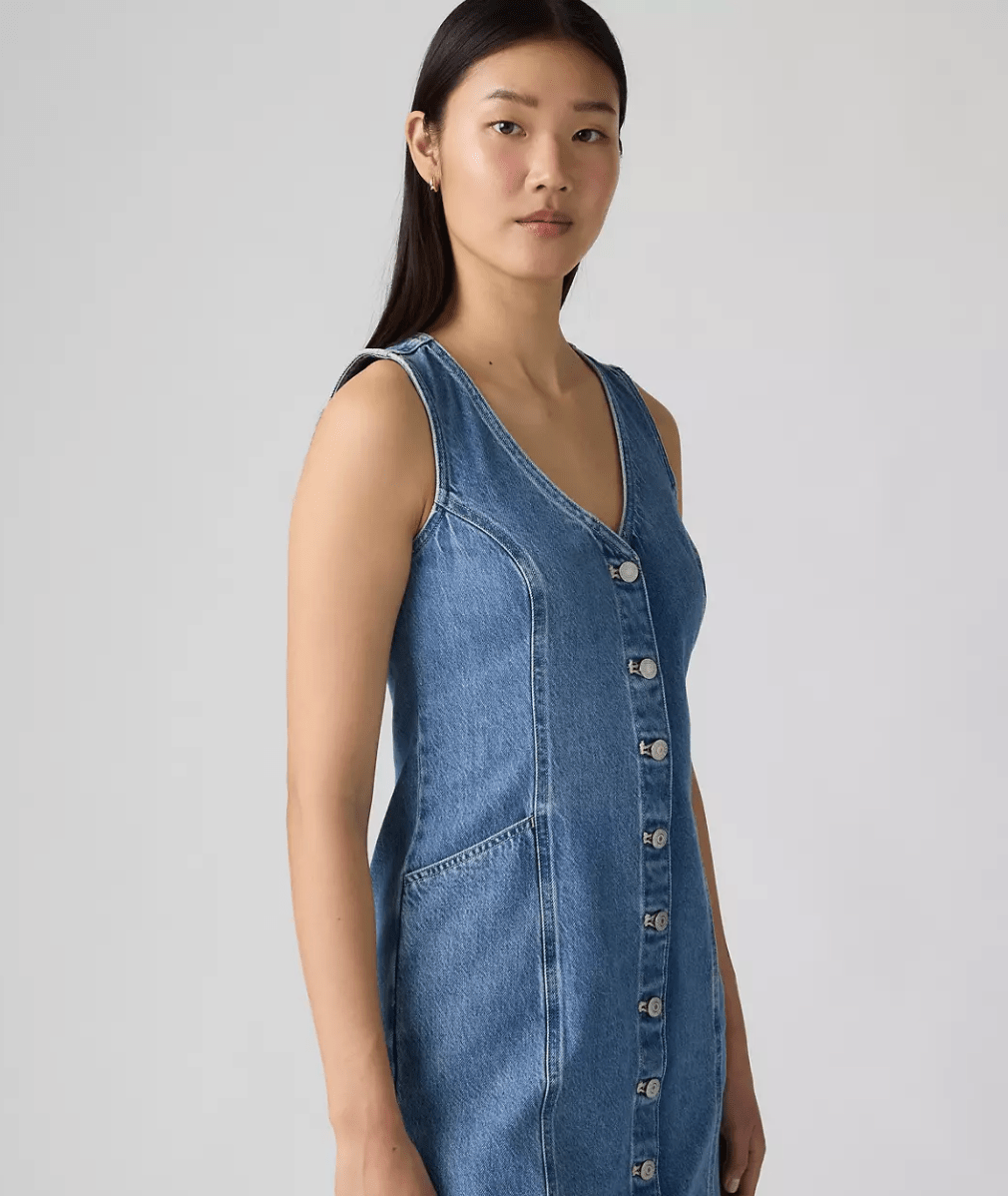 The LEVI'S Vianna Vest Dress is your new go-to for effortless style with a flirty edge. Slip it on and enjoy the perfect combo of comfort and cool in a snap. - Sleek V-neckline for a touch of charm