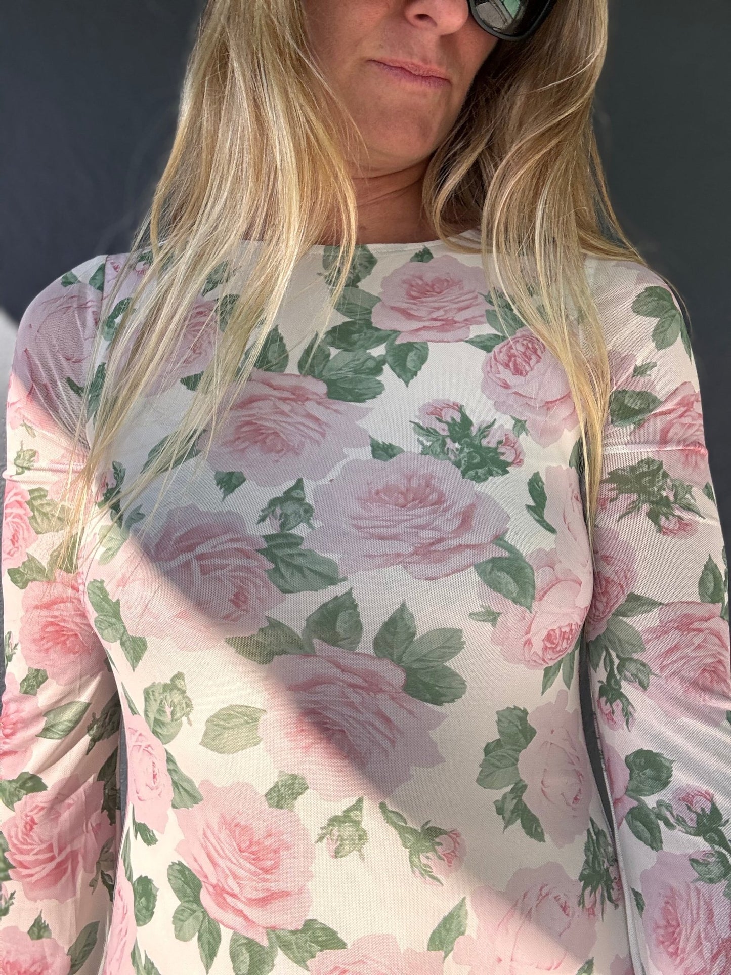 - Lined bodice for comfort, with sheer sleeves for a light, breezy vibe