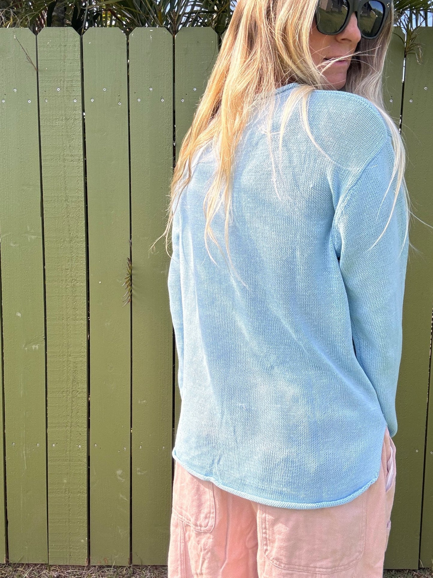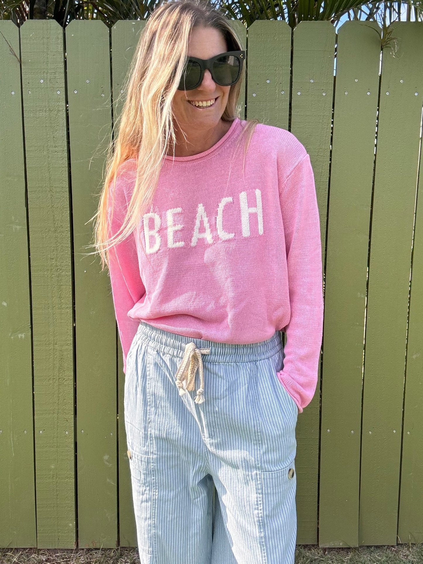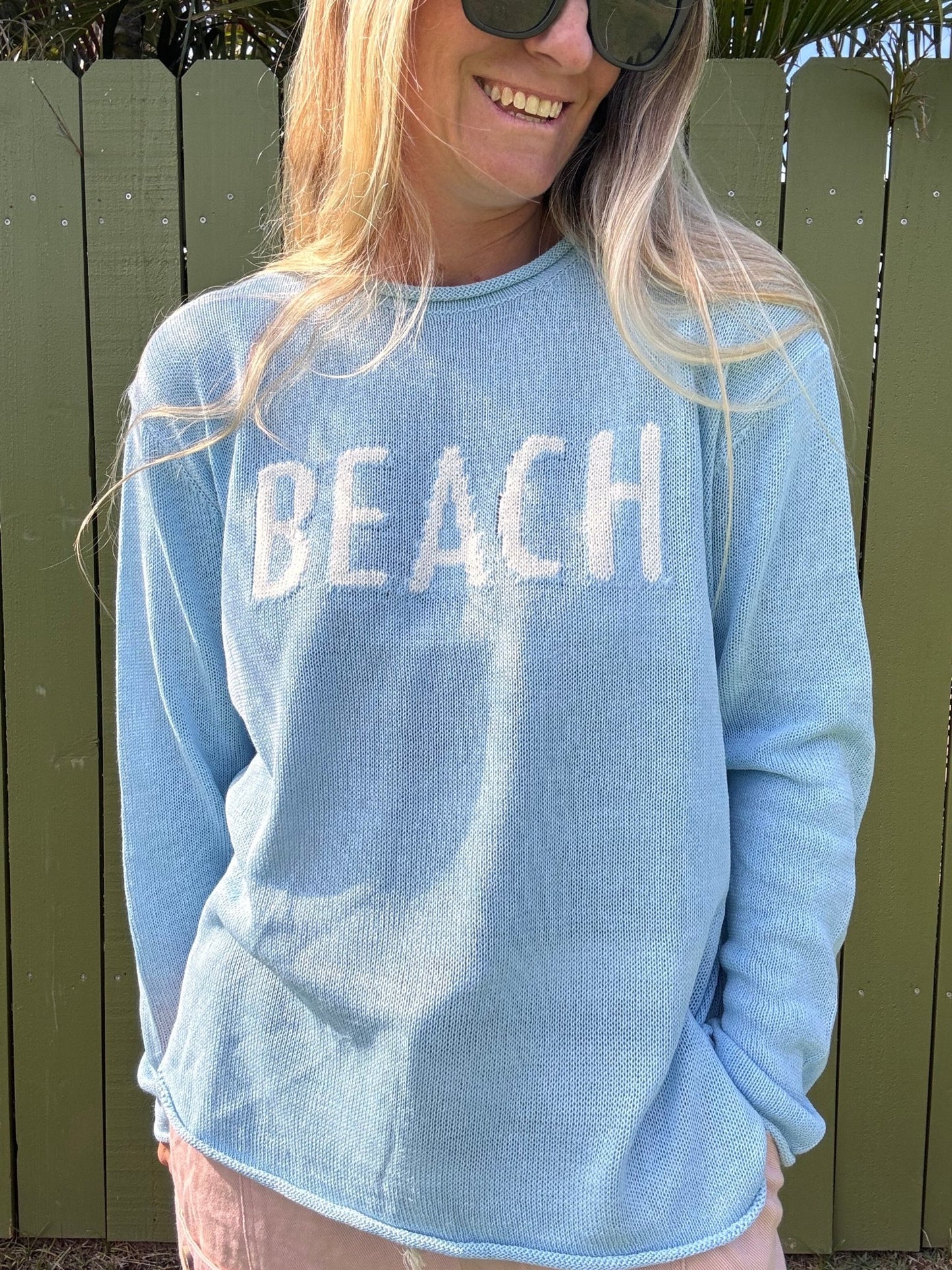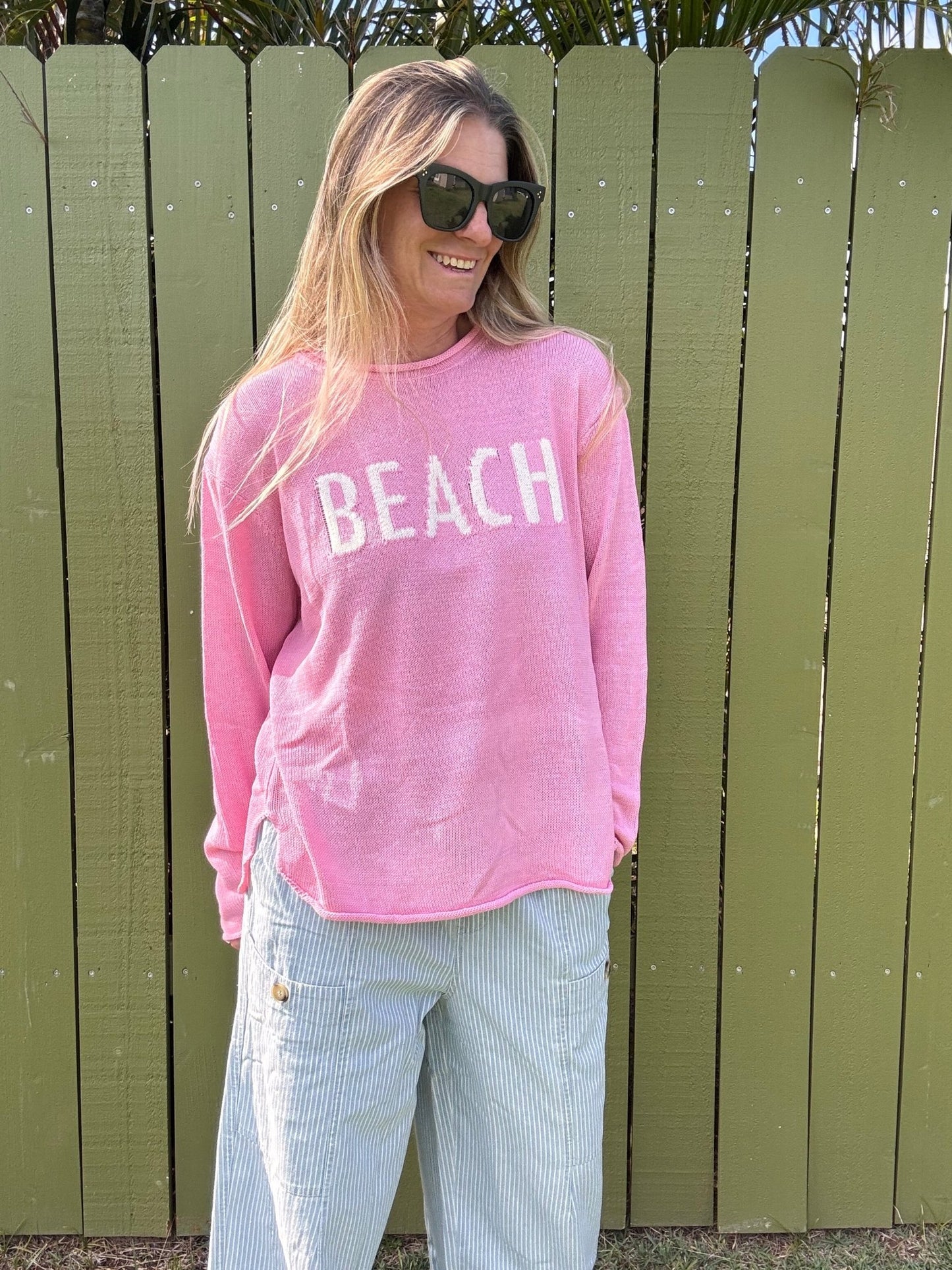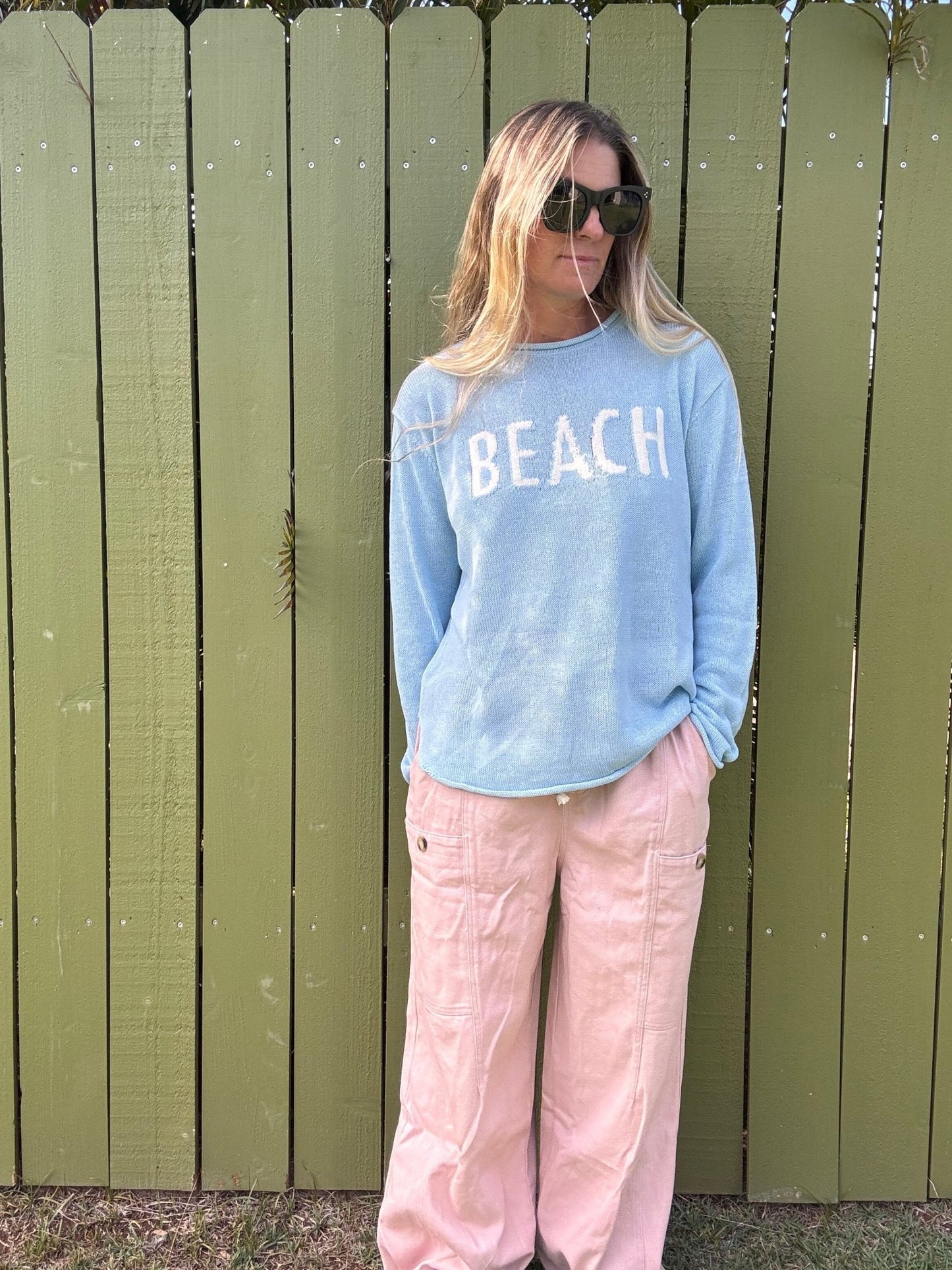Introducing the Beach Lover Sweater: perfect for those who live for the sun, sand, and surf! With a whimsical design and cozy knit, this sweater will keep you warm on chilly beach days. Show off your love for the beach in style. Available in Baby Blue and Pink.