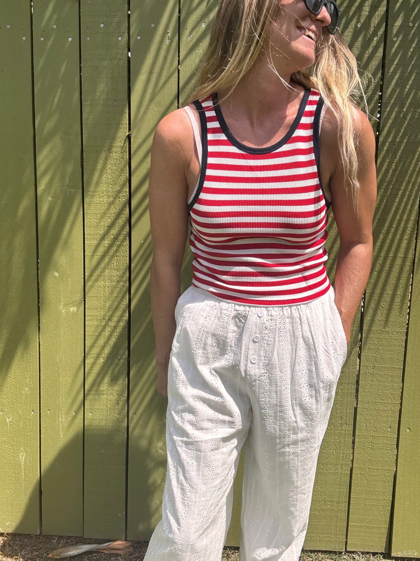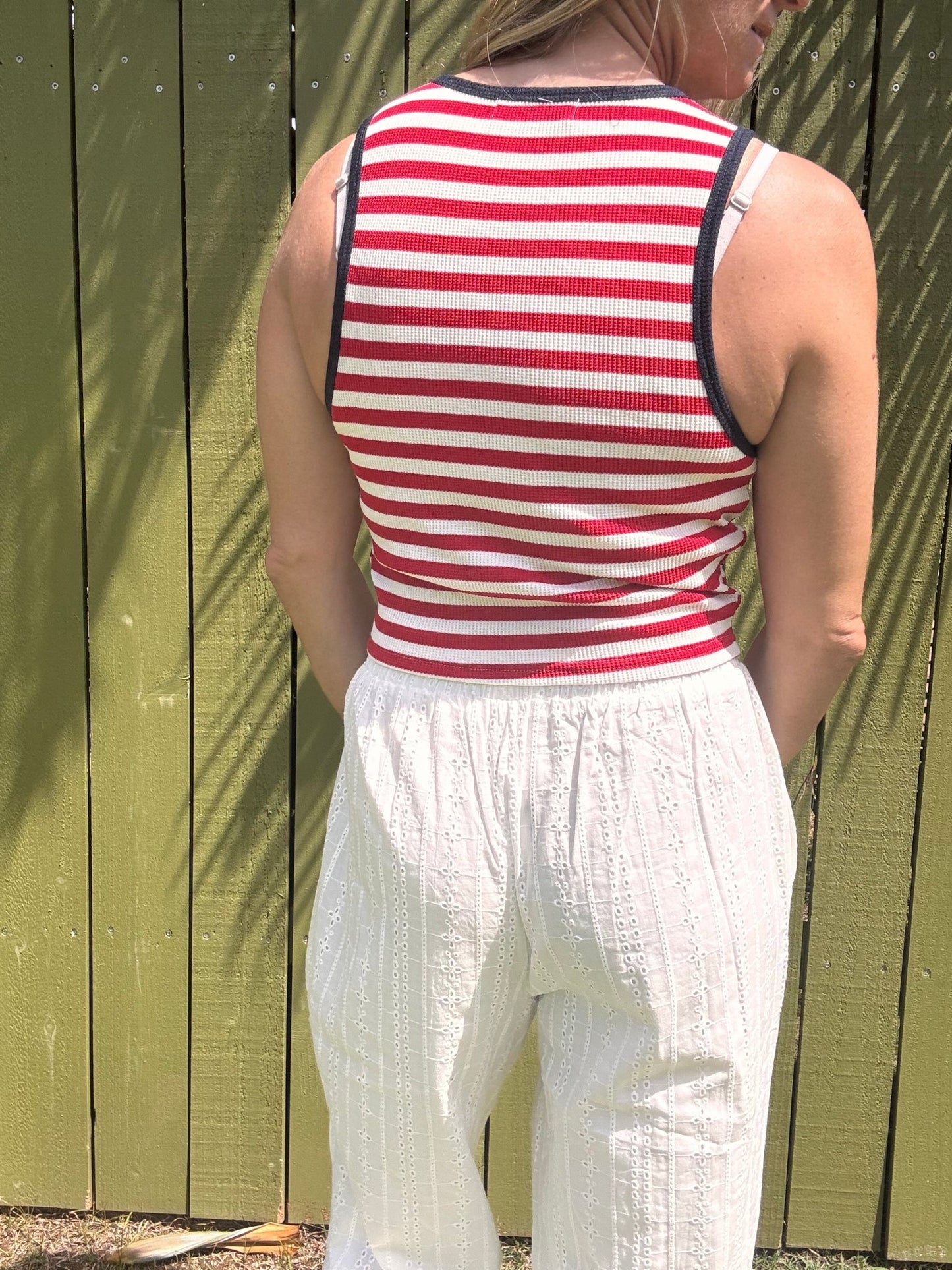 Celebrate the 4th of July in style with our Stripe Thermal Tank! This fun and festive top will keep you cool and comfortable during all the holiday festivities. Show off your patriotic spirit with this must-have tank top!