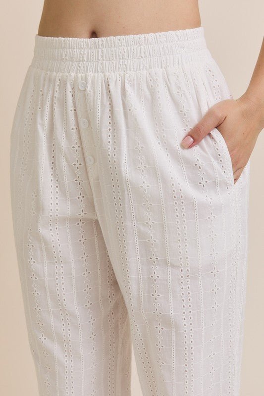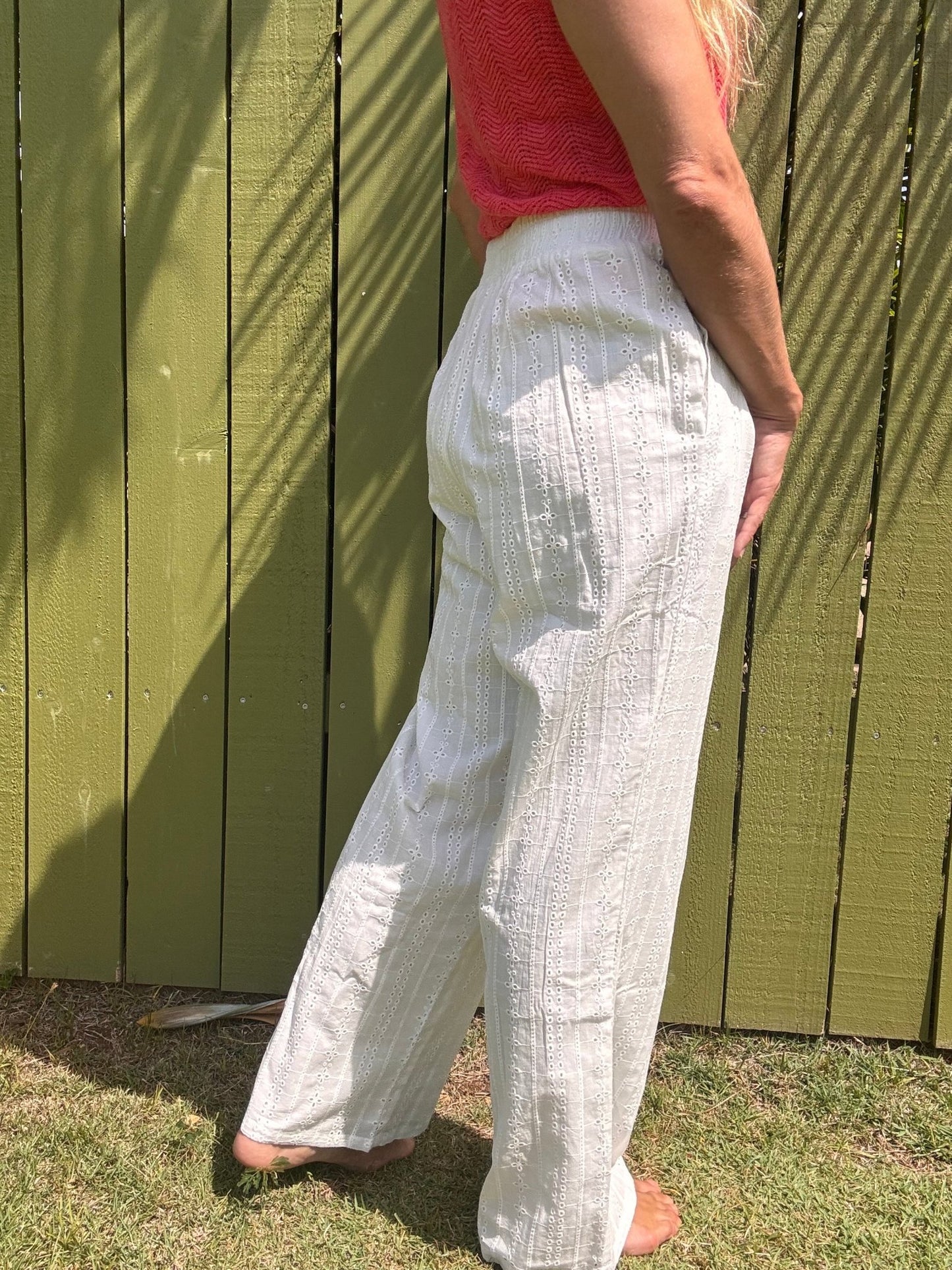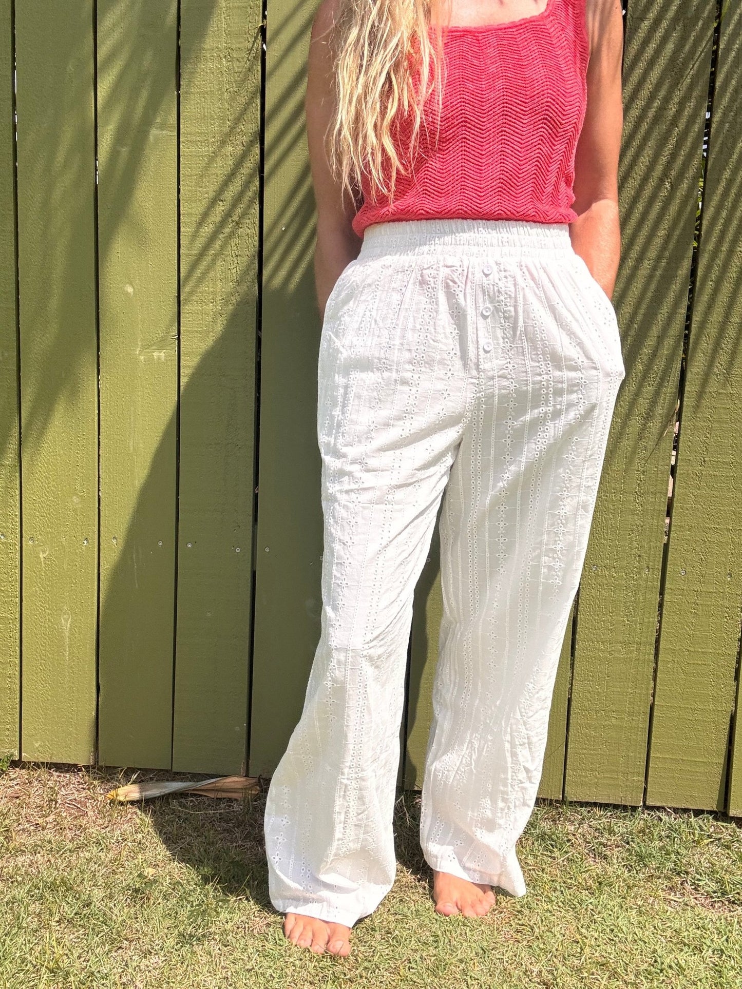 Introducing the Sunbeam White Pant - the ultimate pant for sunny days! Made with a lightweight fabric that keeps you cool and comfortable, these pants will be your go-to for all your outdoor adventures. Don't miss out on these stylish and practical pants!