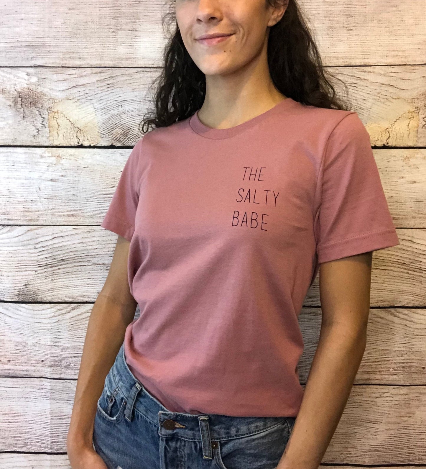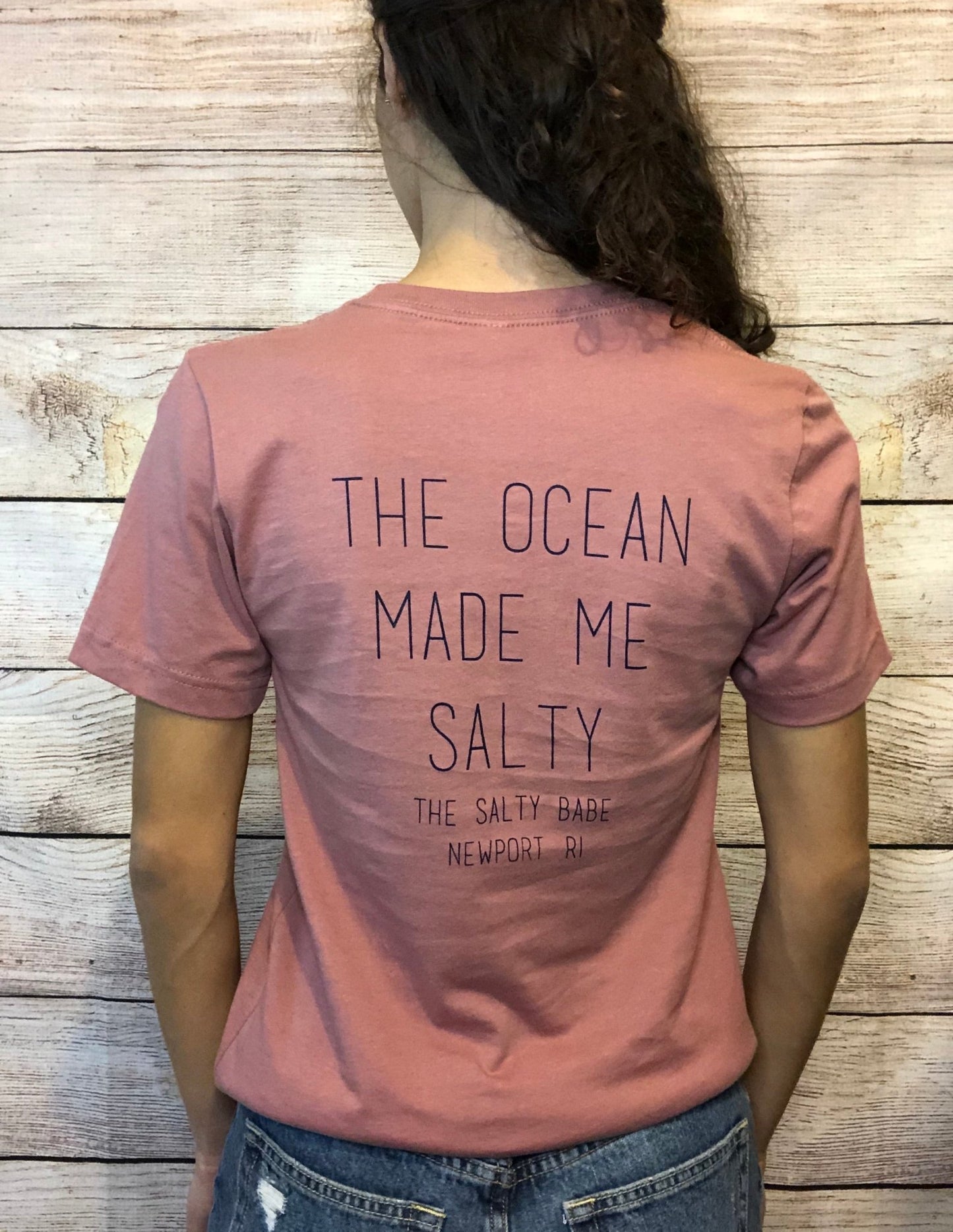 The Salty Babe Ocean Made Me Salty Tee is here to express your salty, beachy side. This casual, soft cotton blend tee is easy to throw on for everyday looks and hanging out on the coast.