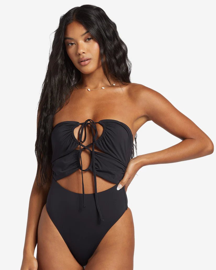 The latest style to join our best-selling Sol Searcher Collection is this cutout one-piece swimsuit with a cool criss-crossed neckline. The fit: a skimpy, high-leg cut that flatters your curves. The fabric: our recycled Peach Stretch fabric for strength, softness, and 4-way stretch.