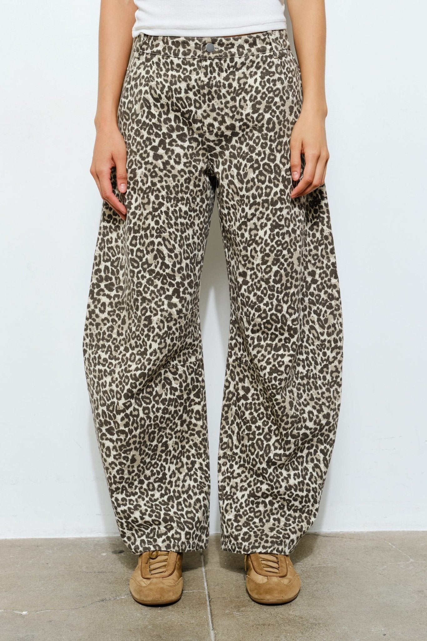 Go bold and break the rules with the Savanna Barrel Jeans—a fearless take on denim that pairs a fierce leopard print with crisp 100% cotton comfort. Rock the relaxed barrel-leg silhouette and let your wild style do the talking.