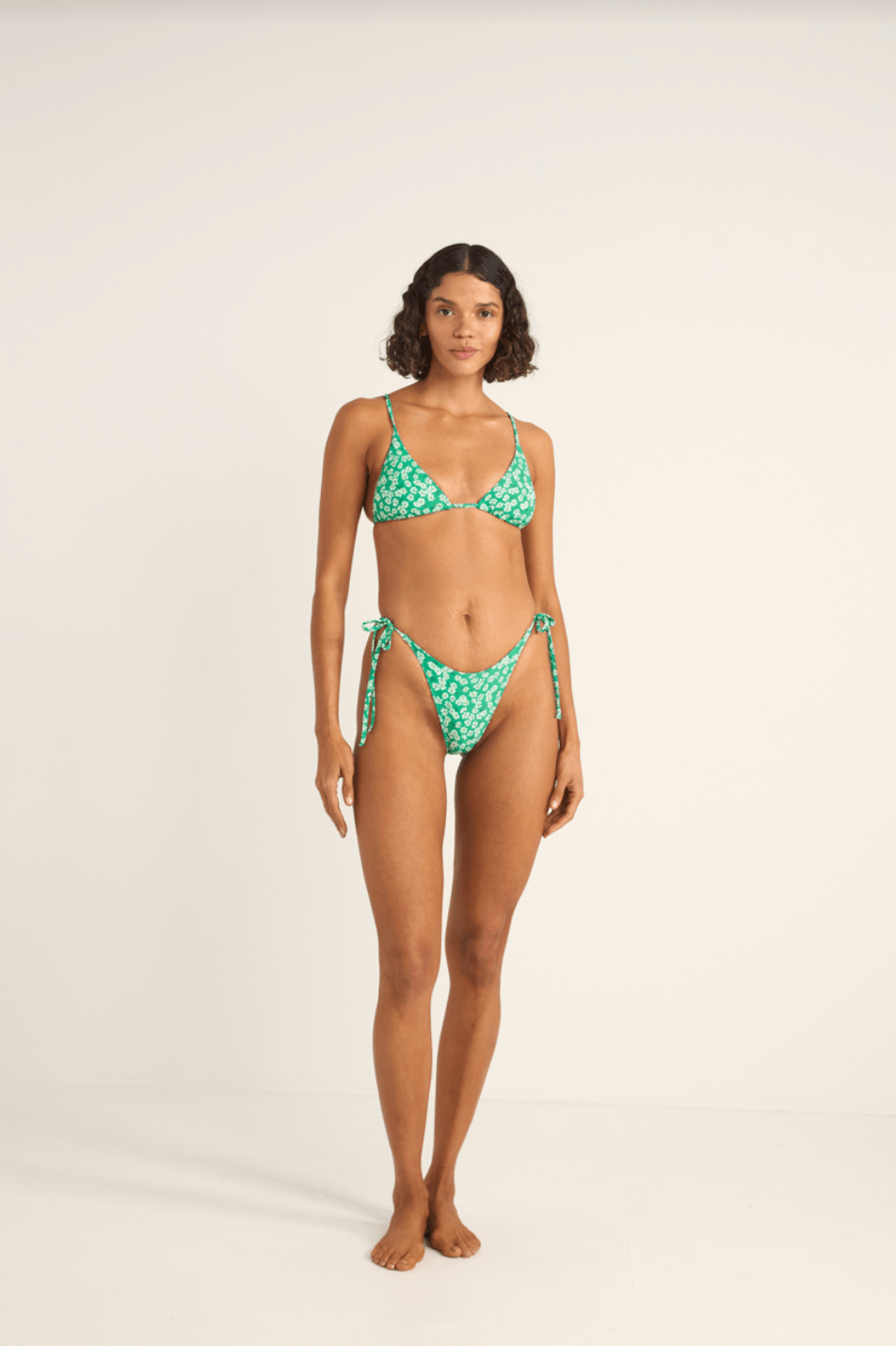 RHYTHM Evergreen Floral Tie Side Hi Cut Bikini Bottom - Green