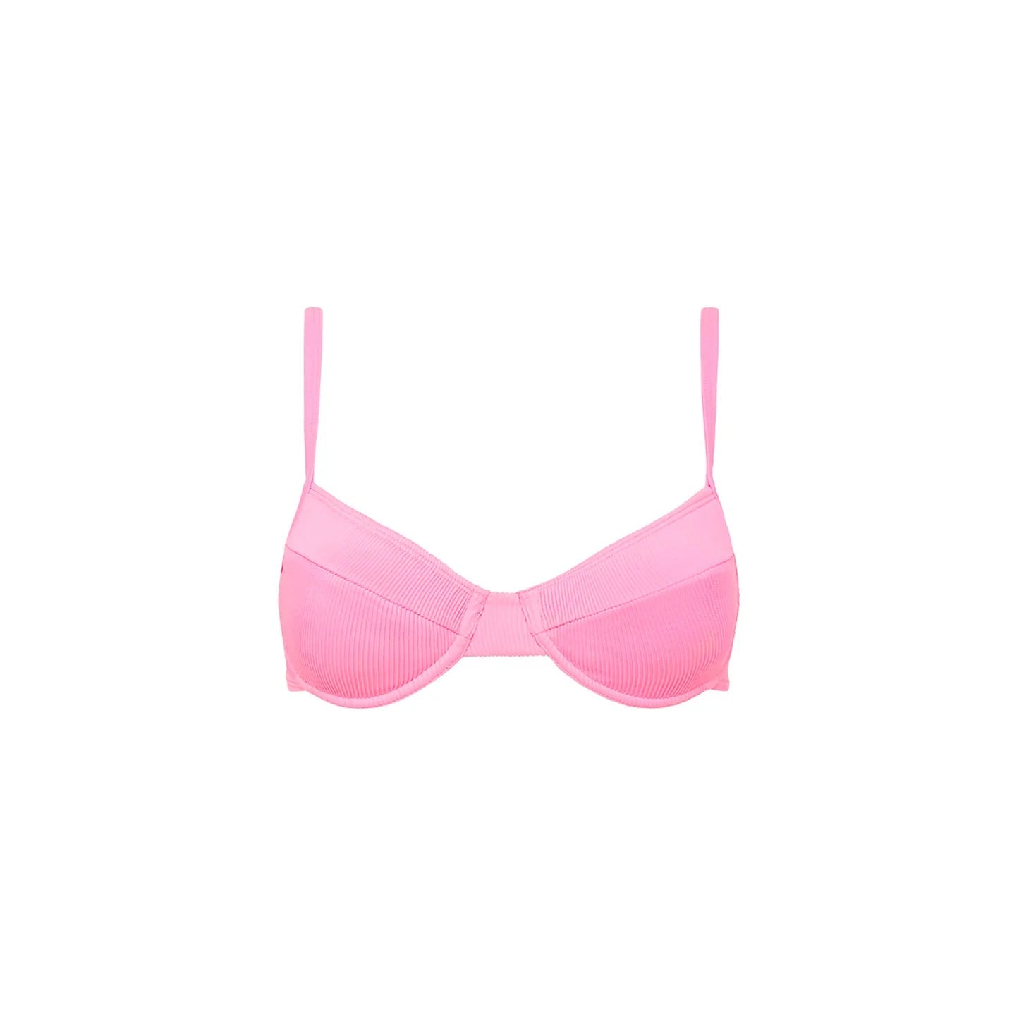 KULANI KINIS Ditzy Underwire Bra Bikini Top - Taffy Pink Ribbed