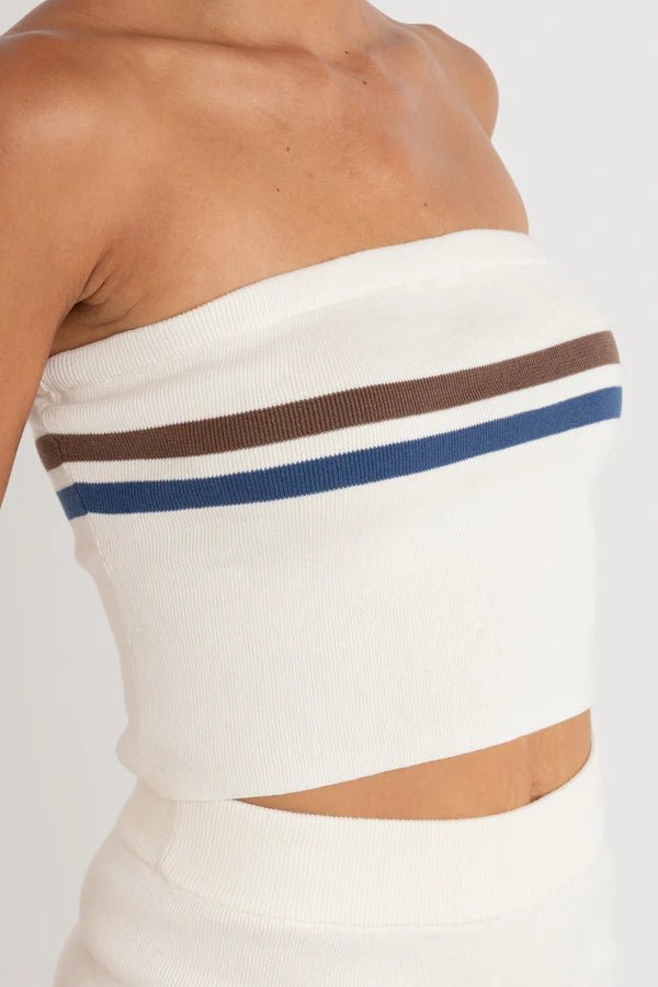 Regular price $30.00 USDThis strapless soft knit tube top in cream brings a playful twist to your wardrobe with its ribbed texture and bold contrast stripe at the bust. Perfect for sunny days, it pairs effortlessly with your favorite shorts or skirts, adding a sporty yet chic vibe to any outfit.