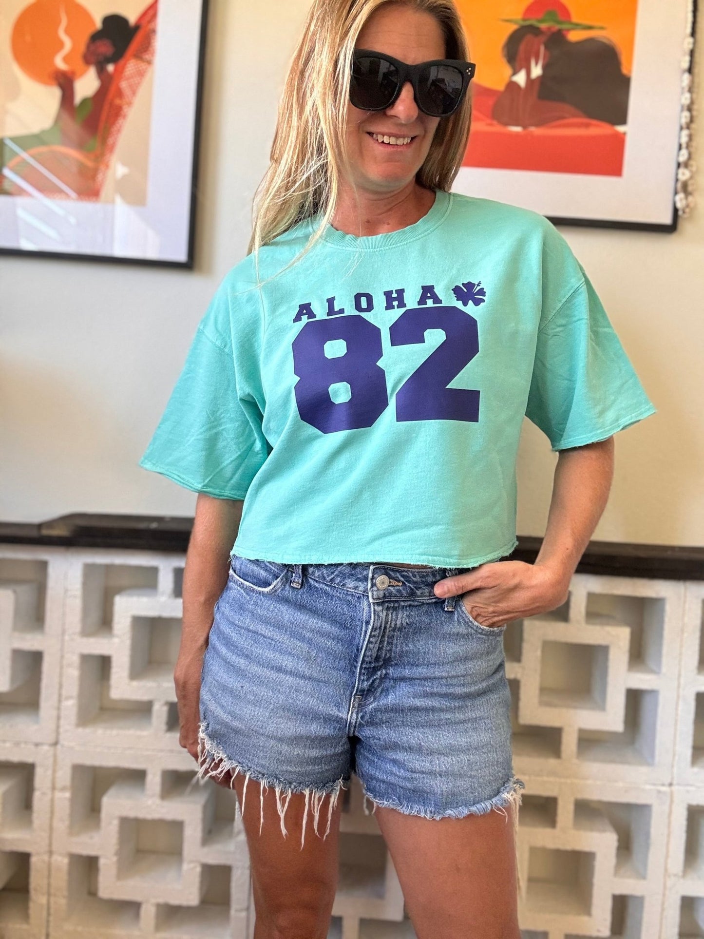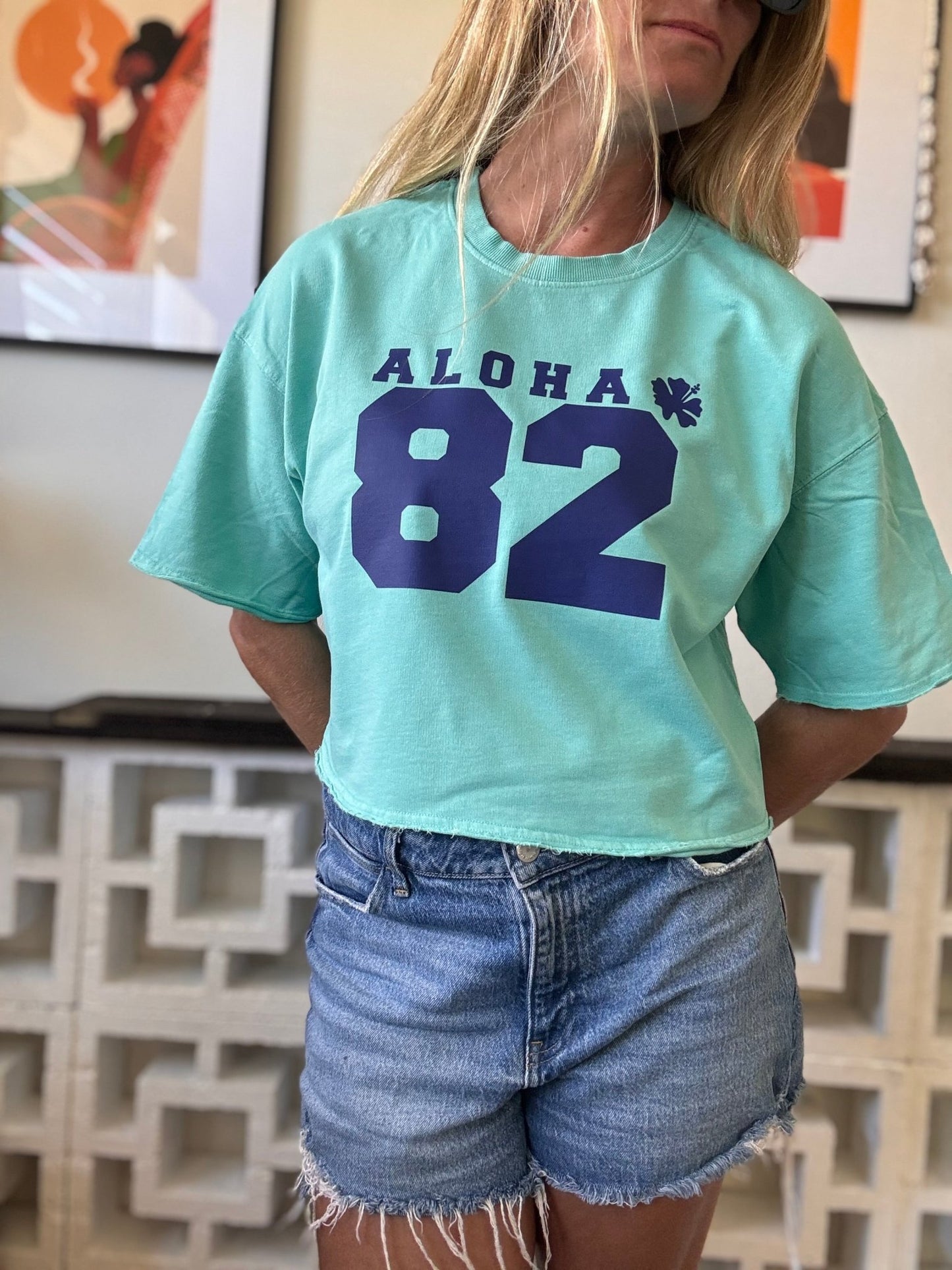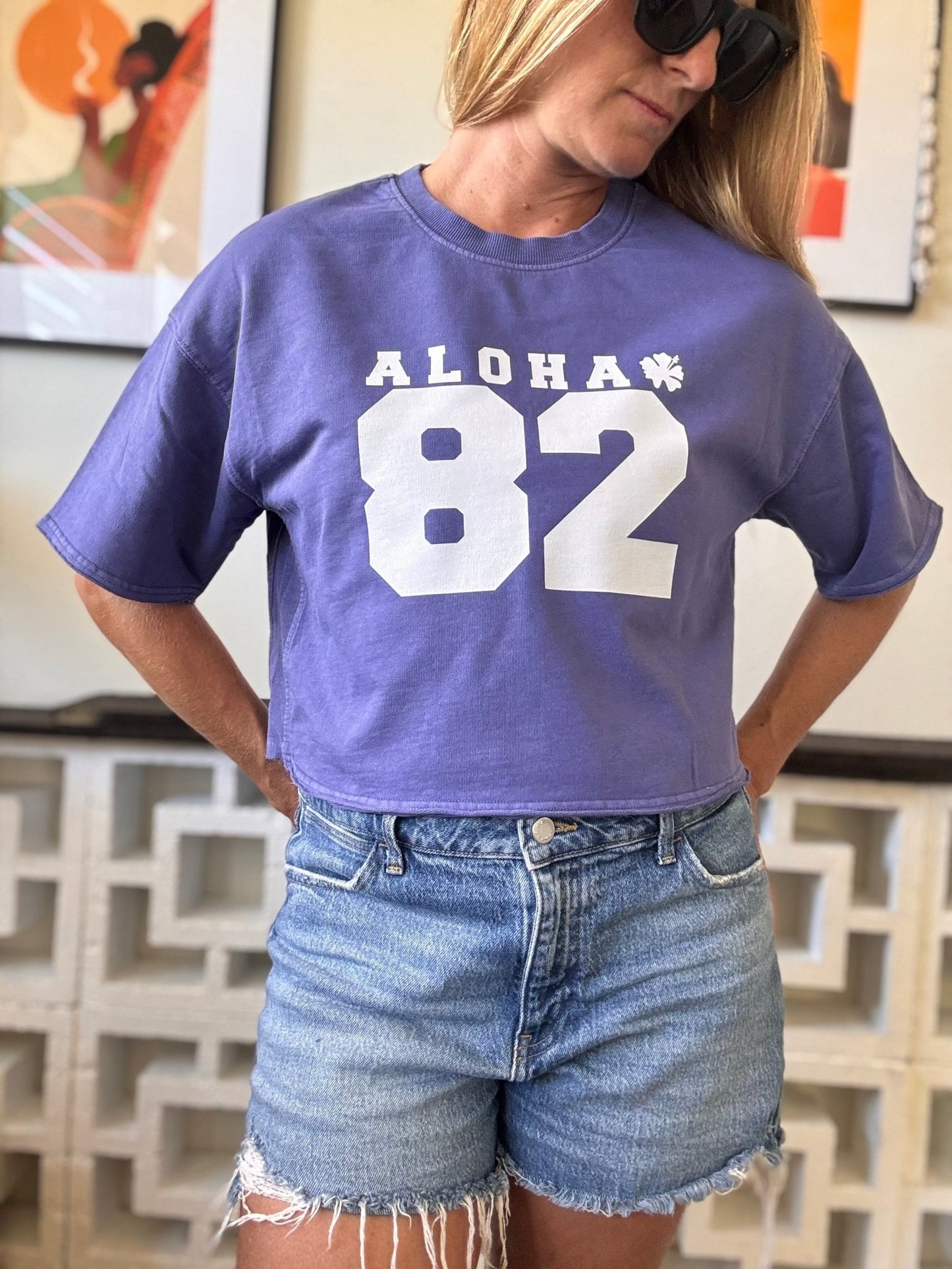 Stay cool and comfortable with the Aloha Game Time Cropped Tee. Made from 100% cotton, it features paneled sides for a flattering fit and a soft cut-off jersey feel that’s perfect for any casual outing. Whether you're cheering on your favorite team or just soaking up the sun, this playful tee adds a breezy, laid-back vibe to your game day look.