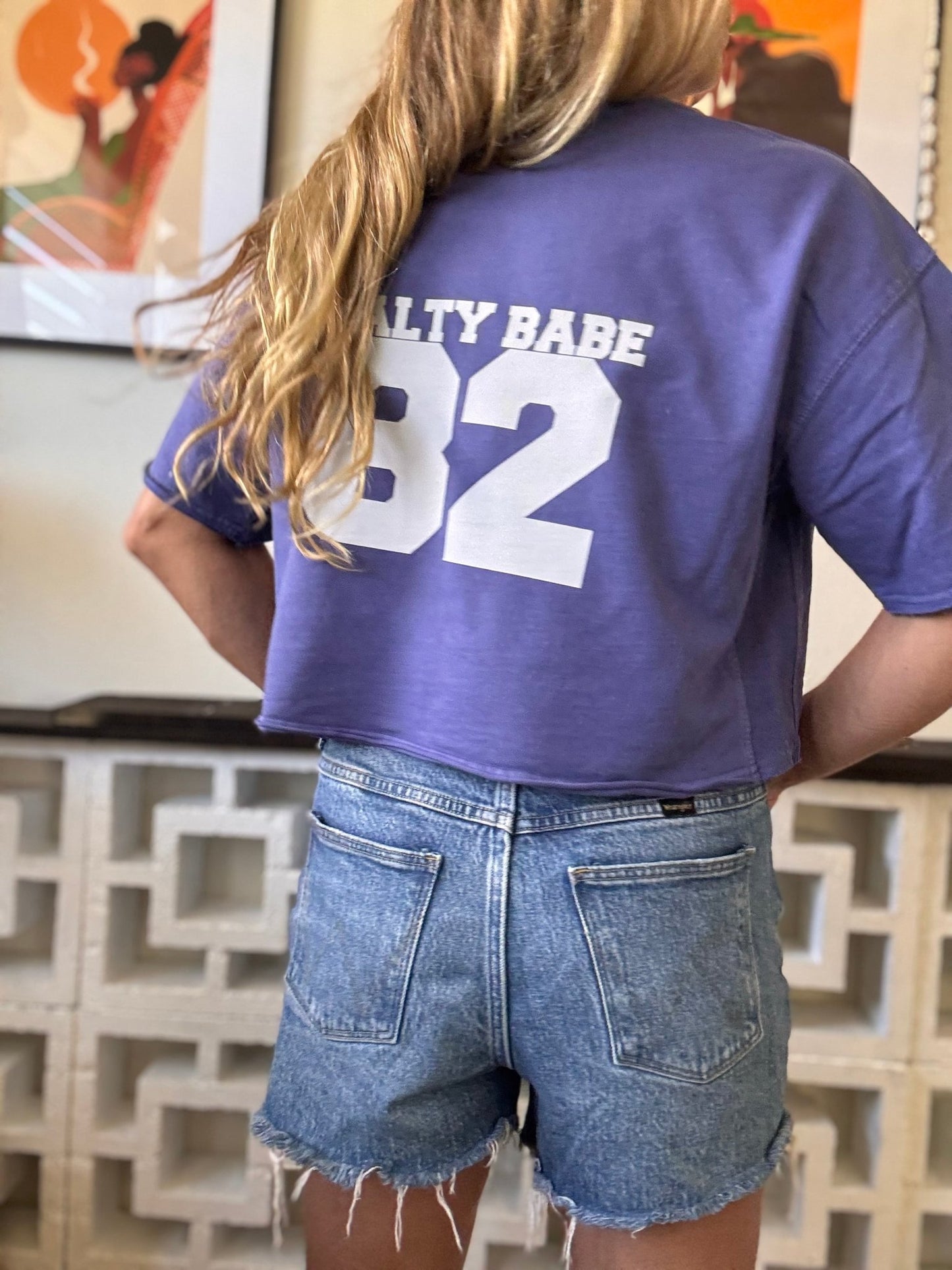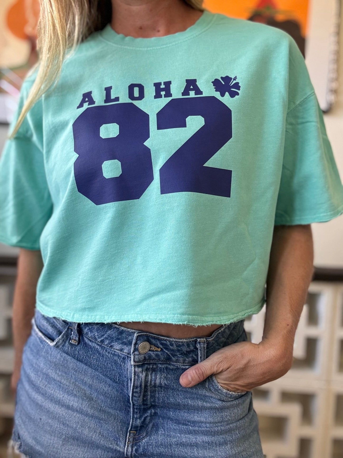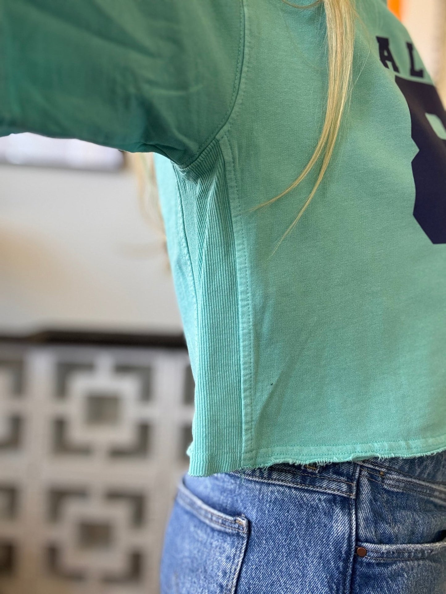 Stay cool and comfortable with the Aloha Game Time Cropped Tee. Made from 100% cotton, it features paneled sides for a flattering fit and a soft cut-off jersey feel that’s perfect for any casual outing. Whether you're cheering on your favorite team or just soaking up the sun, this playful tee adds a breezy, laid-back vibe to your game day look.
