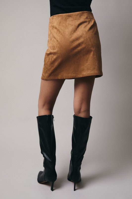 Step into the sun with the Desert Bloom Mini Skirt, where soft suede texture meets a flirty, carefree vibe. This tan skirt adds a playful pop to any look, perfect for dancing through your day or night.
