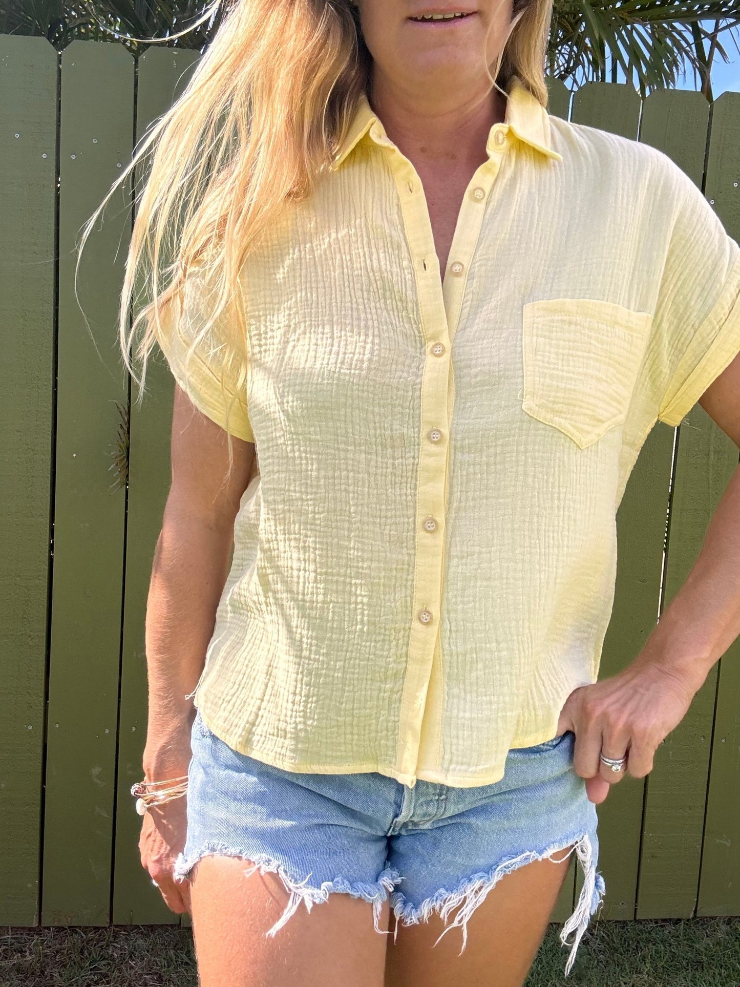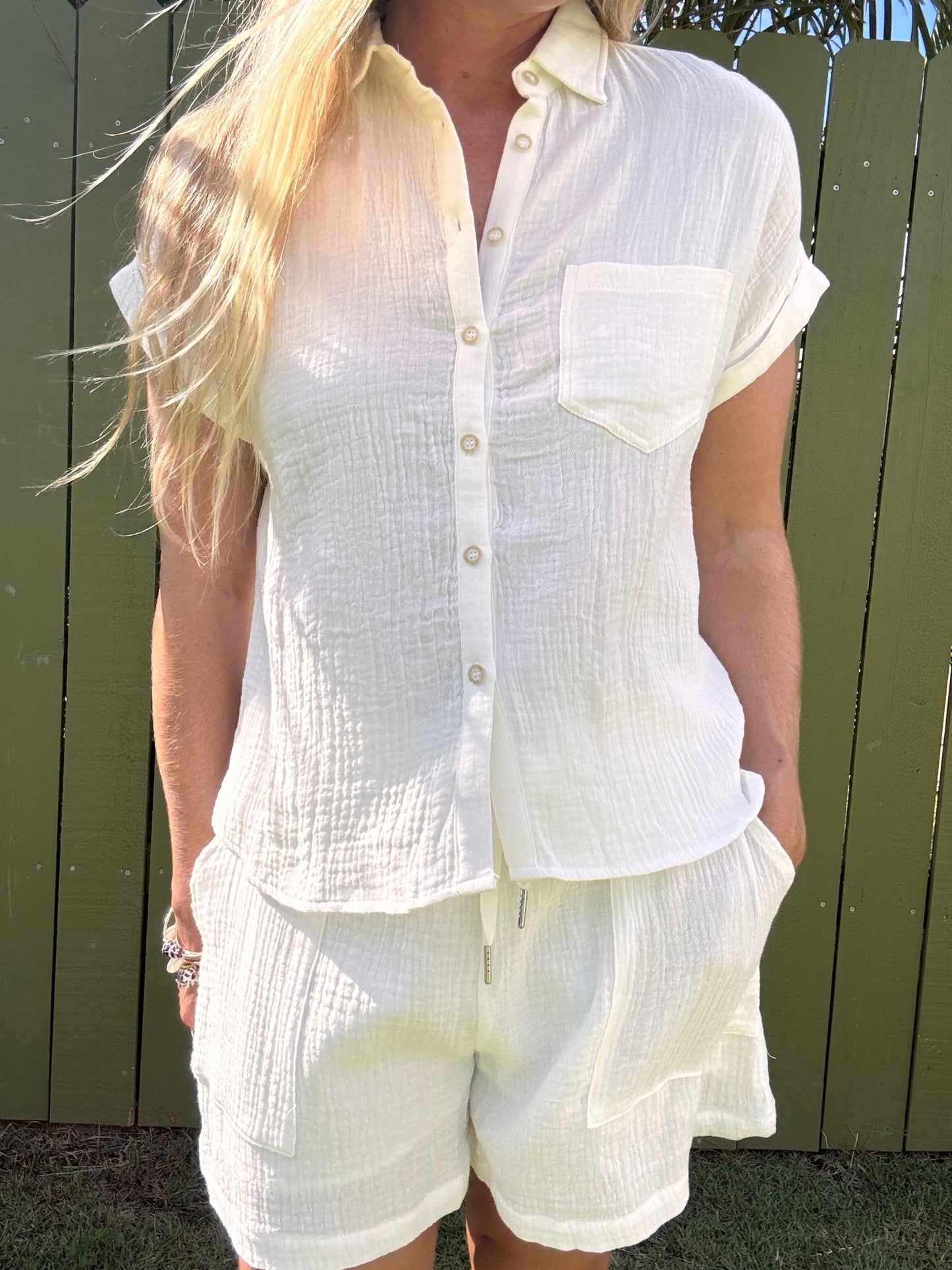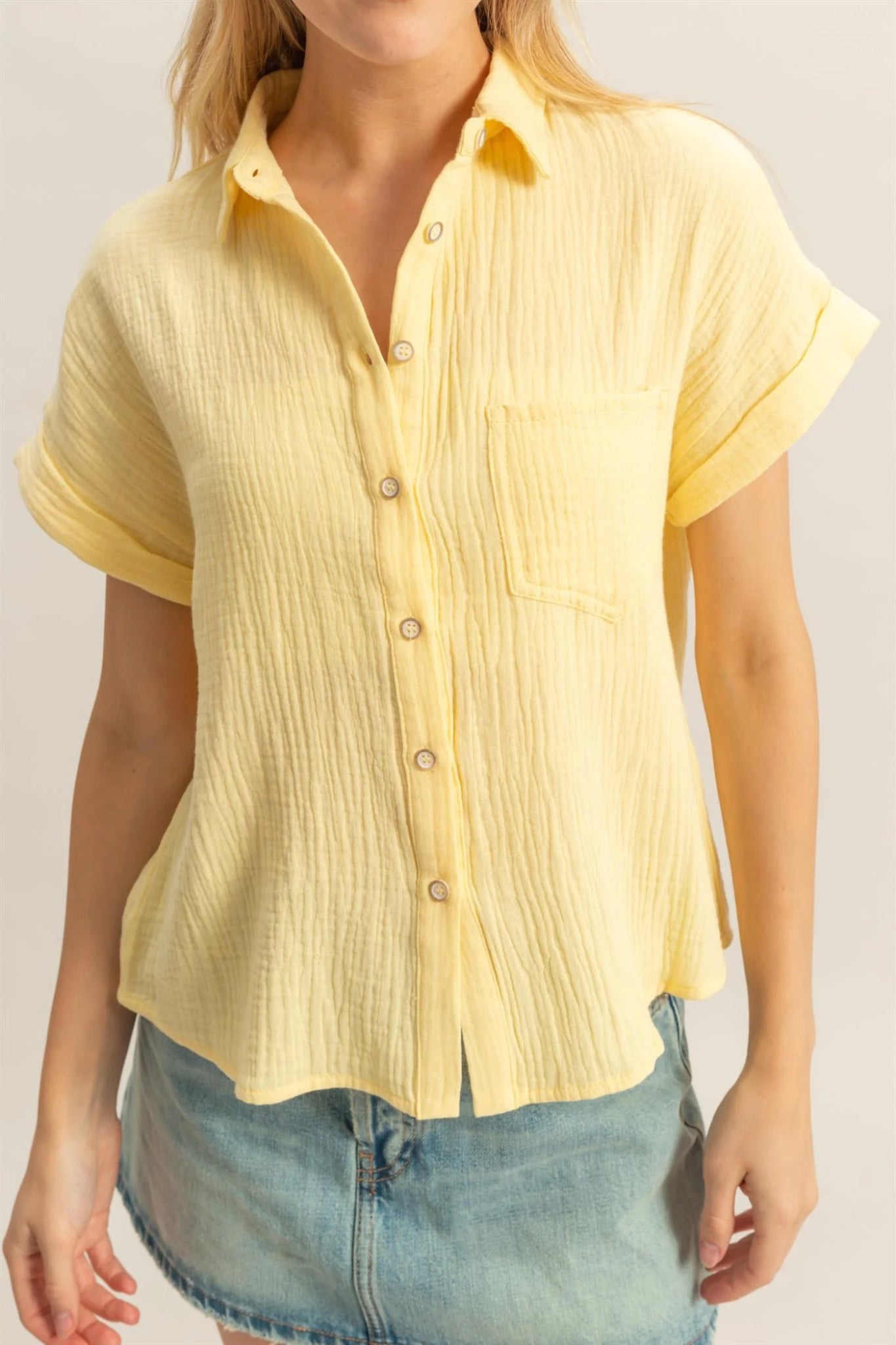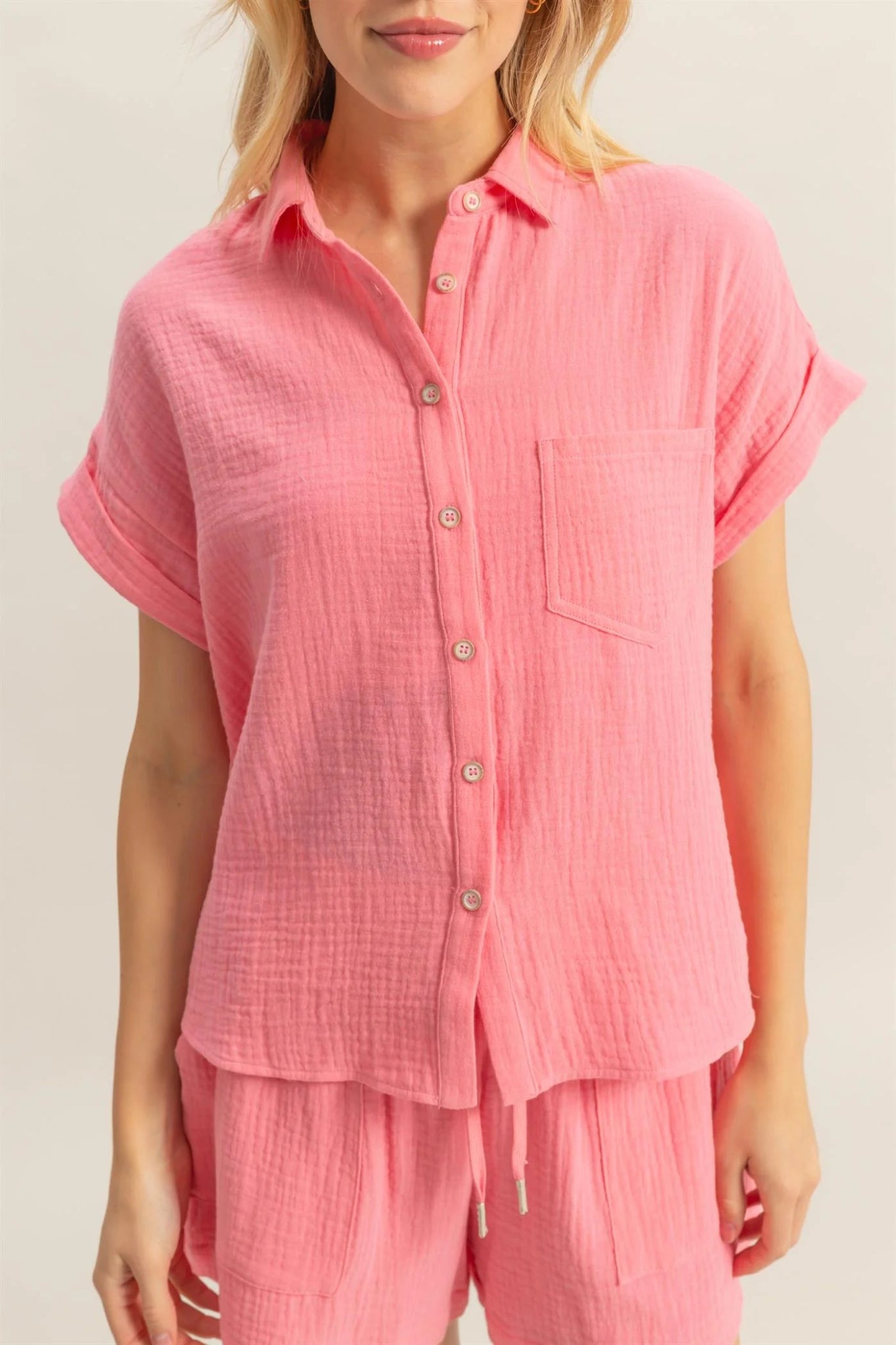Upgrade your wardrobe with our Double Down Gauze Button Shirt! Made from high-quality double gauze fabric, this versatile shirt boasts a classic collared neckline, short sleeves, and a button-front placket. Its tailored fit and convenient chest pocket make it the perfect staple piece for any occasion.