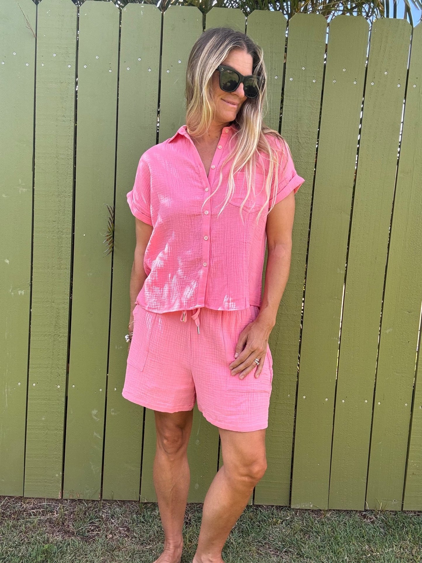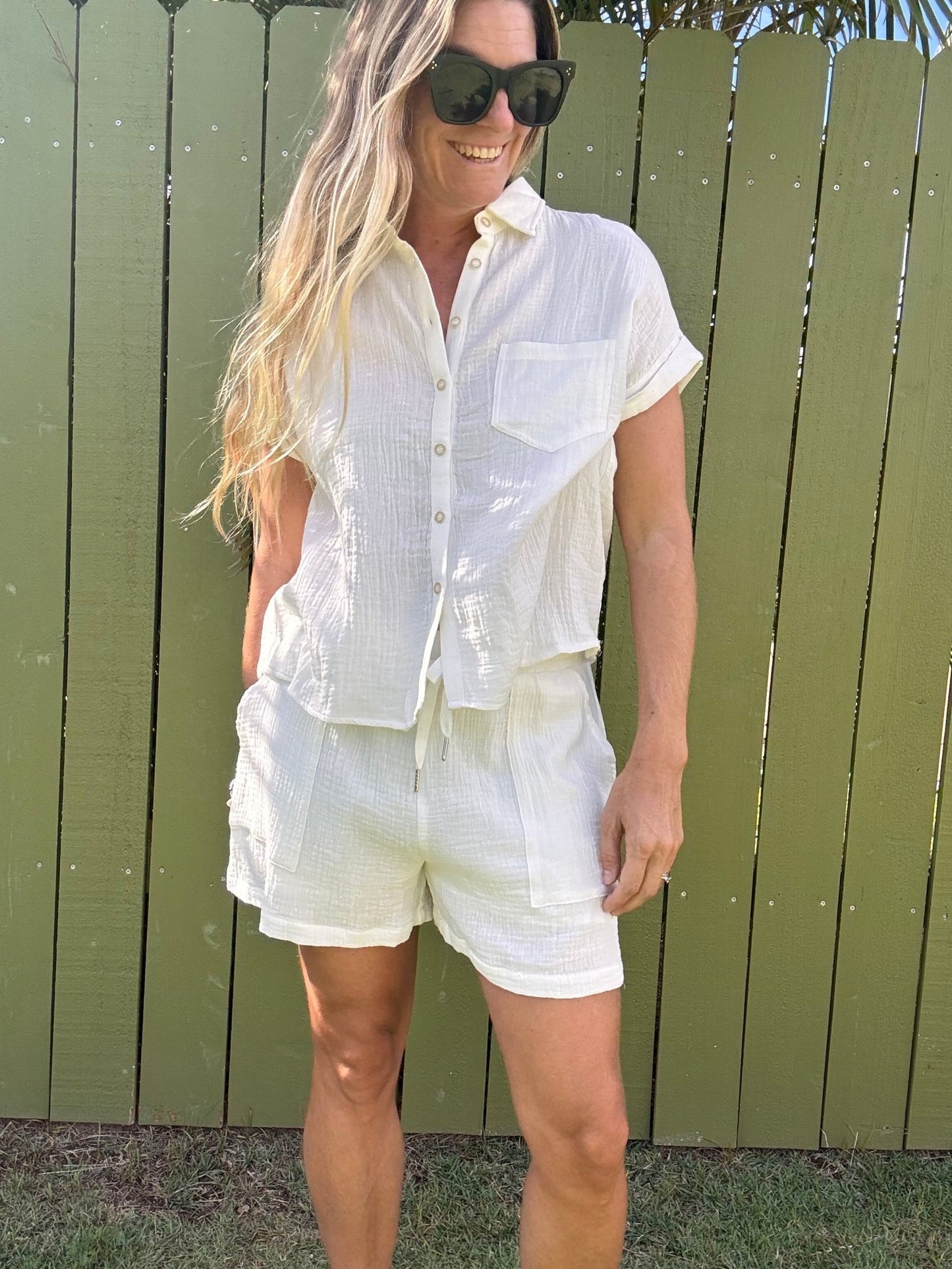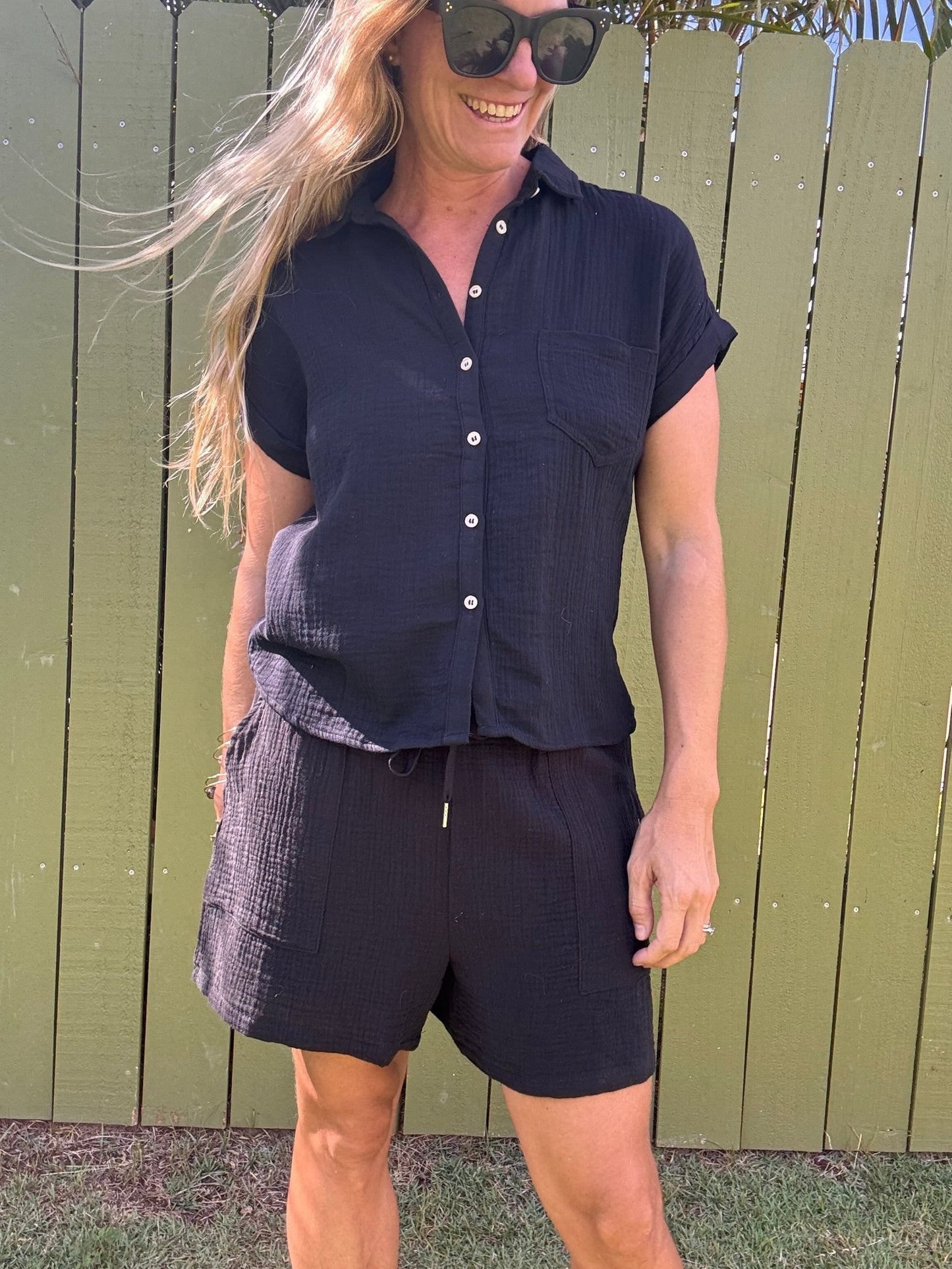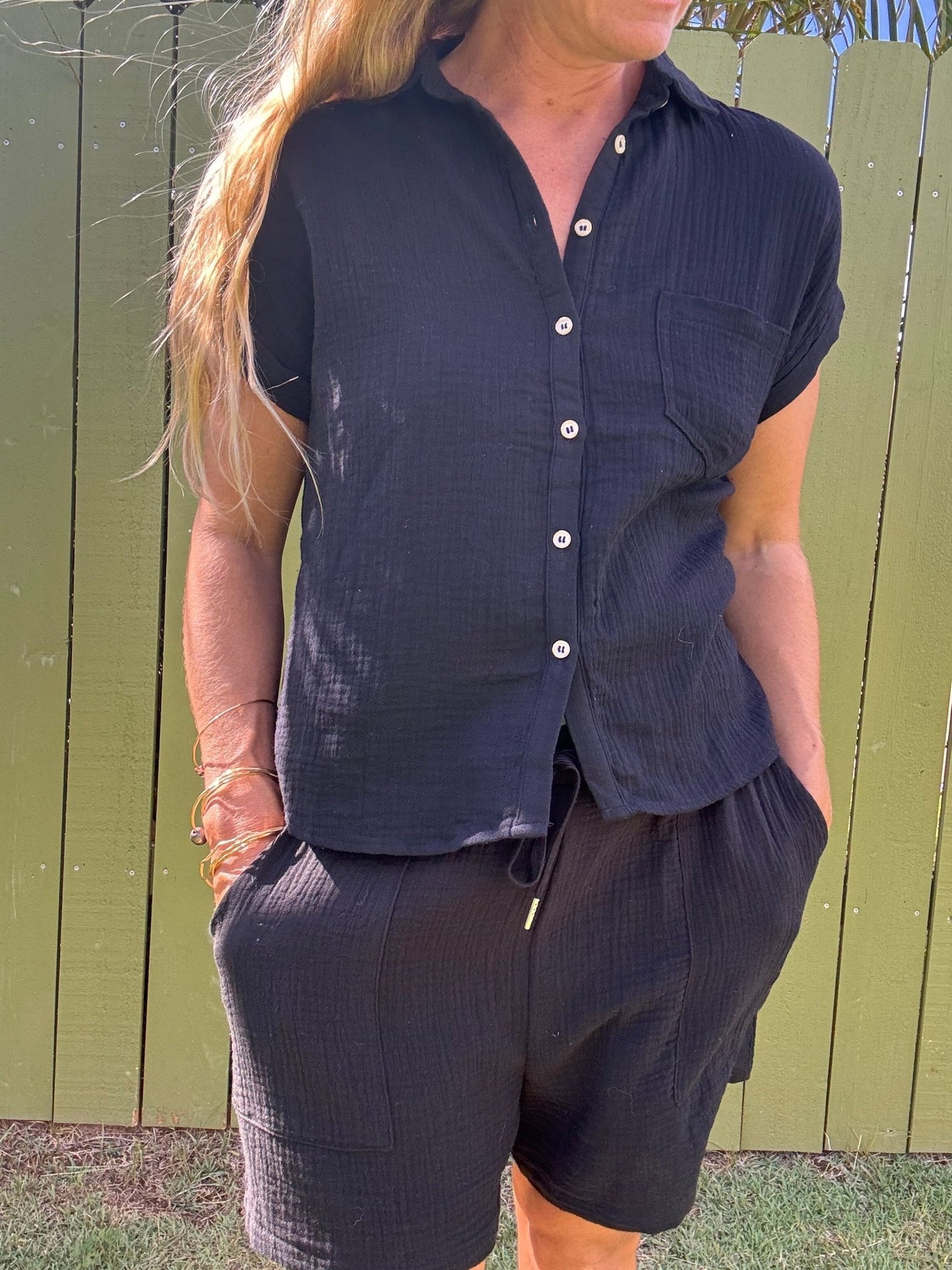 Upgrade your wardrobe with our Double Down Gauze Button Shirt! Made from high-quality double gauze fabric, this versatile shirt boasts a classic collared neckline, short sleeves, and a button-front placket. Its tailored fit and convenient chest pocket make it the perfect staple piece for any occasion.