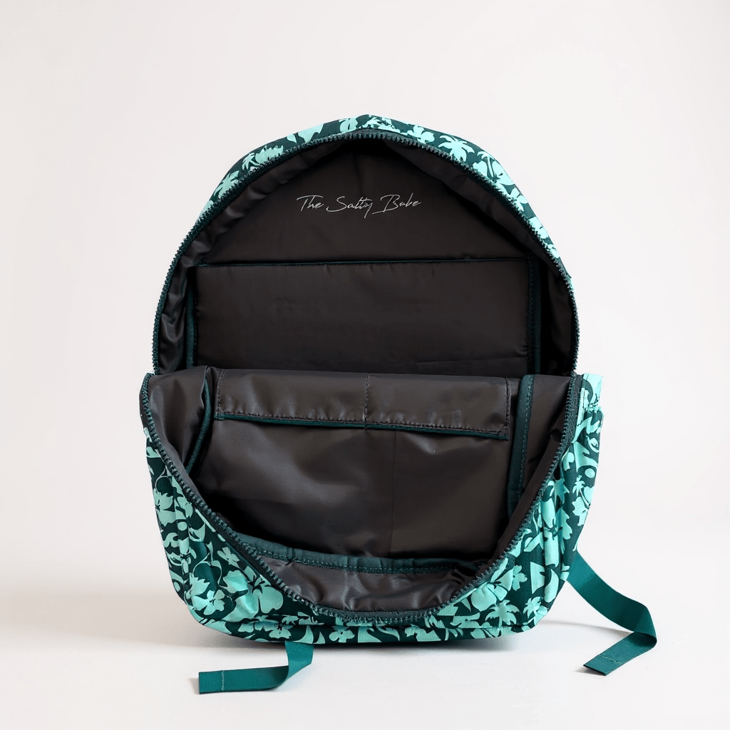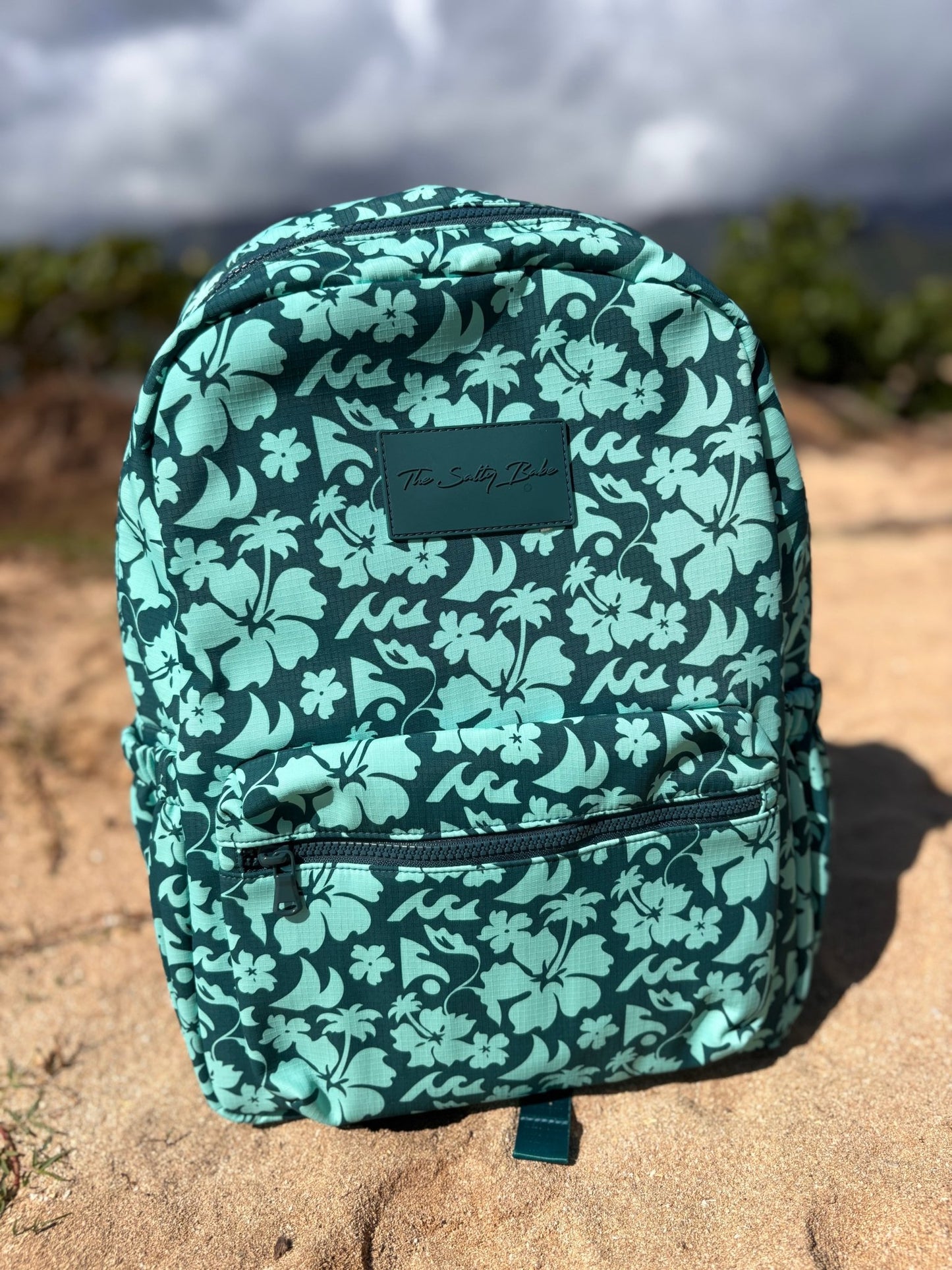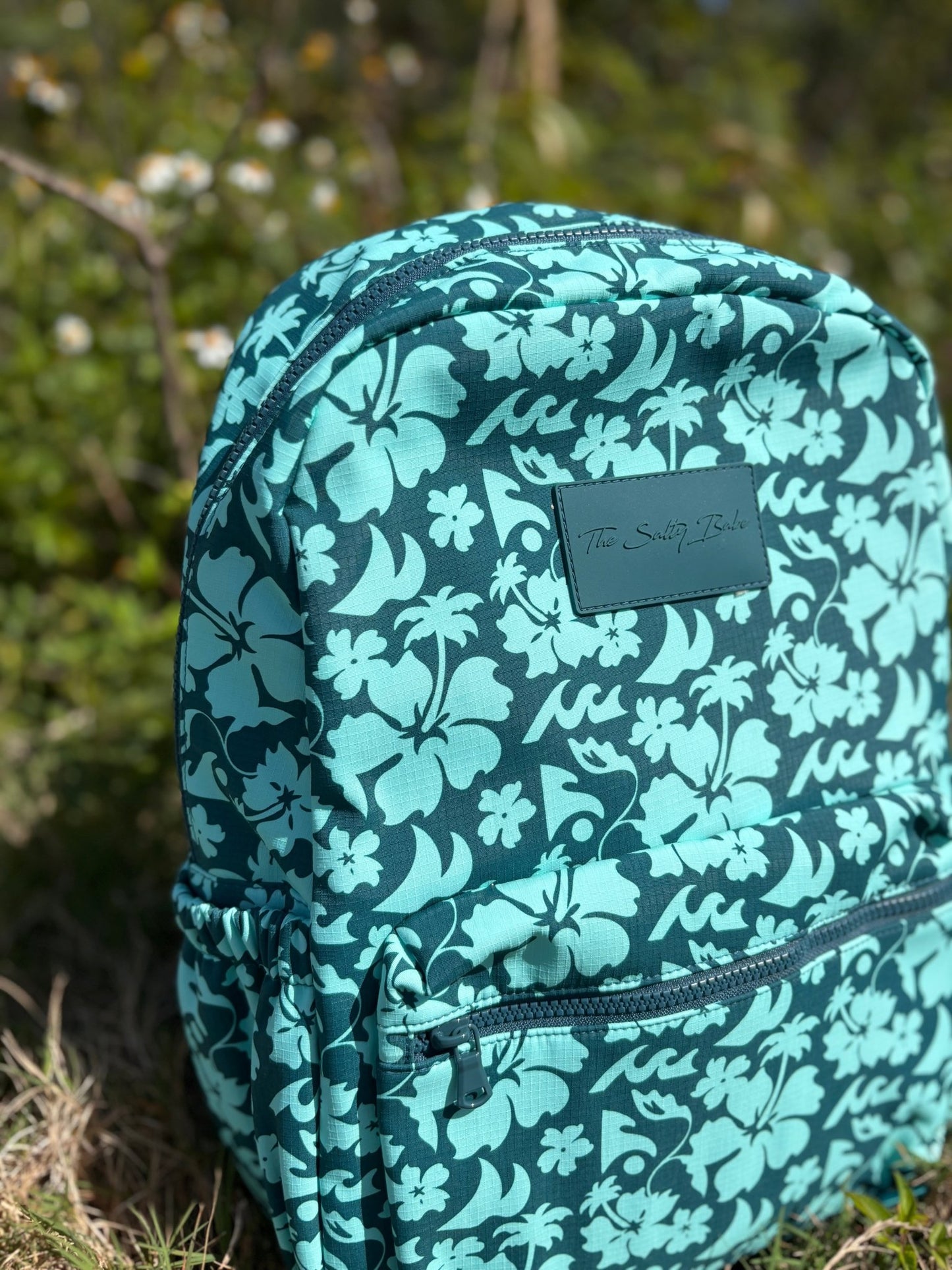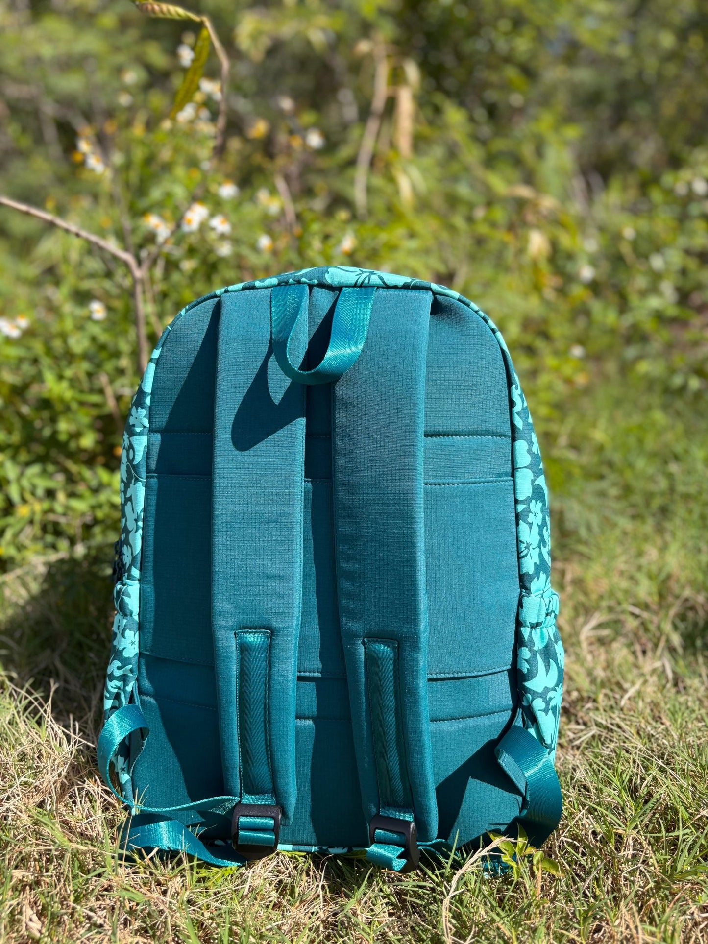 The Floral Surfari Teal Nylon Backpack is a fun, water-resistant backpack designed for people on the go. Its large size and adjustable straps make it perfect for carrying books, snacks, and gadgets with ease and style.