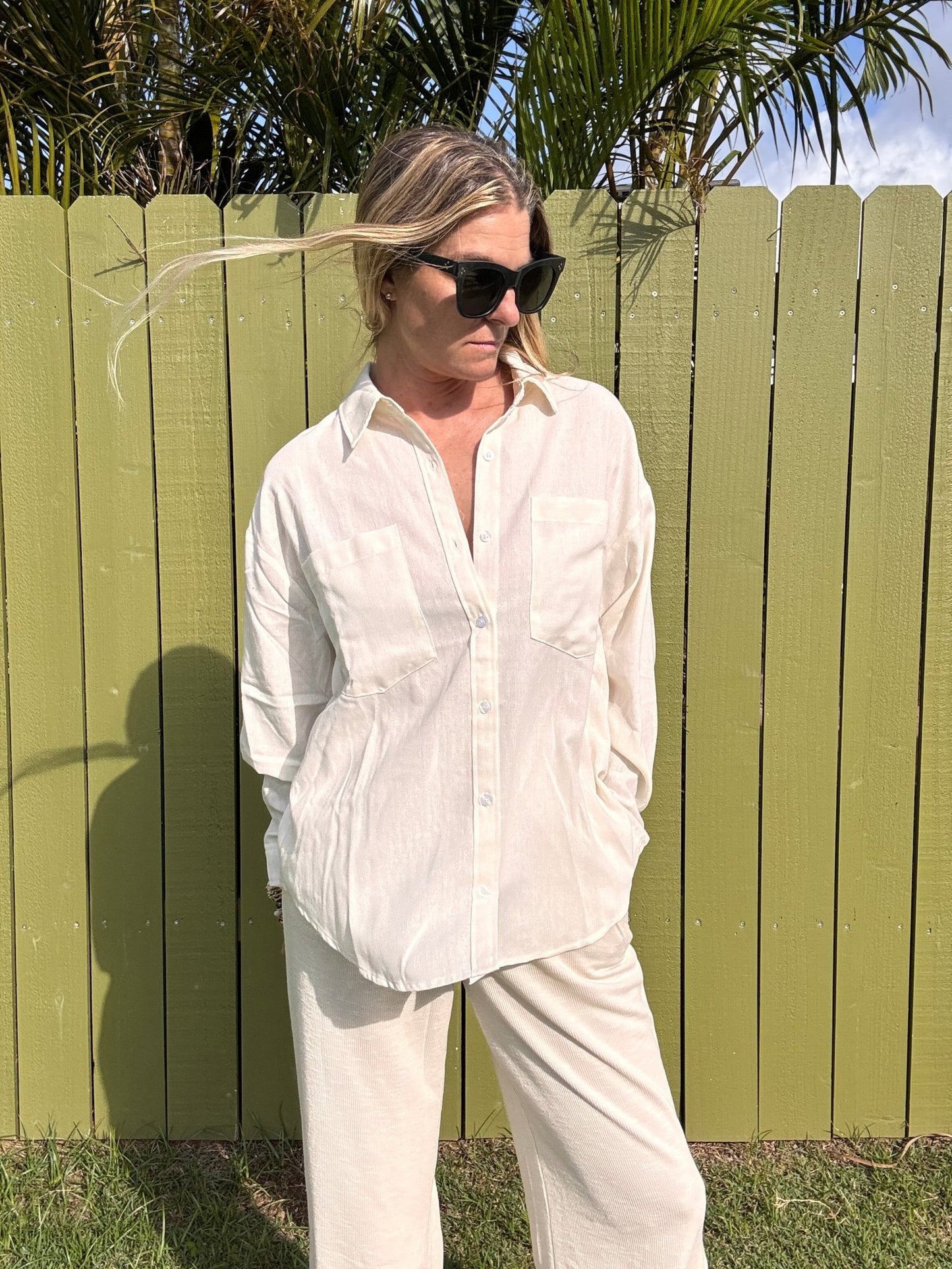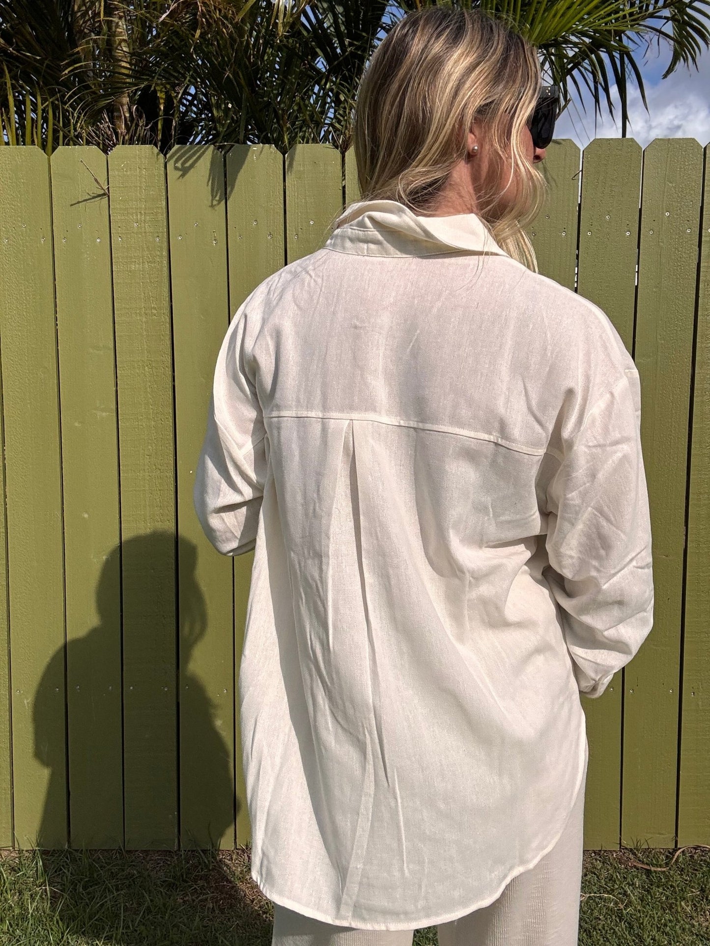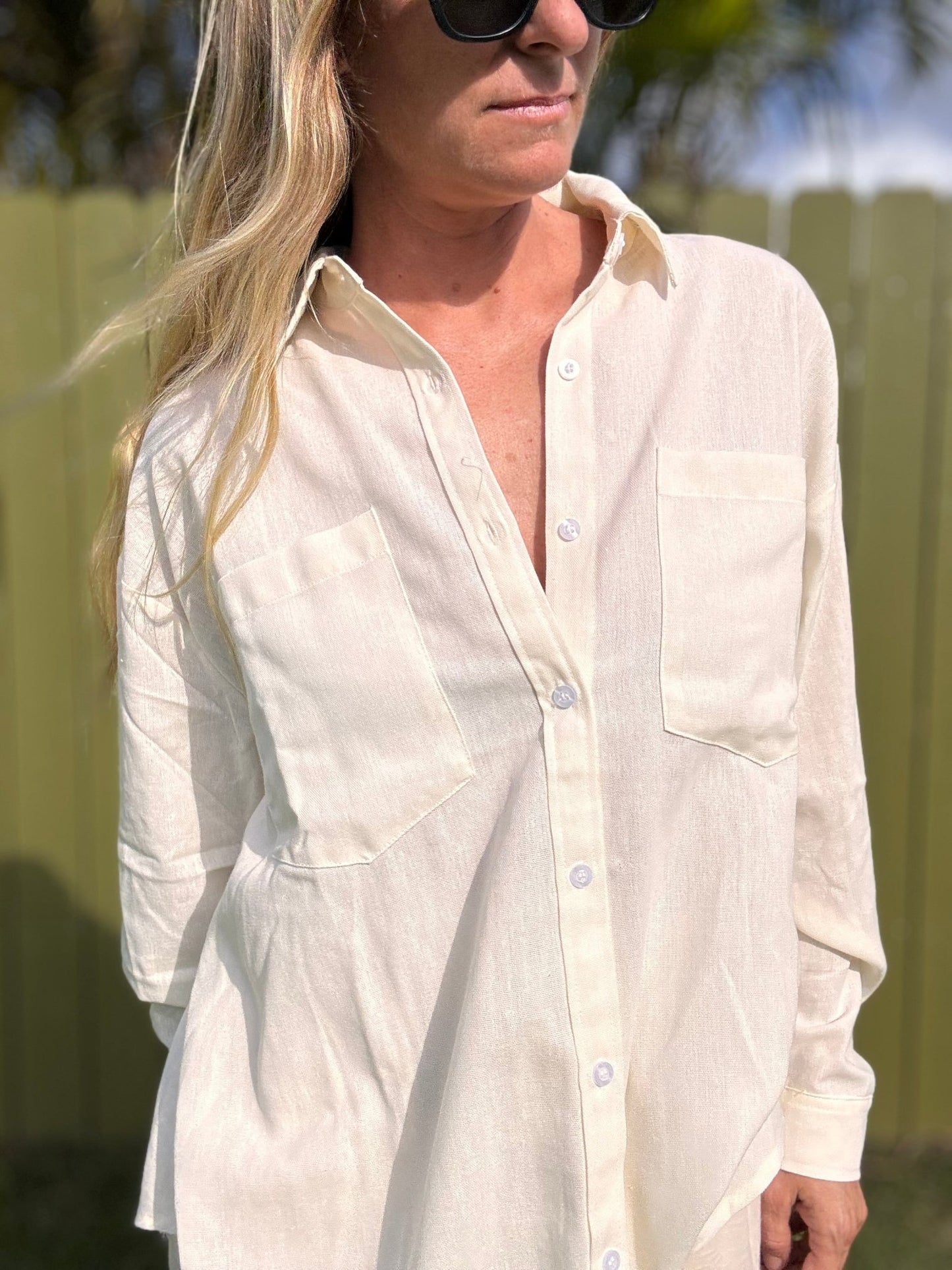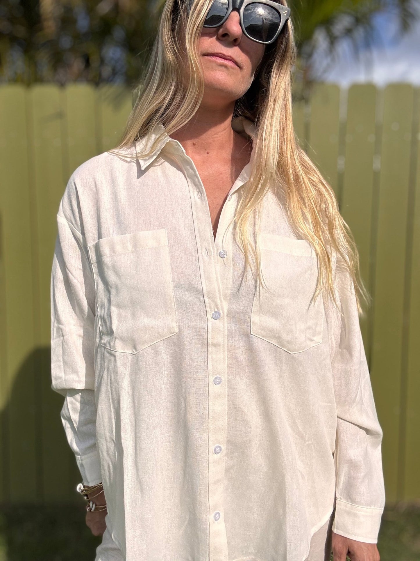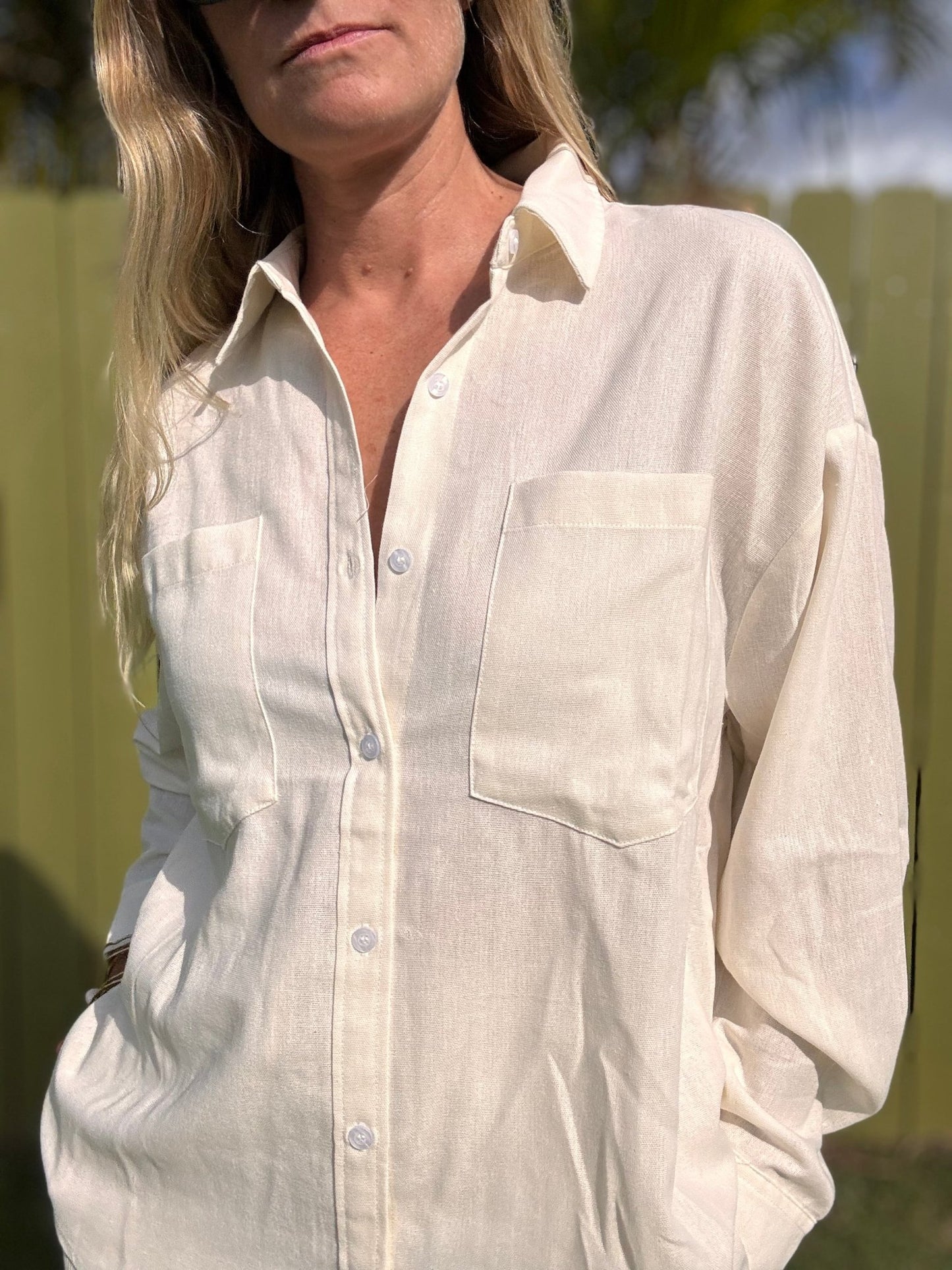 Upgrade your look with this chic Haven Sand Washed Relaxed Long Sleeve Shirt. Made from a cotton linen blend, this shirt features a sand washed fabric, turn-down collar, long sleeves, and front button-up design. The oversized silhouette adds a perfect finishing touch.