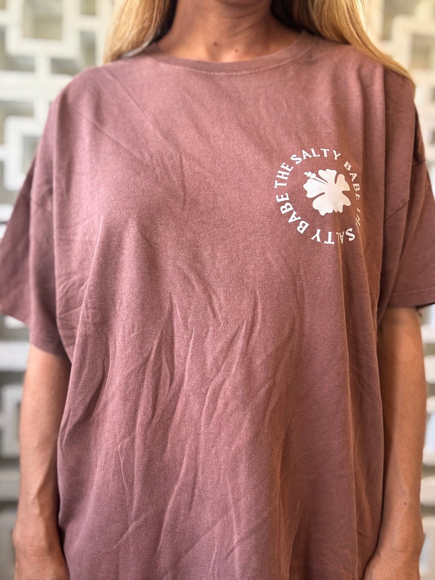 Embrace your inner beach babe with this oversized cotton tee that's as laid-back as island life. The front features a vibrant hibiscus print that brings tropical vibes, while the back showcases the cheeky "Ocean Made Me Salty" graphic—because let's be real, the salt life chose you. Crafted from soft, breathable cotton in a relaxed fit, it's perfect for casual days, beach trips, or whenever you need to channel that carefree coastal energy. Comfort meets personality in every wear.