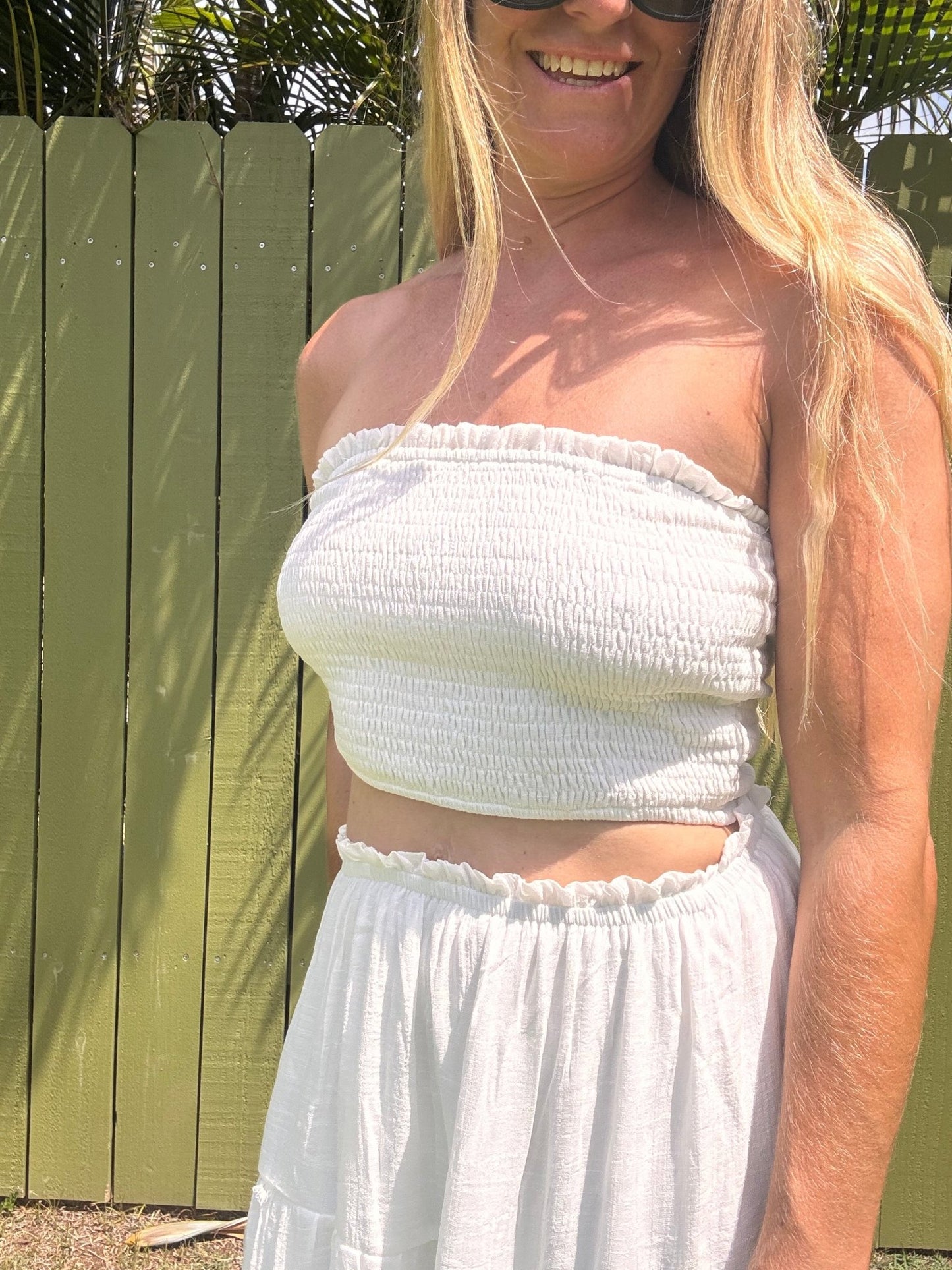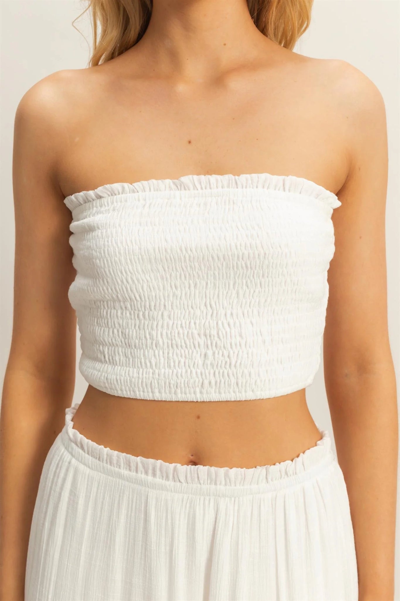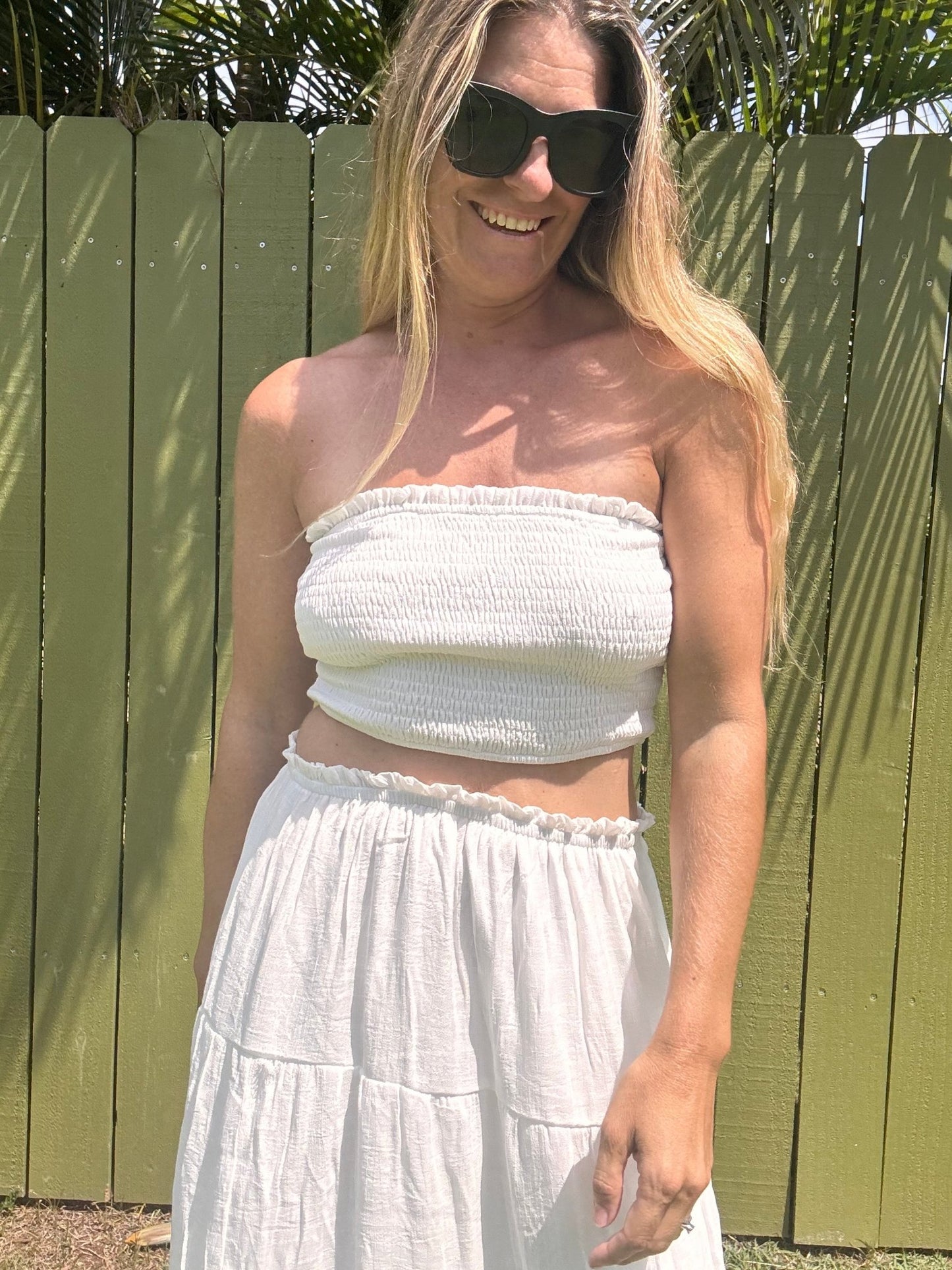 Catch some waves and flaunt your beach style with our Salt & Sun Tube Top. This strapless top features a smocked bodice for a flattering fit and playful crop hem. Perfect for a day in the sun, this top is a must-have for your summer wardrobe! Make it the perfect night out outfit with our Salt & Sun Maxi Skirt!