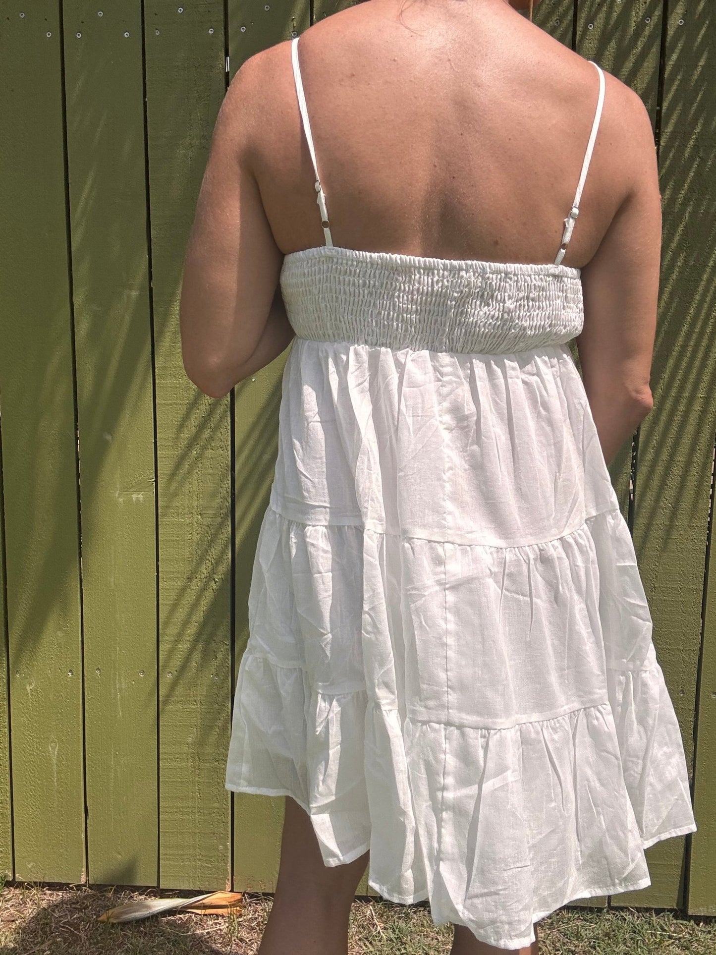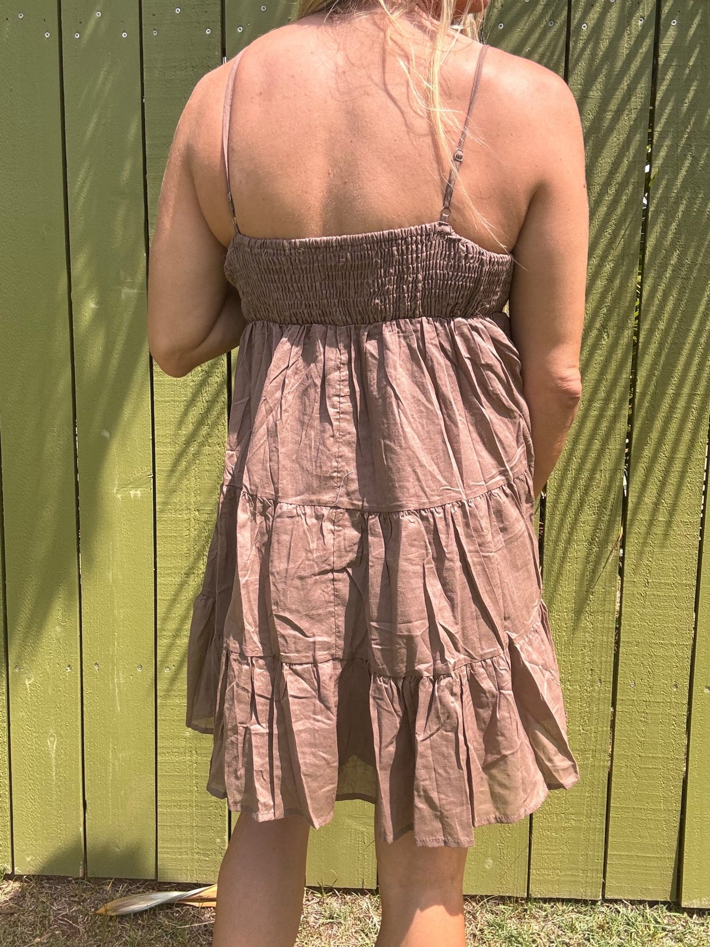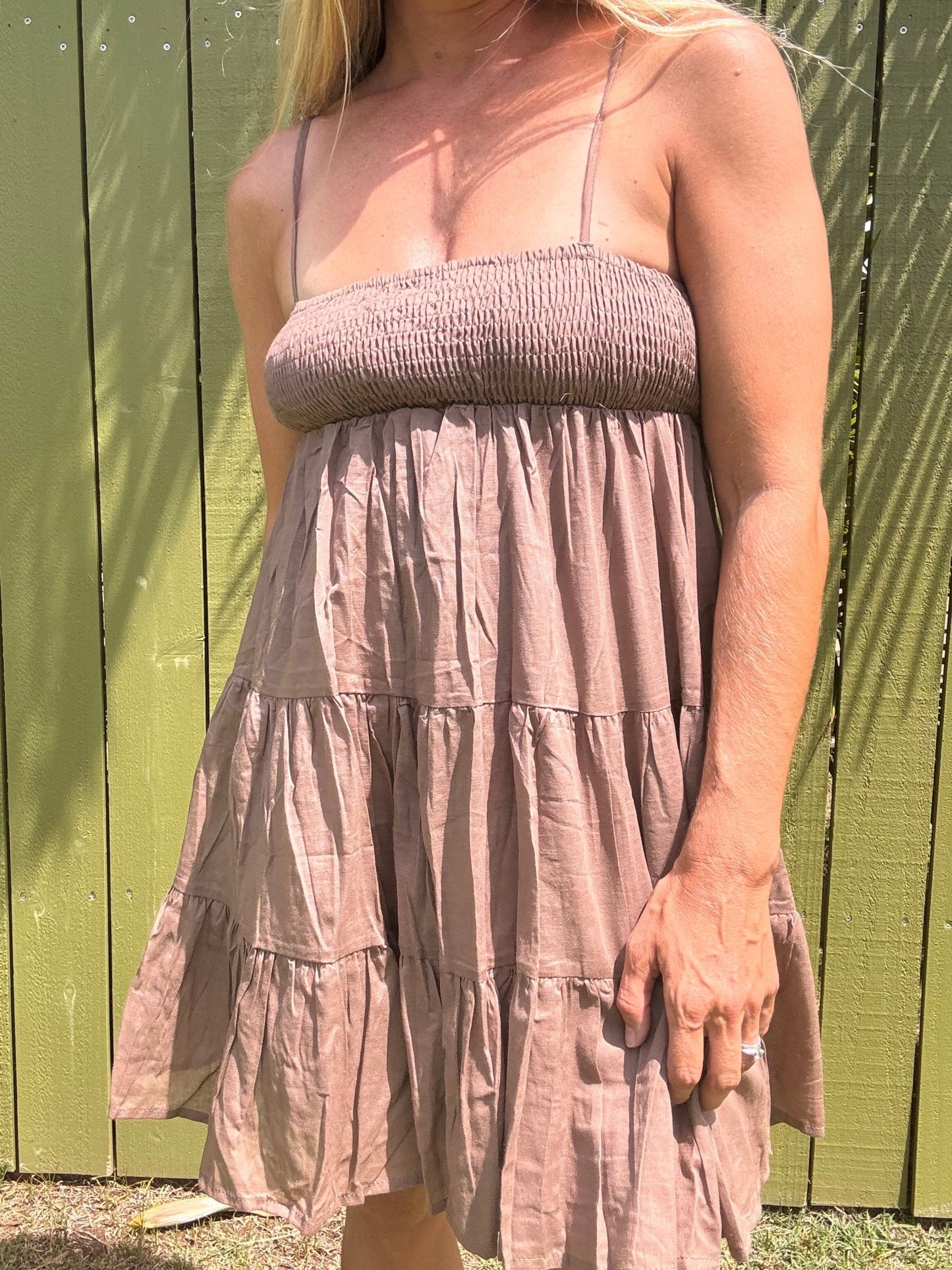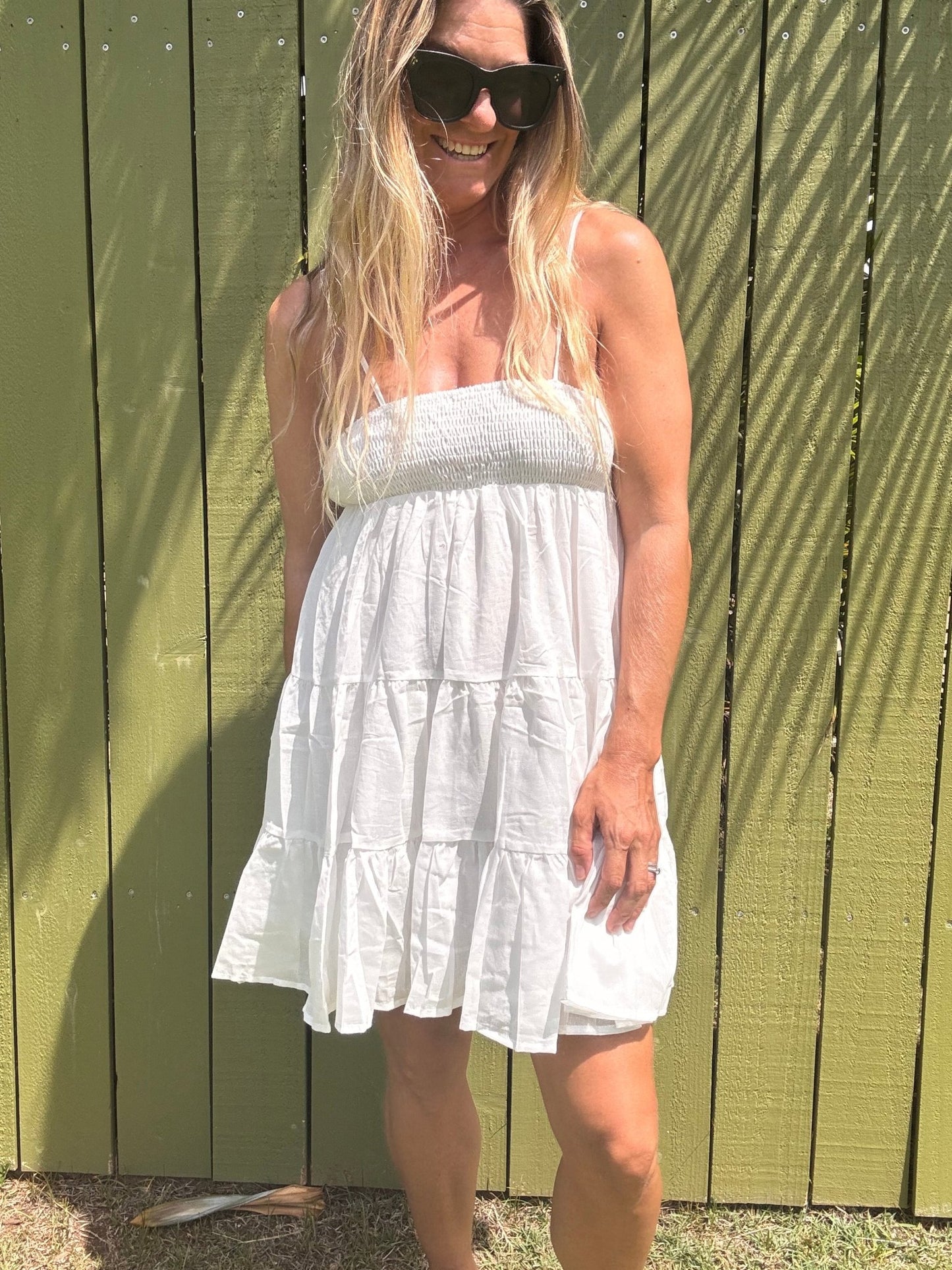 Indulge in this flowy and fun mini dress this summer! Made from lightweight cotton voile, this stunner features dainty shoulder straps and a smocked bust for a flattering fit. The tiered skirt adds a playful touch to this must-have dress. Don't miss out on this treat for yourself!