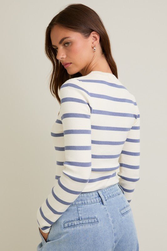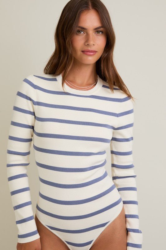 The Stripe Me In Bodysuit combines creamy softness with dusty blue stripes for a fresh, playful look that’s perfect for any casual day. Its snug fit and breathable fabric keep you comfy while turning heads wherever you go.