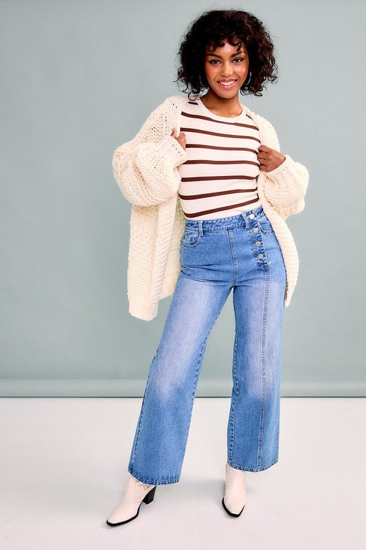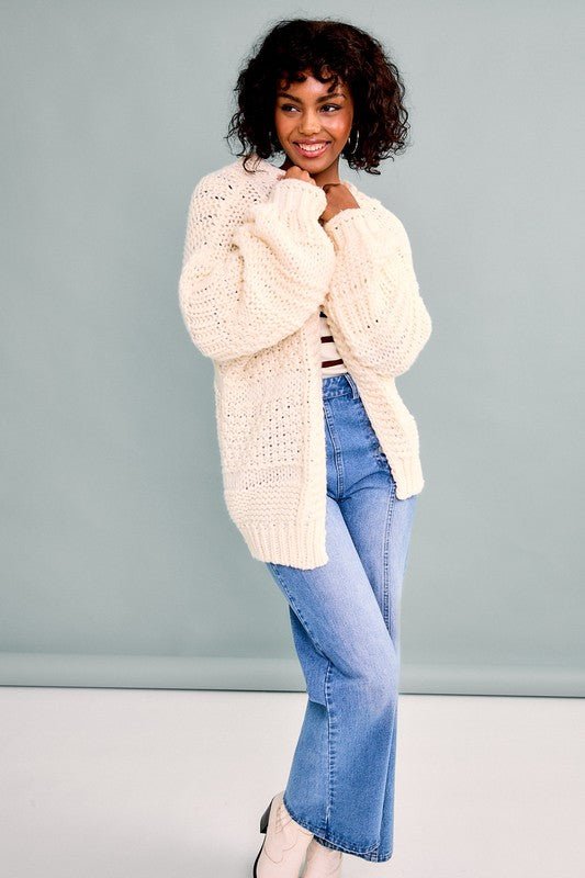 Wrap yourself in cozy vibes with the Sunday Knit Cardigan, perfect for lounging or stepping out in style. Its soft 100% polyester fabric keeps you comfy while adding a fun touch to any outfit.