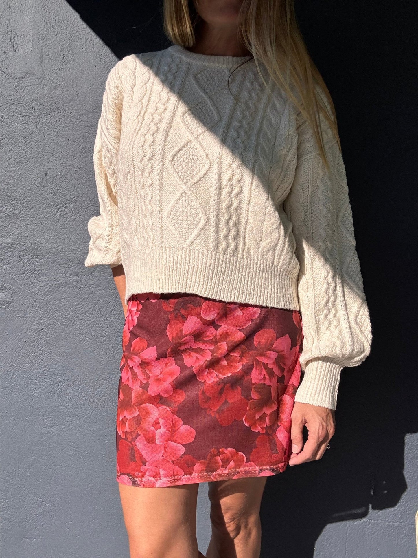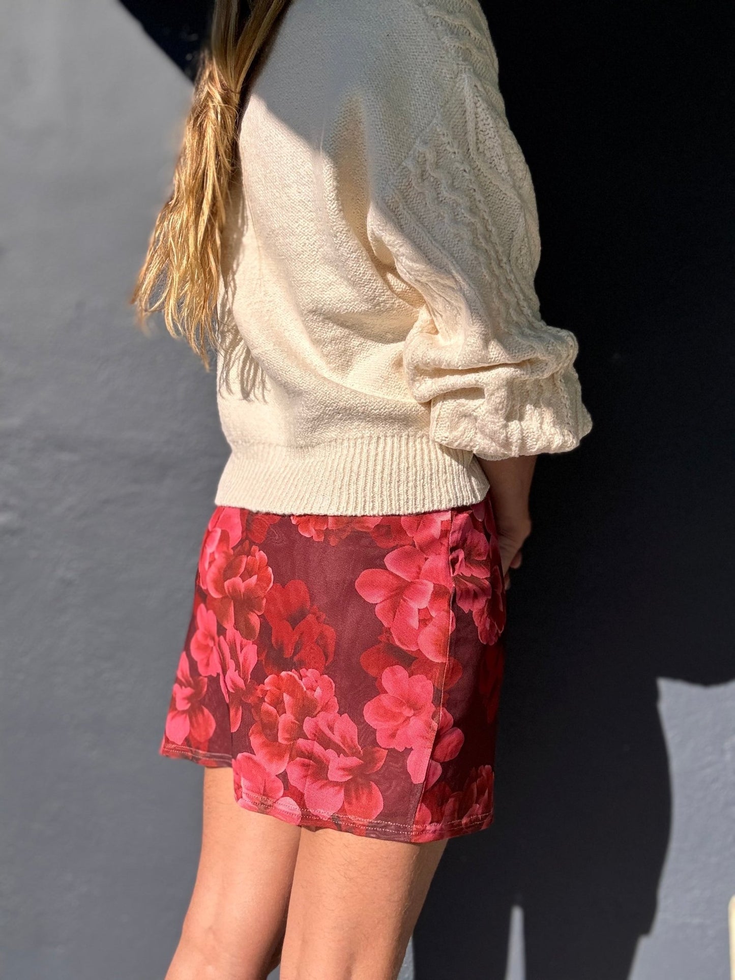 Bring a burst of garden charm to your look with the Wild Rouge Mini Skirt, featuring a playful floral print on sheer mesh fabric. Its elasticized waistband ensures comfort, while the full lining keeps you feeling confident and carefree.