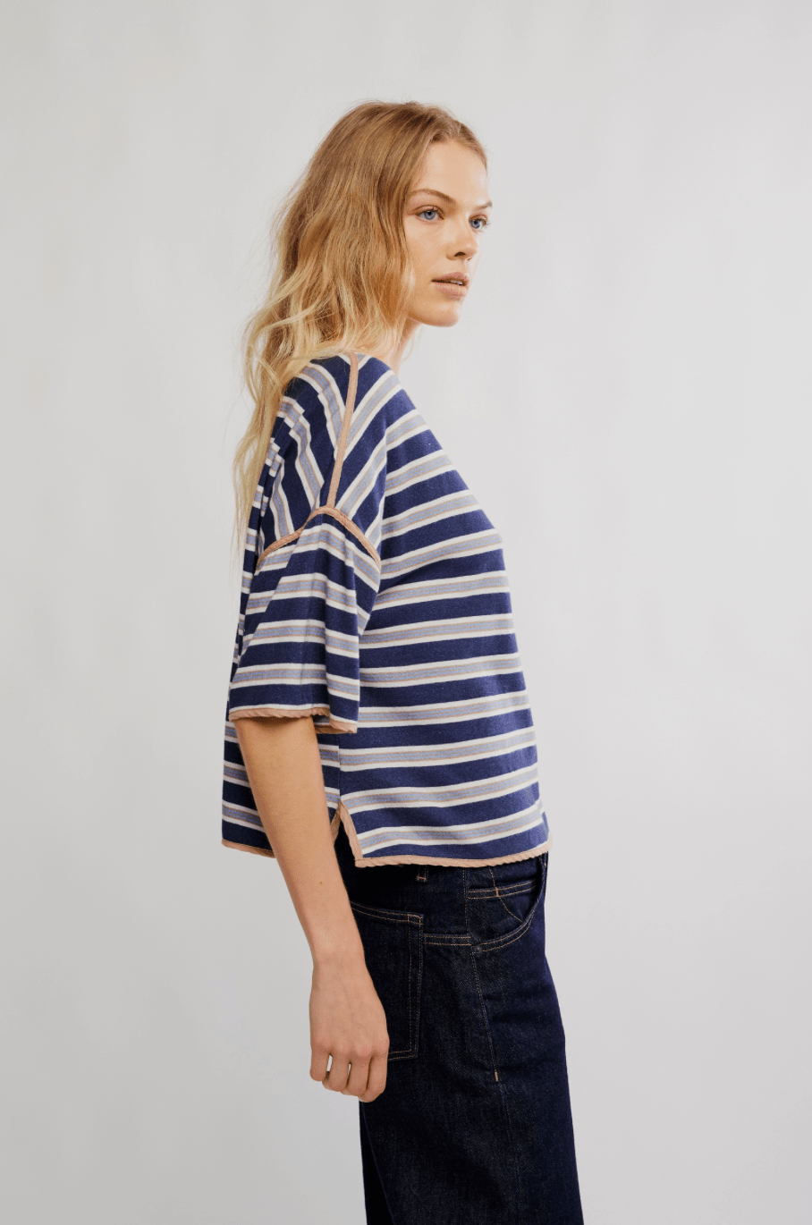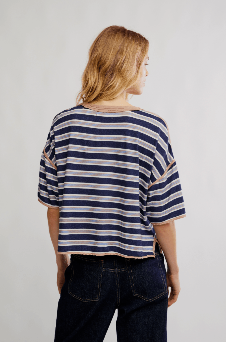 FREE PEOPLE Clean Rugby Tee - Navy Combo