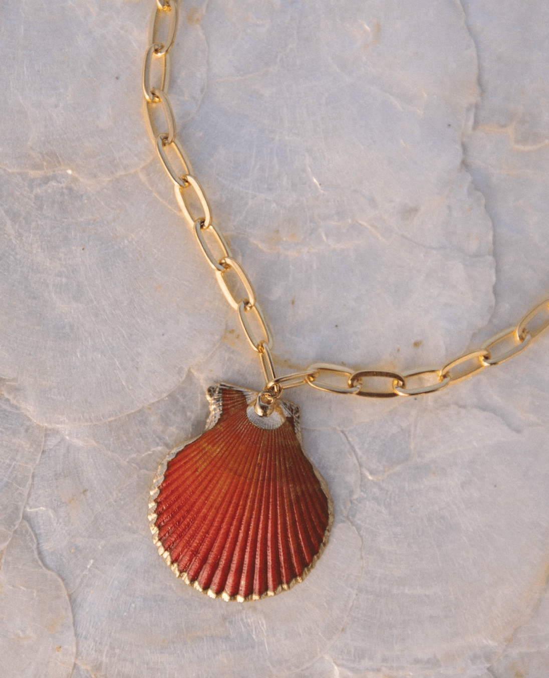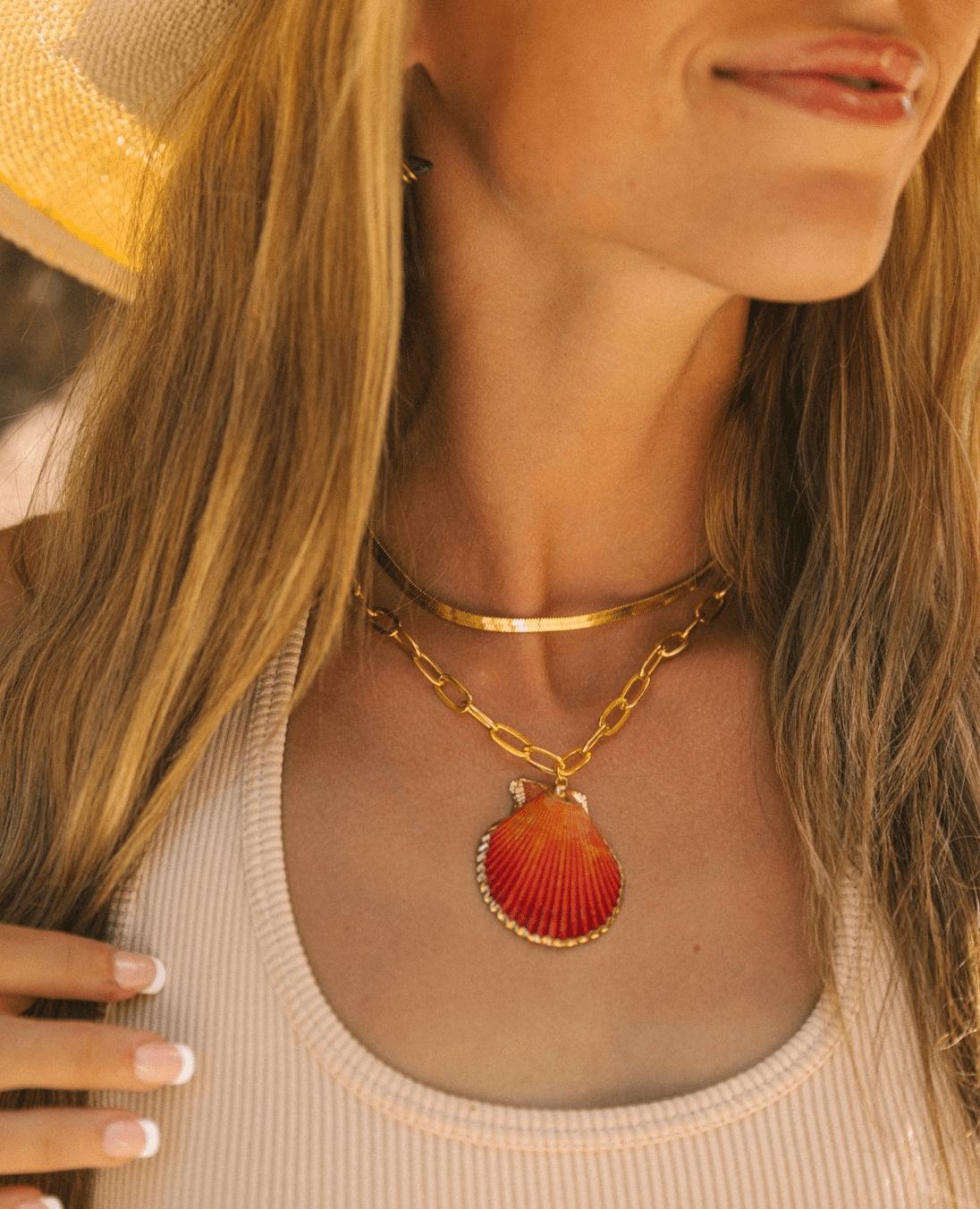 This 24k gold plated Scallop Shell Chain is sure to elevate your beachy attire. If you want a necklace that is both trendy and a conversation starter, this is the one! 100% Tarnish free (just rinse with freshwater after the beach!) and ready for all of your mermaid activities! 18 inches
