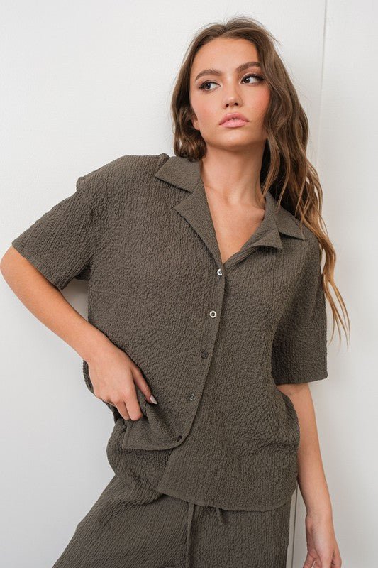 Regular price $28.00 USDThe Ash Top brings a playful twist to your wardrobe with its trendy oversized fit and eye-catching textured fabric. Perfect for effortless style!