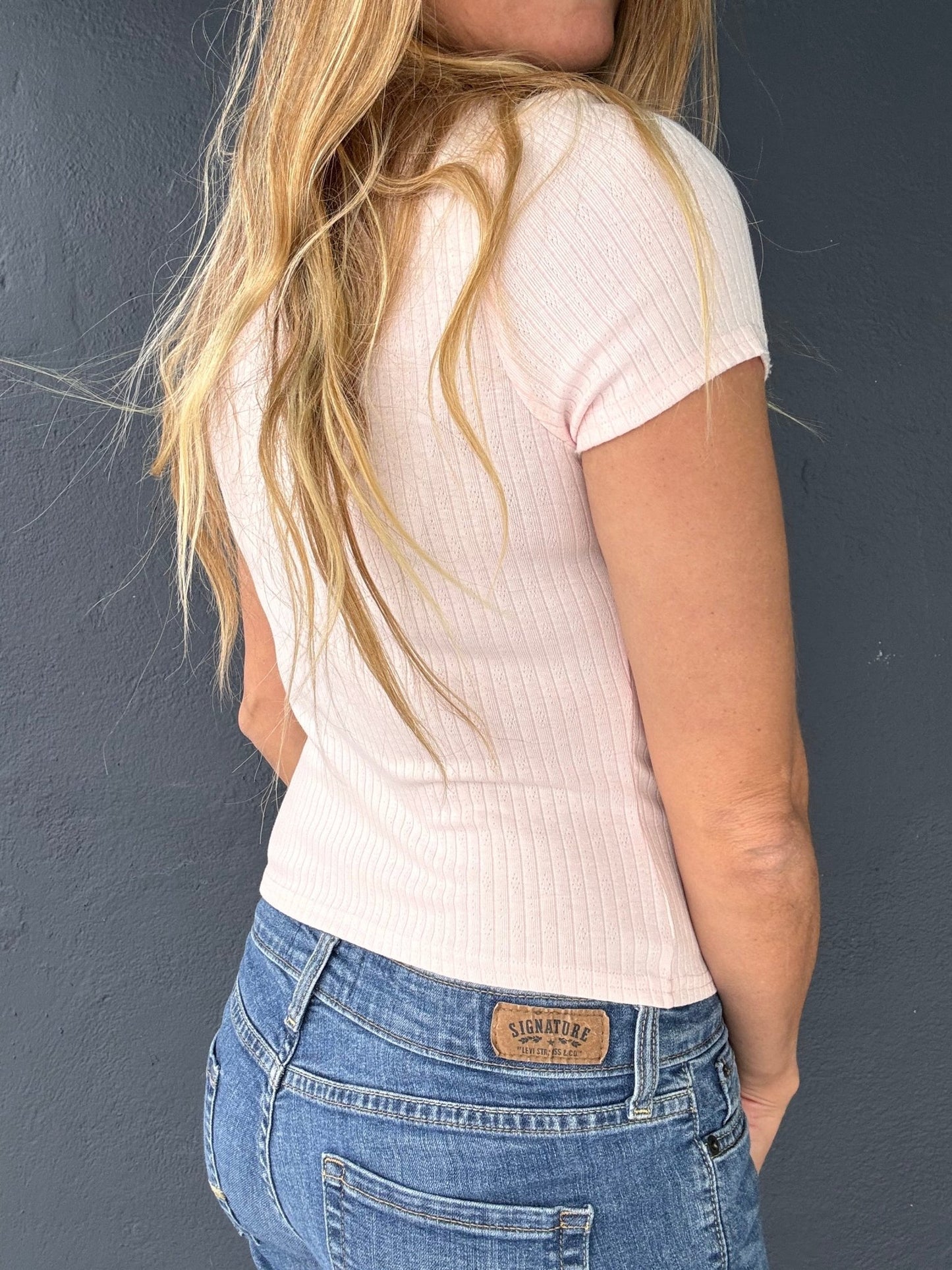 - Fitted baby tee silhouette for a trendy, flattering fit