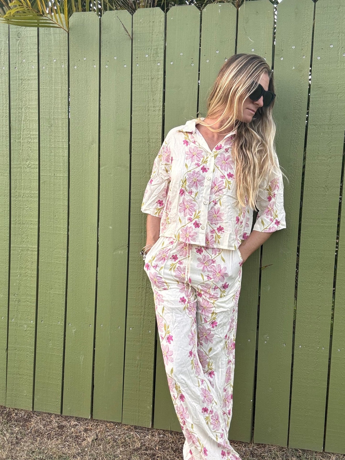 Regular price $28.00 USDBlossom into spring with this quirky shirt top! Made with a coconut button down, collar, and short sleeves, you'll feel effortlessly stylish. Perfect for any occasion, this shirt top is as versatile as it is fun! The perfect pair with our Spring Blossom Pants!