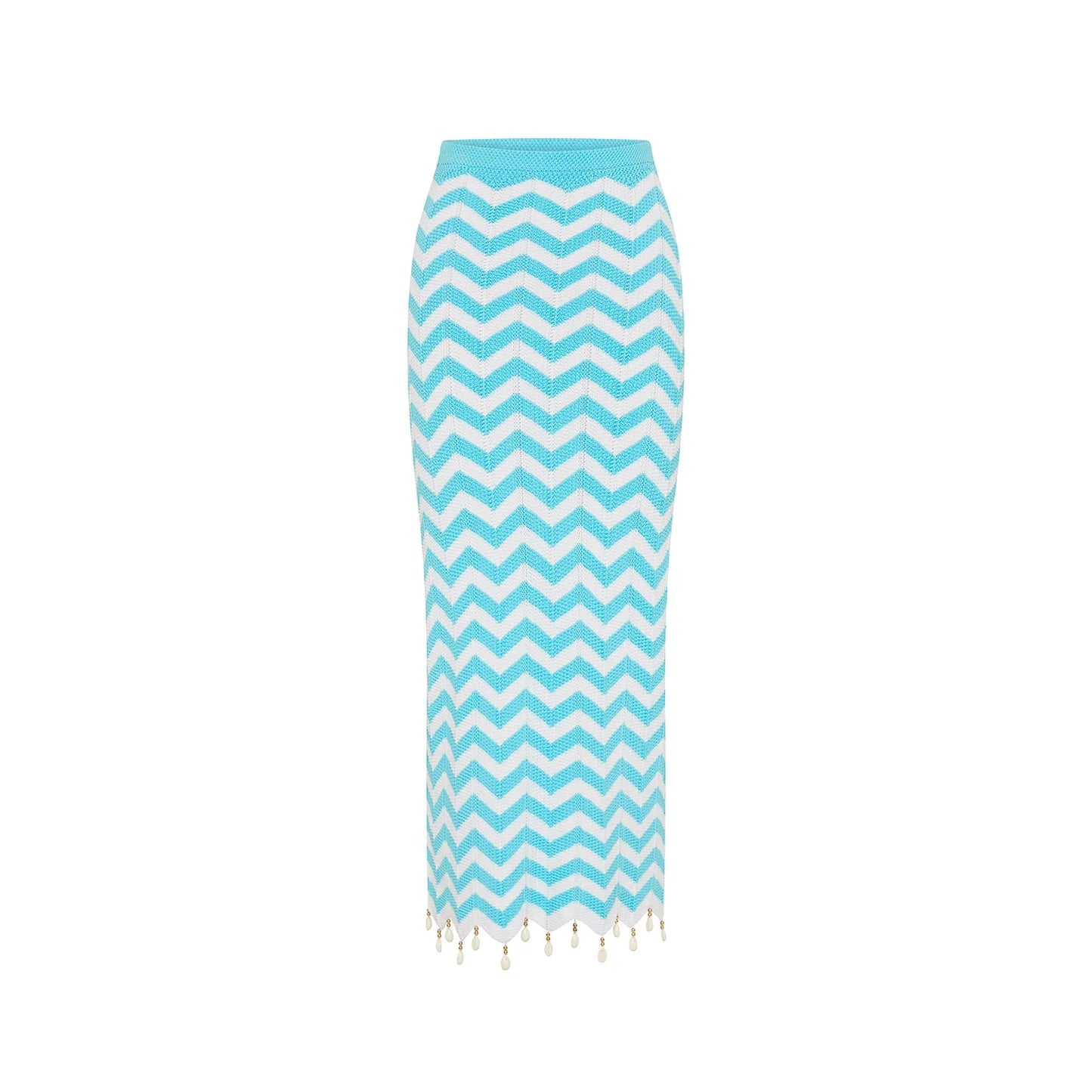 KULANI KINIS Chevron Knit Midi Skirt - Crystal Cove