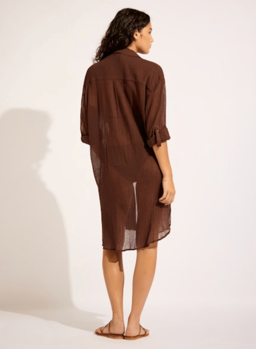 SEAFOLLY Crinkle Twill Beach Shirt Dress - Dark Chocolate