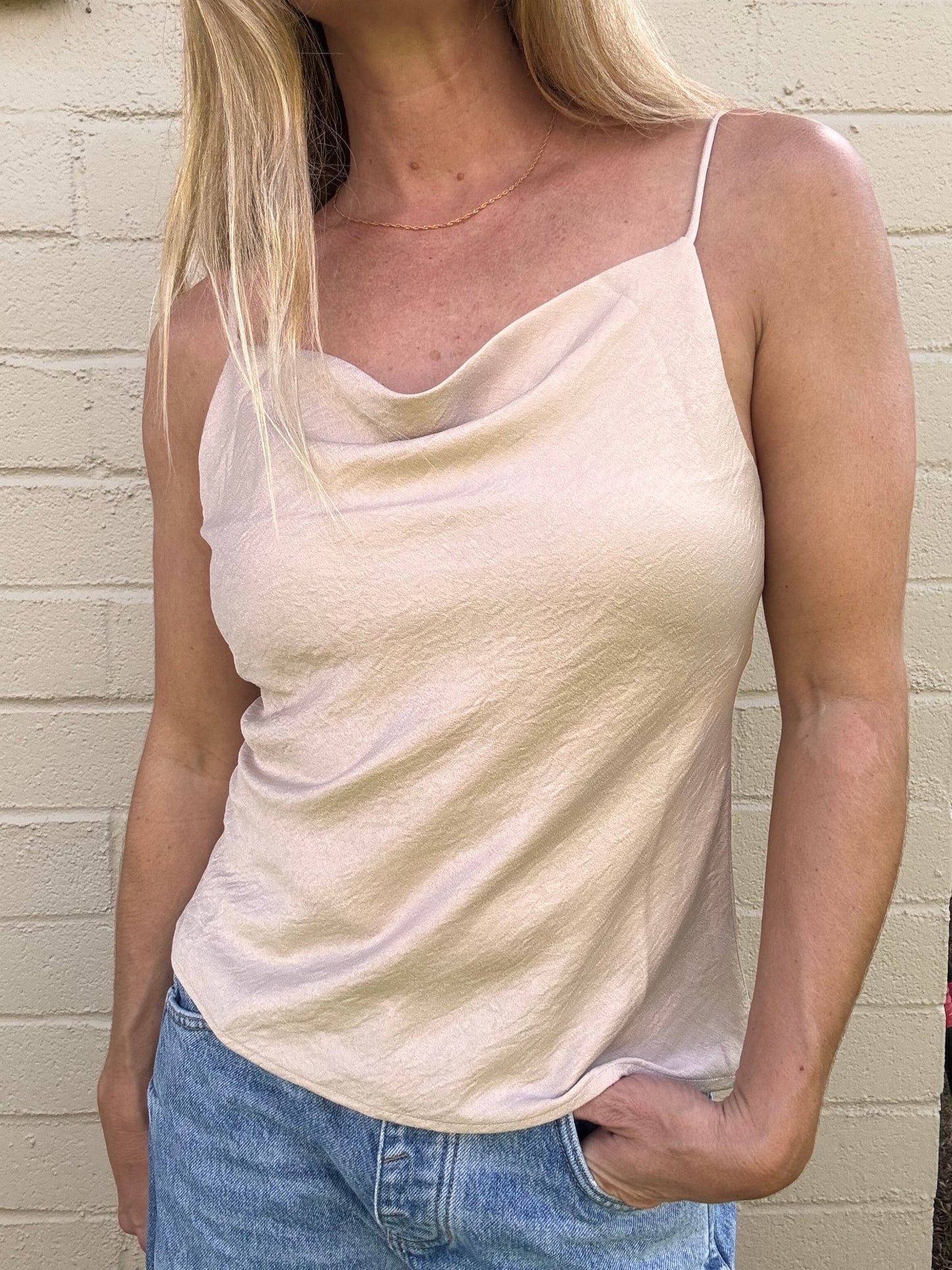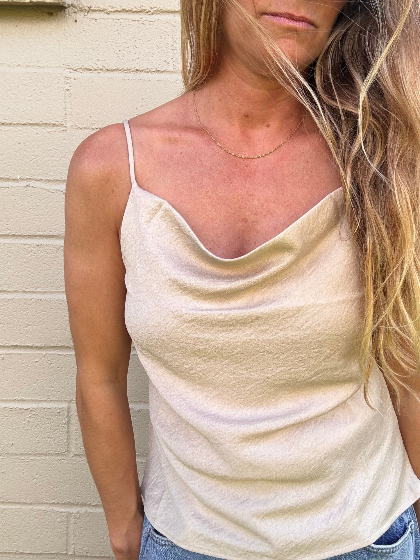 Slip into effortless elegance with the Cassidy Cami Top—a silky smooth essential that transitions seamlessly from brunch to night out. This cowl neck beauty drapes like a dream and pairs with literally everything in your closet.