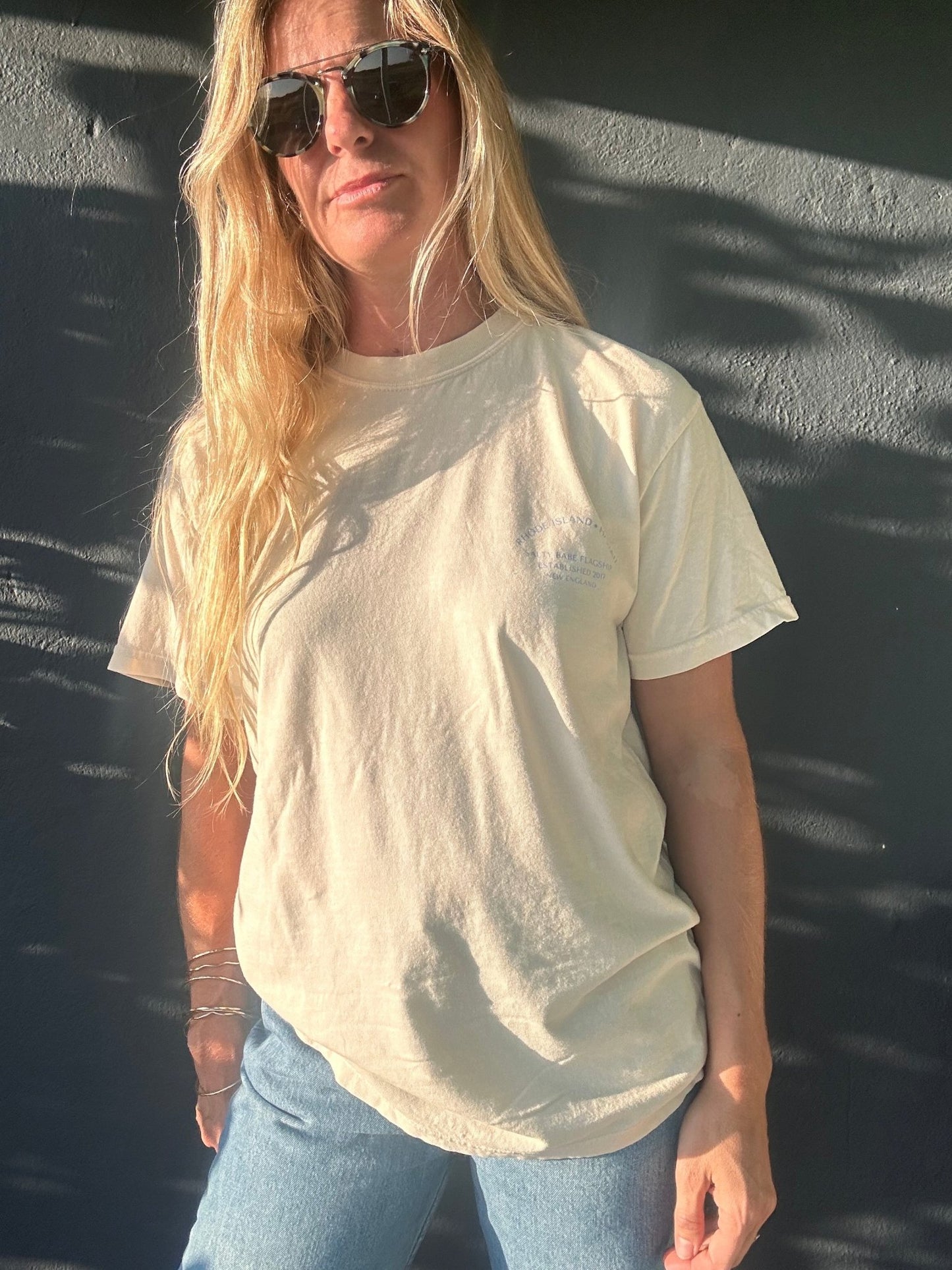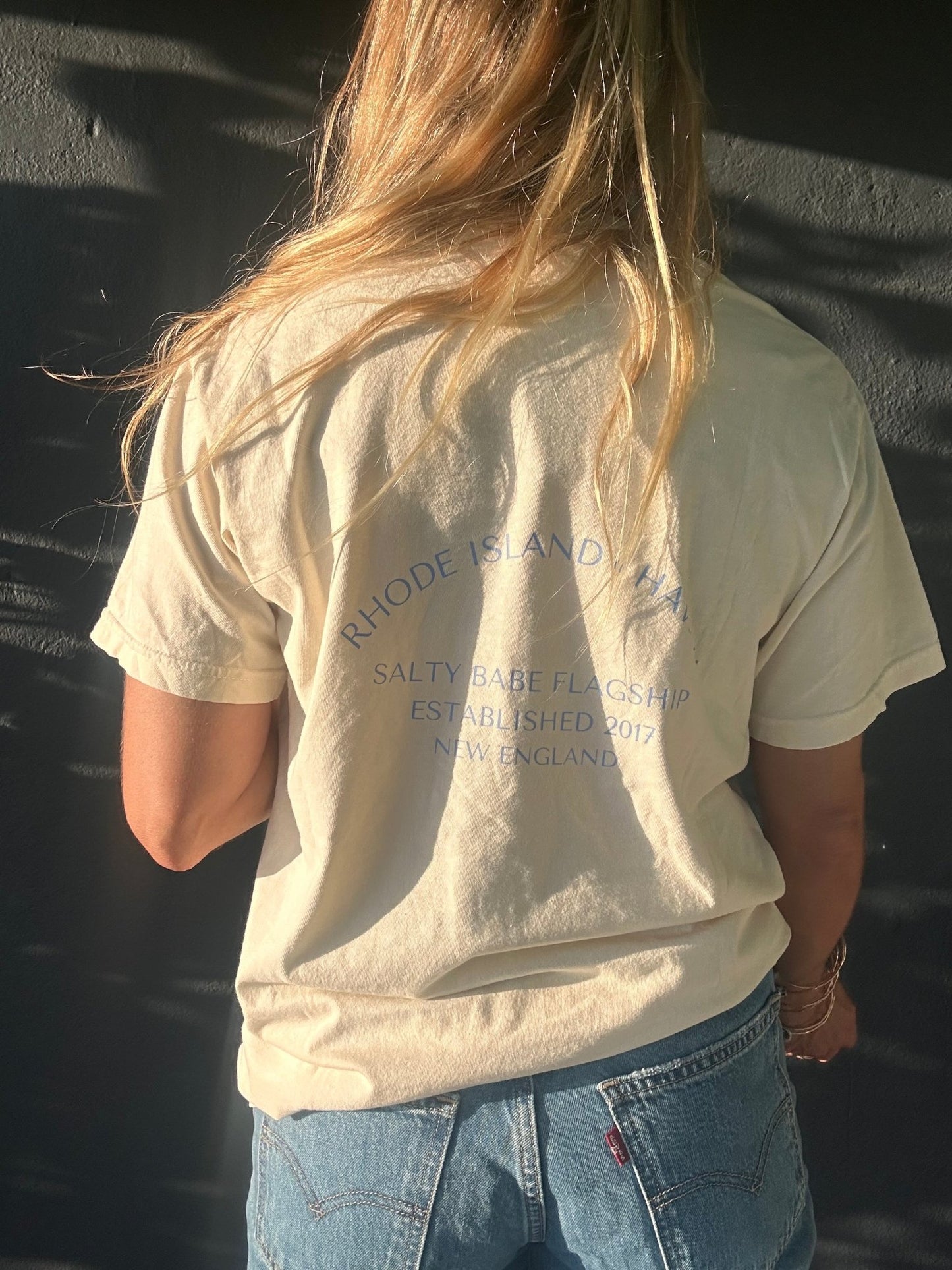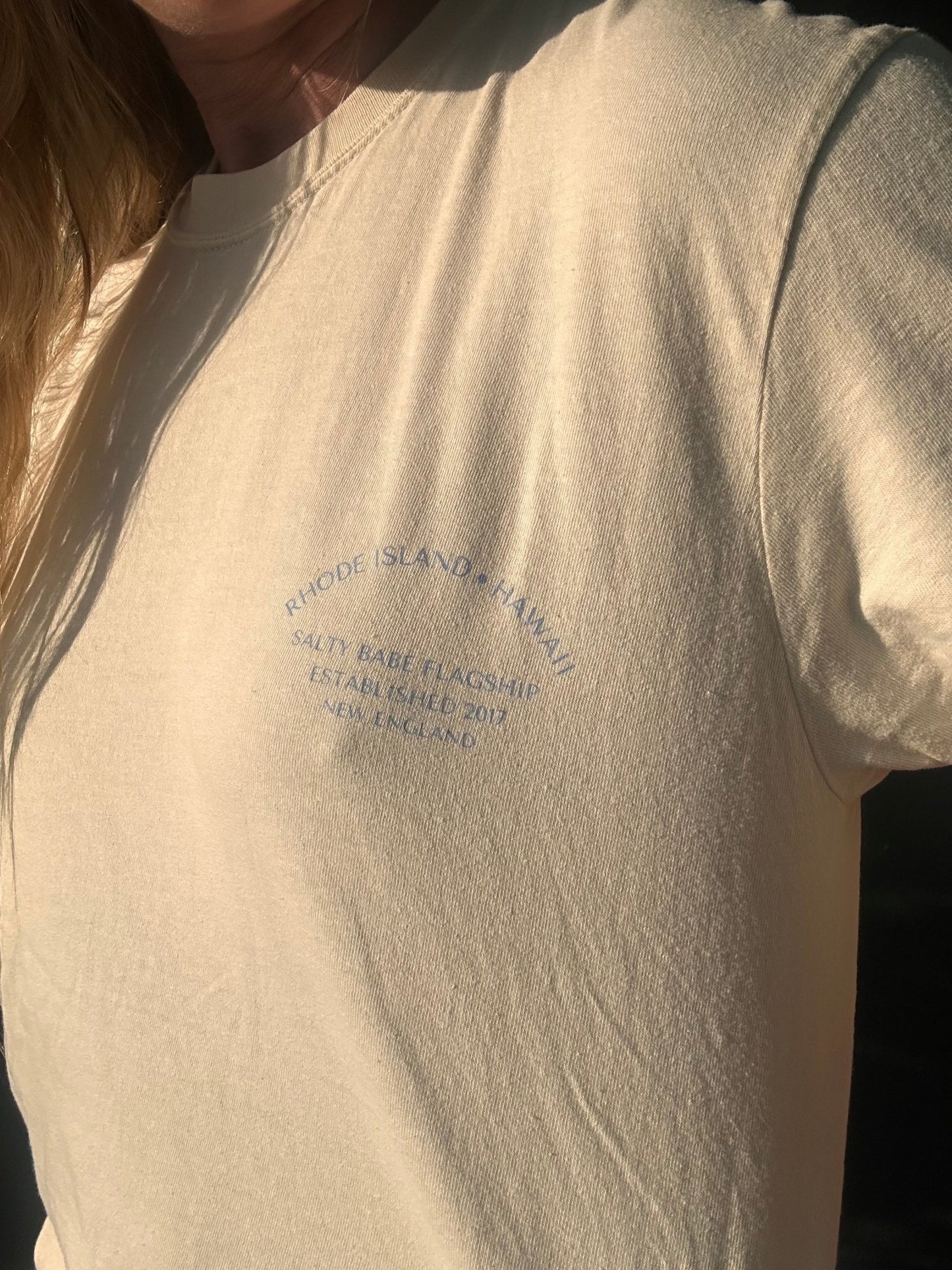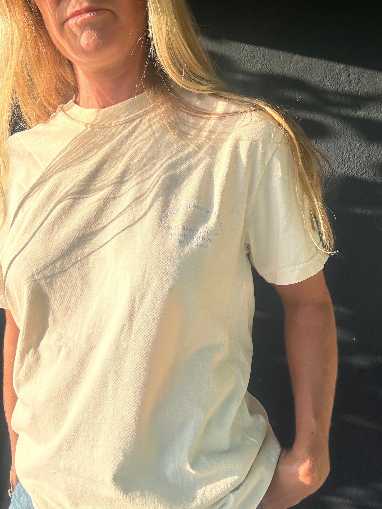 please note on the blue color, the front graphic is the script The Salty Babe logo