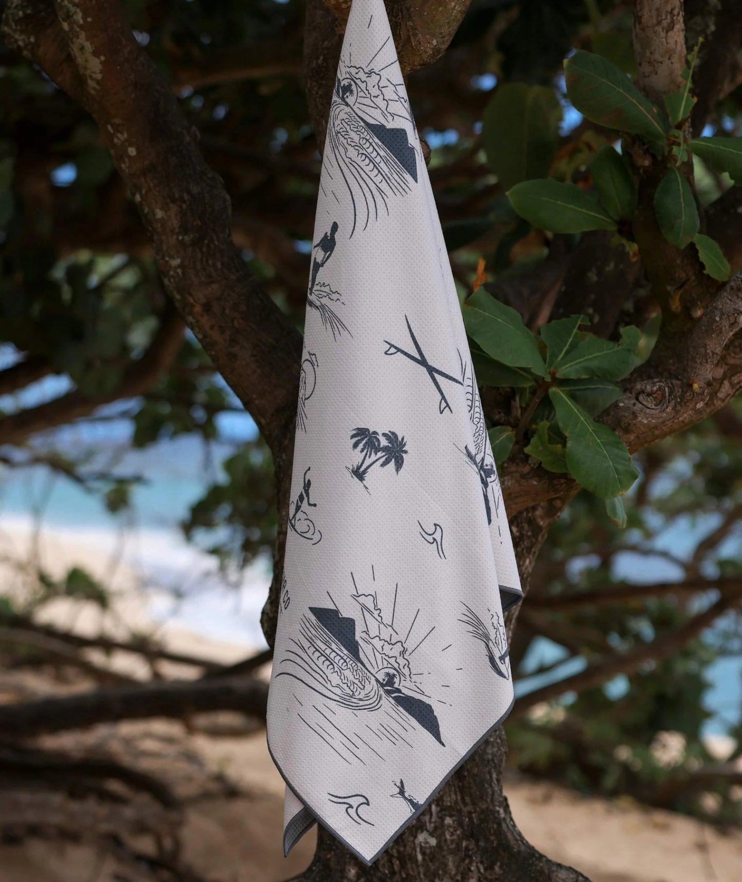 From the picturesque shores of Lanikai at sunrise to the iconic sands of Waikiki at sunset, the beach is our happy place. We named this print Popoia because the perfect stretch of sand in front of Popoia Island is one of our favorite spots. Our quick-drying, super-soft towel is the perfect companion for dancing in the waves and embracing the sunshine on your salt-kissed skin.
